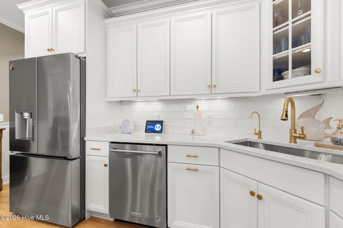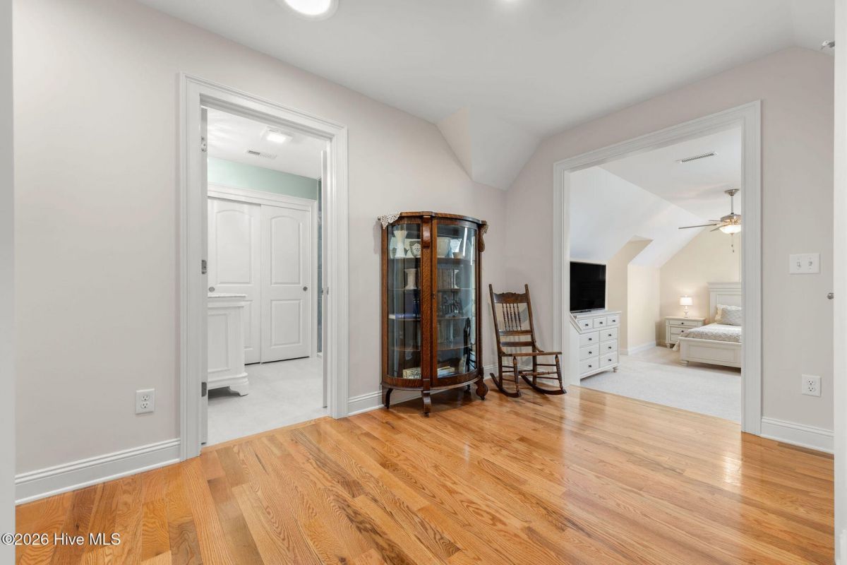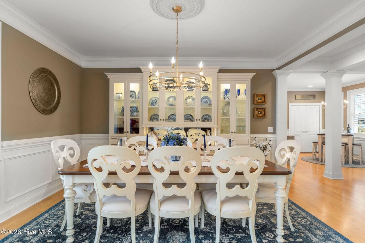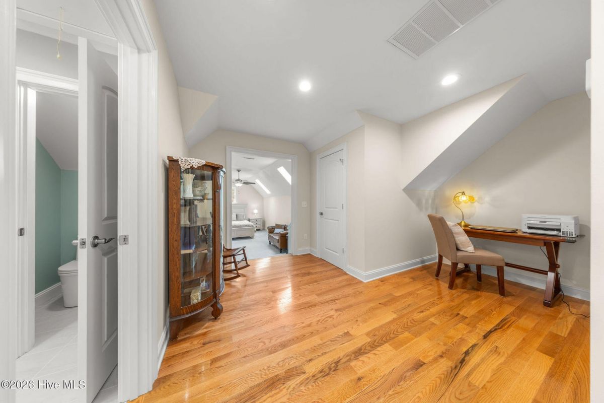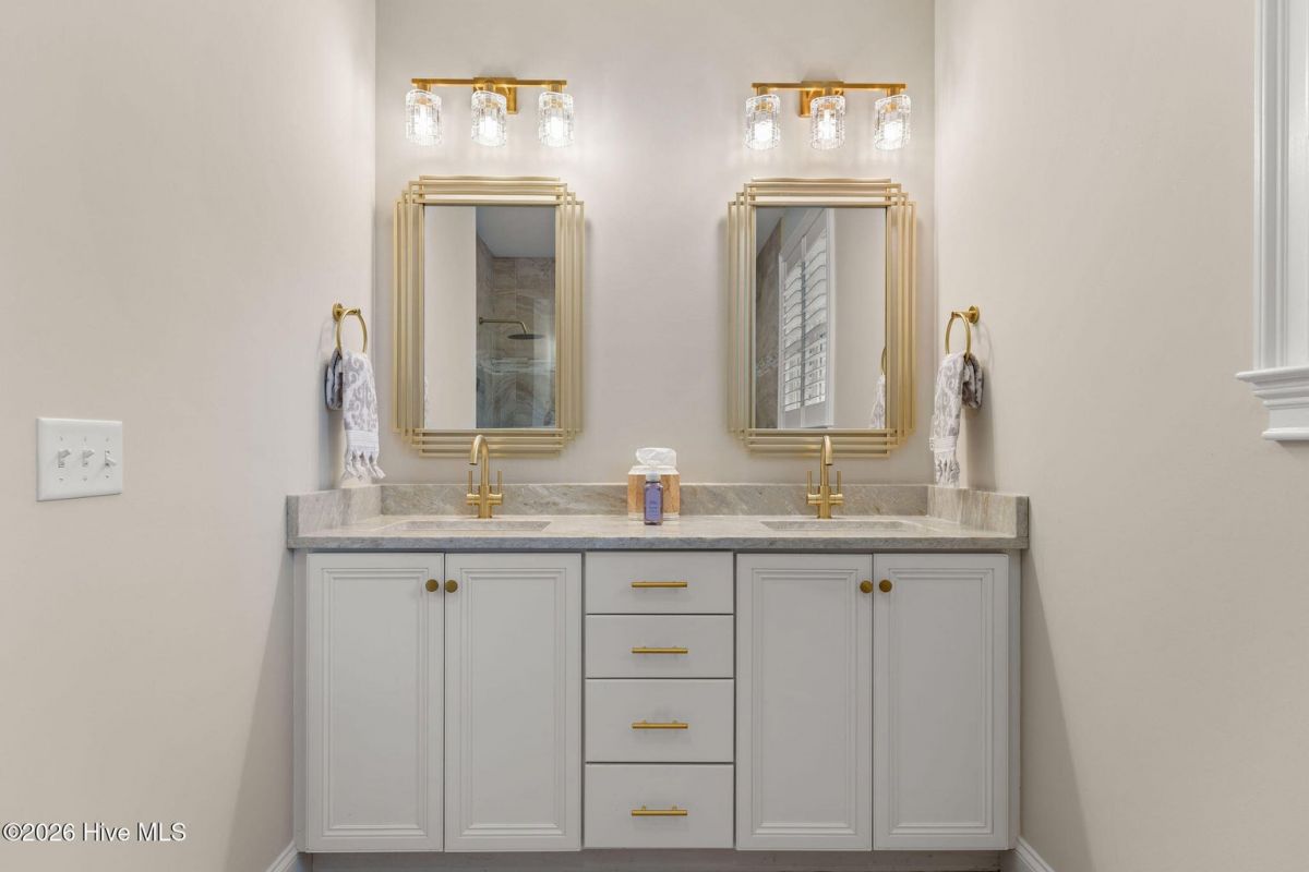 This custom built 4 bedroom, 3-and-1/2-bathroom home in The Reserve of St. James Plantation has been thoughtfully upgraded with stylish, high-end updates that elevate an already exceptional floor plan. With 3,100 square feet, stacked stone accents, and a side-load garage, the curb appeal is fresh and attractive but the quality updating inside is what truly sets this home apart. An inviting front porch leads into the dramatic two-story foyer, where hardwood flooring, custom wainscoting, and an elegant chandelier set the tone for this stunning interior. The formal dining room perfect for large family/friend gatherings is framed by detailed millwork and classic architectural lines. The great room is open and centrally located to the kitchen, dining, and sunroom. This special space features soaring ceilings, a gas fireplace, and custom built-ins cabinetry. The well designed, newly renovated kitchen boasts quartz counters, quality wood box soft close dovetailed cabinetry, and spacious center island, complemented by a stylish backsplash and upgraded gold hardware throughout. Updated lighting adds warmth and dimension, giving this entire space an uplifted, designer feel. Stainless appliances, a custom hood, generous breakfast nook, large pantry, and island seating make this kitchen both functional and visually striking. Enjoy the private backyard from the amazing heated and cooled sunroom. The back of this home is privately situated overlooking a St James POA piece of property which means there will not be a home built directly behind the backyard. The sunroom showcases a cathedral ceiling with beadboard detail, tiled floor, expansive windows, and views of the private backyard. With direct access to the covered and open deck areas, this space is ideal for enjoying the quiet natural setting behind the home. The bottom level owner's suite is an impressive size at 14X22 ft. and is complemented by crown molding and has two walk-in closets. The primary bath has been completely refreshed, featuring a new quartz-topped vanity and a beautifully retiled walk-in shower that delivers a clean, modern aesthetic. Take the updated wooden stairs to a wood floored catwalk overlooking the foyer and great room below which leads to two guest bedrooms. For privacy, these bedrooms are on opposite ends and are serviced by a nicely appointed guest bathroom where the vanity is separate from the toilet and shower room. The upstairs bonus/flex area has undergone a significant transformation changing this space into a suite area much like an "in-law suite" perfect for multigenerational living. As you enter there is a 14X14 ft. flex area which a new en-suite full bathroom has been added with a gorgeous walk-in shower. A custom bump-out has also been added, creating a dedicated office or flex workspace within the bonus suite, making it ideal again for guests or extended stays. Take a few steps down into the oversized bonus room which now gives you all the space you could possibly desire. Additional improvements include numerous updated light fixtures throughout the home, further enhancing its polished, move-in-ready appeal. There is no lack of storage with 2 walk-in attic spaces and the side load garage. Located near the Seaside entrance, Woodlands Park trails and amphitheater, and Seaside amenity center, this refreshed Reserve home offers a rare opportunity to own a renovated, thoughtfully upgraded property in one of St. James Plantation's most desirable neighborhoods.