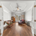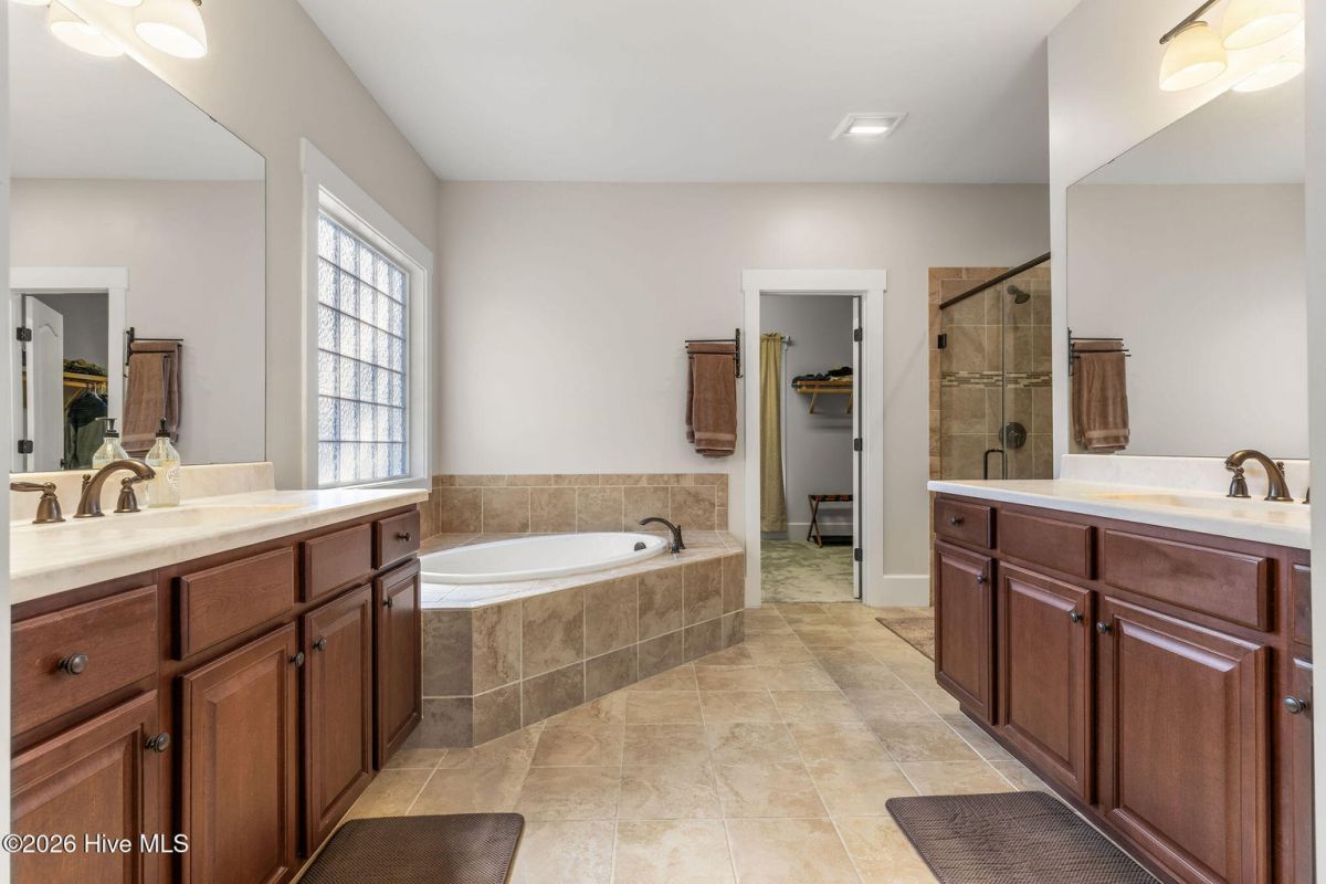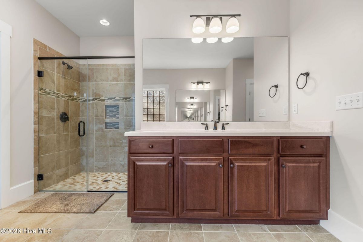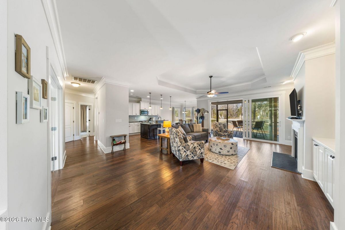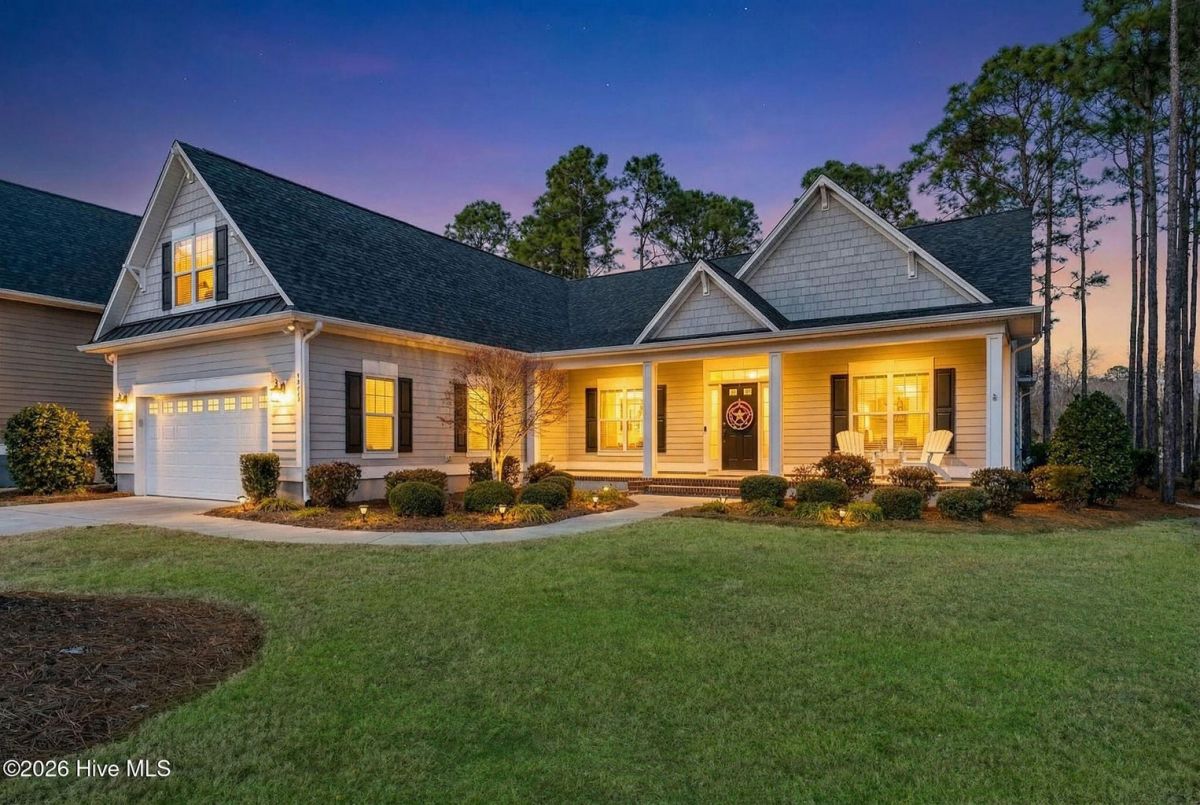 This stunning modern Low Country-style home is perfectly maintained and gently used, beautifully situated on the 12th green of the Members Club golf course in prestigious St. James Plantation. The pristine 4-bedroom, 3-full-bath residence offers sweeping golf and nature views, exceptional privacy, and numerous custom upgrades throughout. An expansive rocking-chair front porch welcomes you into an open-concept living space highlighted by hardwood floors, tray ceilings in the living and dining areas, elegant two-piece crown molding, and custom built-in cabinetry surrounding the fireplace. An enclosed room within the open living area features extended wainscoting and offers exceptional flexibility—ideal for a study, formal dining room, sitting room, or additional bedroom. The entire downstairs has been refreshed with new carpet and fresh paint, enhancing the home's move-in-ready appeal. The spacious kitchen is perfect for entertaining, featuring a large island, granite countertops, stainless steel appliances, a new gas cooktop with double oven, and a bright breakfast nook. Three-paneled telescoping sliders open to the screened porch, where you can enjoy spectacular views of the 12th hole. The owner's suite is privately located on one side of the home and features a spacious bedroom with a tray ceiling, serene golf course views, and direct access to the screened porch. The en-suite bath includes separate his-and-hers vanities, a large soaking tub, a barrier-free tiled shower with a built-in bench, and an oversized walk-in closet. Two additional bedrooms and a full bath complete the main level. Upstairs, a large bonus room—ideal as a bedroom, game room, or hobby space—includes a full bath and recessed lighting, making it perfect for guests or grandchildren. Additional features include a new water heater, laundry room sink, full walk-in attic storage, enclosed garage storage area, and Craftsman-style door headers throughout.