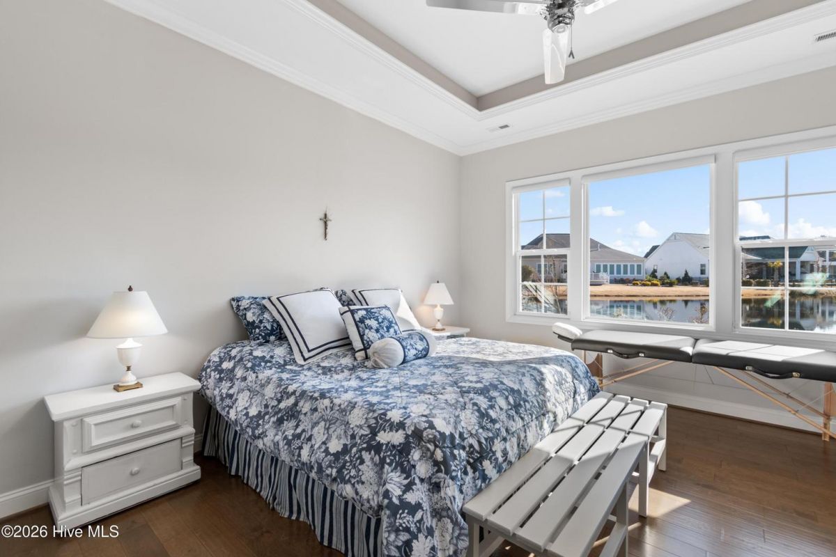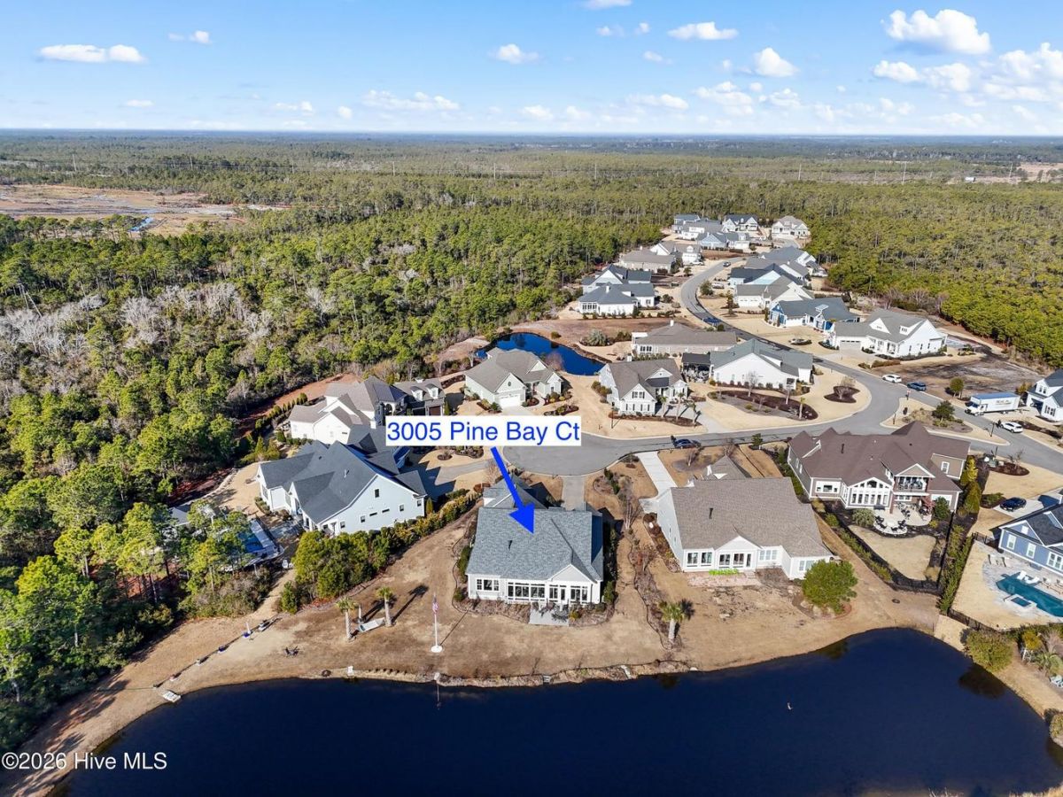 Welcome to 3005 Pine Bay Court, a beautifully maintained home offering cul-de-sac privacy and incredible pond frontage with serene views. Built in 2019, This sun-filled residence features an open floorplan designed for comfortable living and effortless entertaining, enhanced by desirable southeastern rear exposure that fills the home with natural light throughout the day. Engineered hardwood floors flow seamlessly through the living areas and bedrooms, adding warmth and timeless appeal. The thoughtfully designed kitchen is equipped with high-end appliances including a Wolf wall oven and gas cooktop, making it ideal for both everyday meals and special gatherings. The Owners suite can be a peaceful getaway with large picture windows, two walk-in closets, and a dual-headed walk-in shower or escape upstairs to the large Bonus room with full bathroom or utilitze the immense walk-in attic storage. Finally, a massive four-season sunroom overlooks the pond and manicured backyard, creating the perfect space to relax year-round while enjoying peaceful water views and abundant wildlife. The upstairs offers a genrous FROG, full bath and walk-in attic storage. The garage is oversided for 2 cars with 240V receptacle. The meticulously maintained yard reflects pride of ownership and complements the home's tranquil setting. Located in St. James Plantation, this property offers a rare combination of privacy, views, and quality finishes in one of the community's most desirable locations. Enjoy all of the amenities St James has to offer. Including 81 holes of championship golf, multiple tennis and pickleball courts, fitness center, indoor and outdoor pools. Four clubhouses each with its restaurant. Full-service marina with wet slips, dry stacks and Beacon 315 restaurant and tiki bar. Private oceanfront beach club with pool. Current owners maintain an Active membership within the Clubs of St James, which saves the next purchaser potentially up to $10,000 in extra membership fees