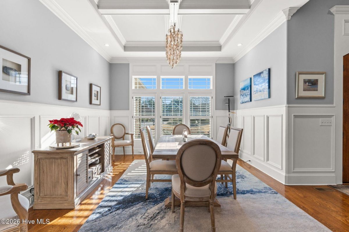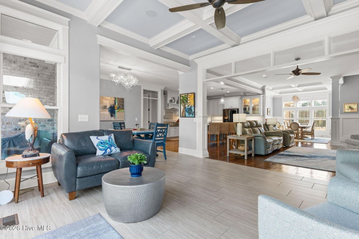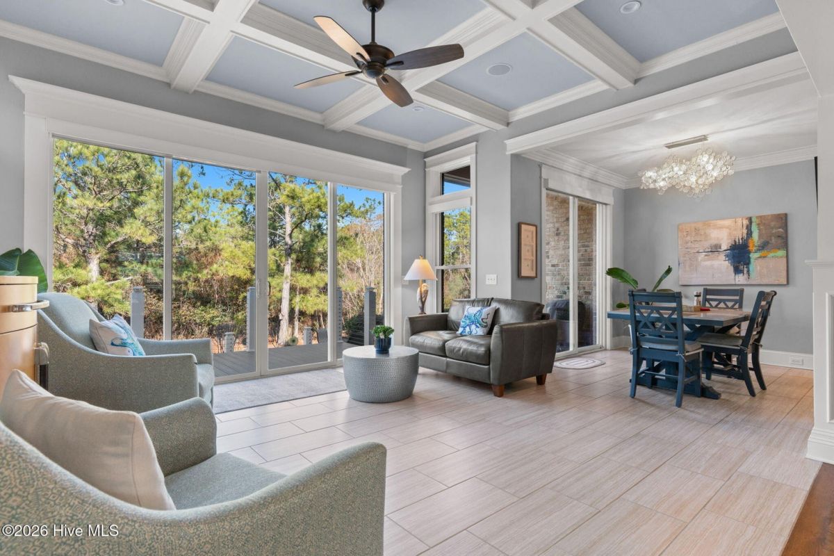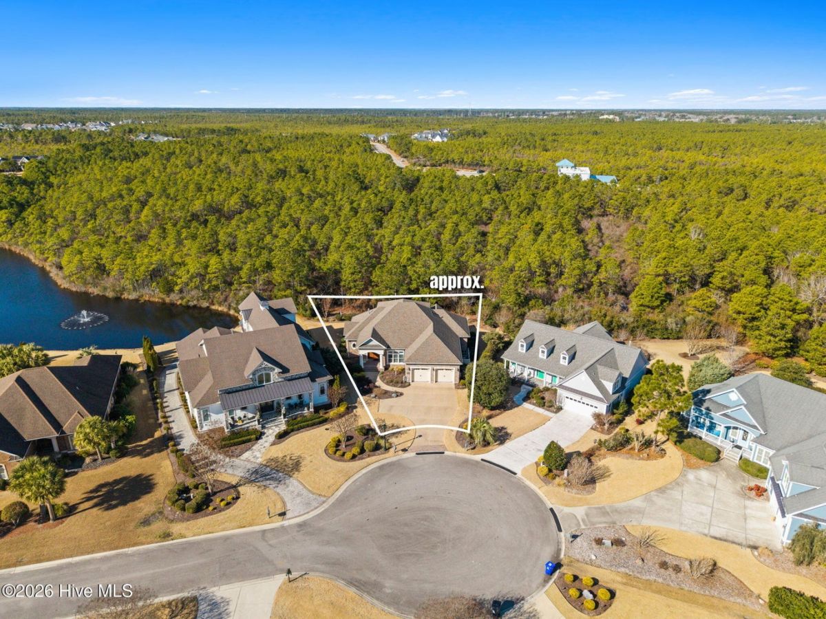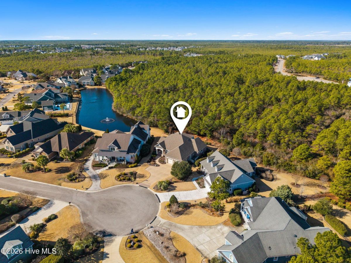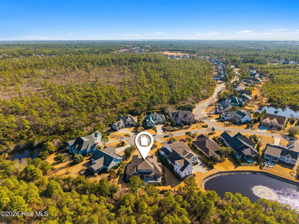 Exquisite custom home located in the prestigious Reserve section of St James Plantation on a quiet cul-de-sac, designed and built by Signature Construction Group with impeccable craftmanship, refined luxury and meticulous attention to detail. Step inside the double mahogany doors to discover a grand open concept layout filled with natural light, soaring coffered ceilings, 8 foot solid core doors and elegant finishes throughout. The gourmet chefs kitchen boasts Thermador appliances, a 6-burner gas cooktop, double ovens, beverage fridge, large pantry and soft close cabinetry that make it perfect for entertaining. The primary bedroom serves as a private retreat featuring a lighted trey ceiling, walk in closet and spa inspired soaking tub and a zero entry shower with Jets and a double shower head. The additional downstairs bedroom has the feel of a dual primary bedroom with a large ensuite bathroom with a large tub and separate shower. Upstairs feels like another complete living space with a large family room and wet bar, large 3rd bedroom, full bath and a finished flex-space currently used as a workout room but could be an office or additional bedroom. A big walk in storage space is a nice addition and has closed spray foam insulation Crawl space is completely sealed with foam insulation. The private backyard backs up to a lush forest with sweeping views of the pond that can be enjoyed from the Trex deck with retractable awning.