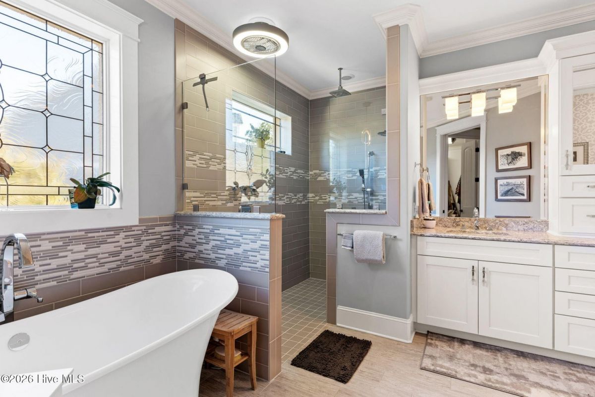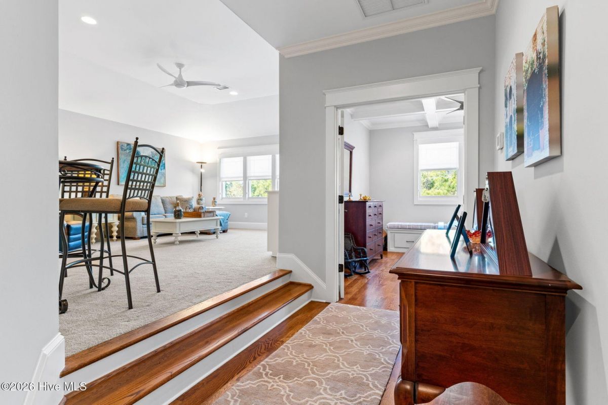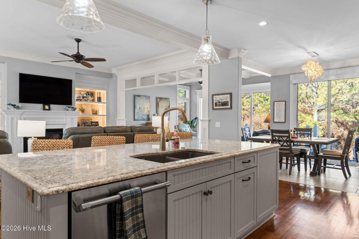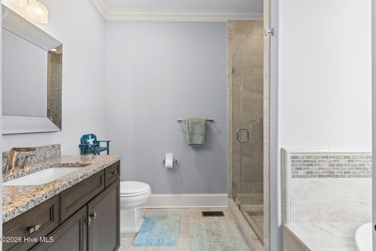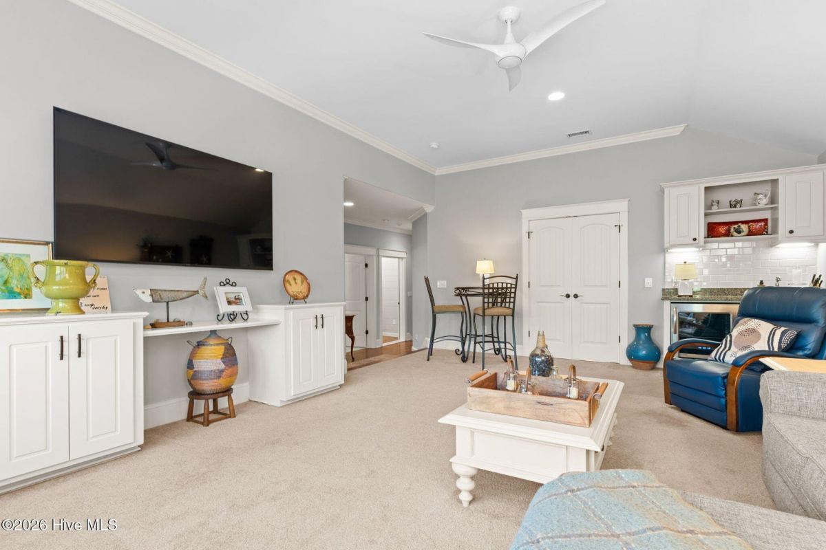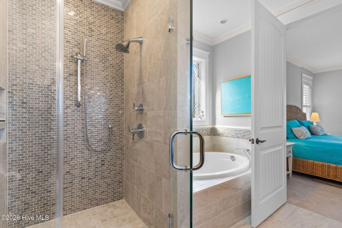 Exquisite custom home located in the prestigious Reserve section of St James Plantation on a quiet cul-de-sac, designed and built by Signature Construction Group with impeccable craftmanship, refined luxury and meticulous attention to detail. Step inside the double mahogany doors to discover a grand open concept layout filled with natural light, soaring coffered ceilings, 8 foot solid core doors and elegant finishes throughout. The gourmet chefs kitchen boasts Thermador appliances, a 6-burner gas cooktop, double ovens, beverage fridge, large pantry and soft close cabinetry that make it perfect for entertaining. The primary bedroom serves as a private retreat featuring a lighted trey ceiling, walk in closet and spa inspired soaking tub and a zero entry shower with Jets and a double shower head. The additional downstairs bedroom has the feel of a dual primary bedroom with a large ensuite bathroom with a large tub and separate shower. Upstairs feels like another complete living space with a large family room and wet bar, large 3rd bedroom, full bath and a finished flex-space currently used as a workout room but could be an office or additional bedroom. A big walk in storage space is a nice addition and has closed spray foam insulation Crawl space is completely sealed with foam insulation. The private backyard backs up to a lush forest with sweeping views of the pond that can be enjoyed from the Trex deck with retractable awning.