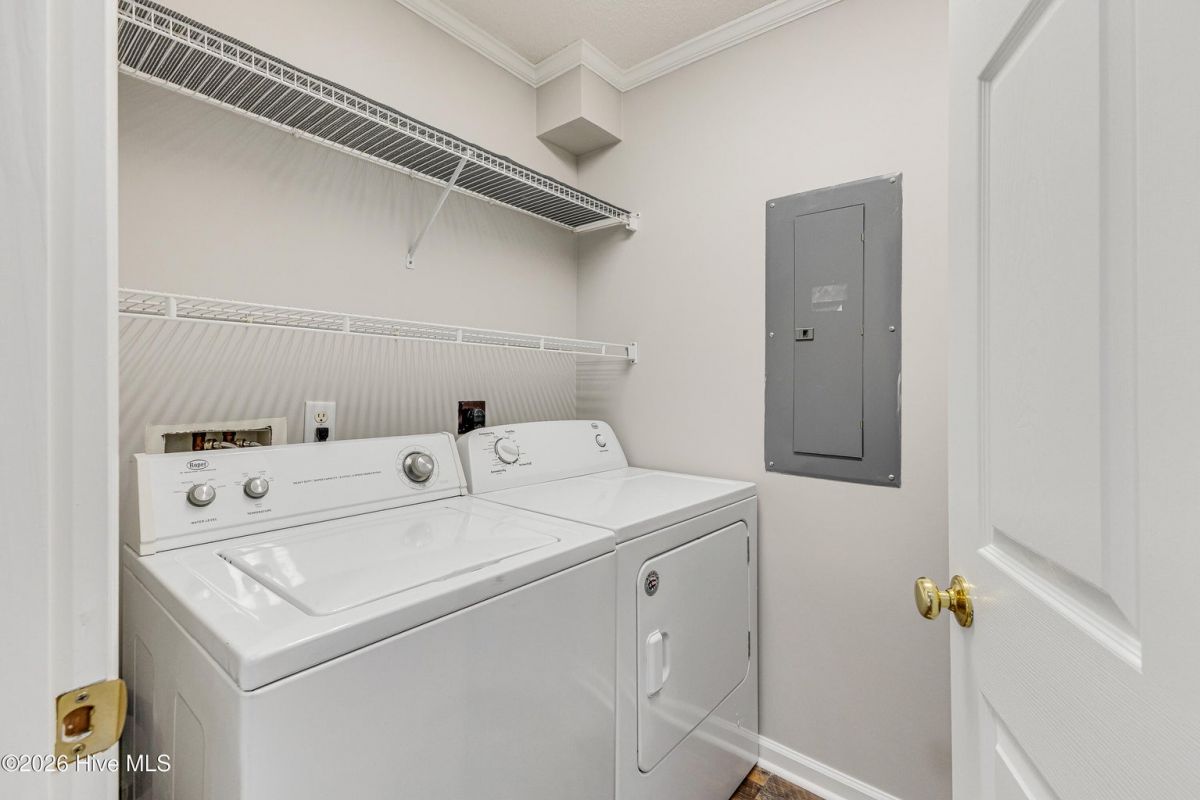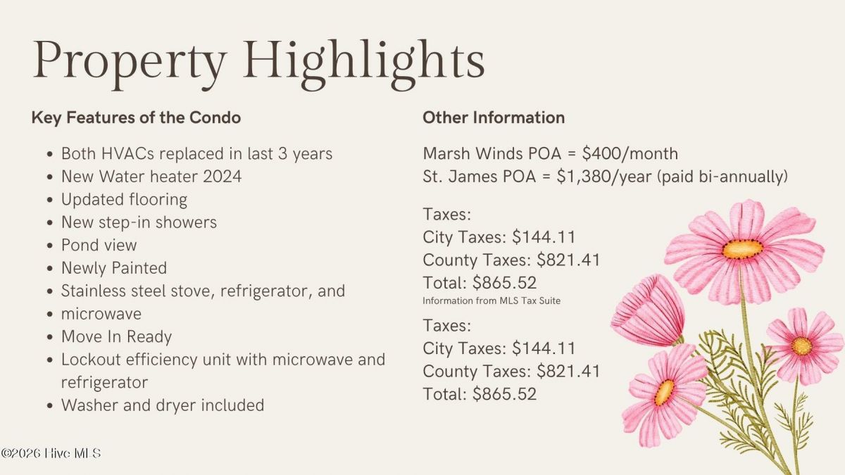 Welcome to easy coastal living with built-in flexibility in the heart of St. James Plantation. This ground-floor 2-bedroom, 2-bath condo offers something rare... the ability to enjoy your own coastal retreat while creating income potential at the same time. Designed with a lockout efficiency unit, the space can be used as a full 2-bedroom residence, a private guest suite, or a separate rental opportunity. Step inside to a freshly updated interior with new flooring, fresh paint, and beautifully renovated step-in showers that add both style and everyday comfort. The open living area flows seamlessly to your patio, where peaceful pond views create a quiet, private backdrop with no buildings behind you... just space to relax and unwind. The kitchen features stainless steel appliances, and both HVAC systems have been replaced within the last three years, along with a new water heater in 2024, offering confidence in the major systems. The lockout efficiency unit includes its own entrance along with a microwave and brand-new mini refrigerator, making it ideal for guests or short-term rental use. With exterior maintenance, pest control, master insurance, and community upkeep covered by the HOA, this is truly low-maintenance ownership. Whether you're looking for a coastal getaway, a smart second home, or a property with income potential, this condo offers the flexibility to fit your lifestyle. Living in St. James Plantation means more than just owning a home... it's a lifestyle. Enjoy access to the beach club, walking trails, parks, dog parks, and the Marsh Winds pool just steps from your door. Option to buy in to the Clubs at St. James is possible. Contact the membership department for more information.