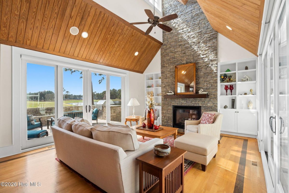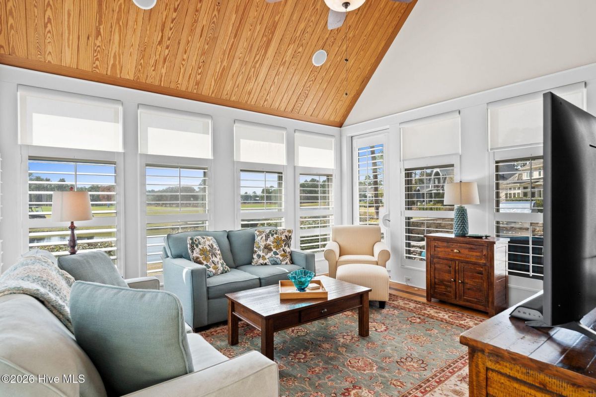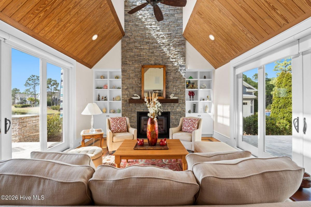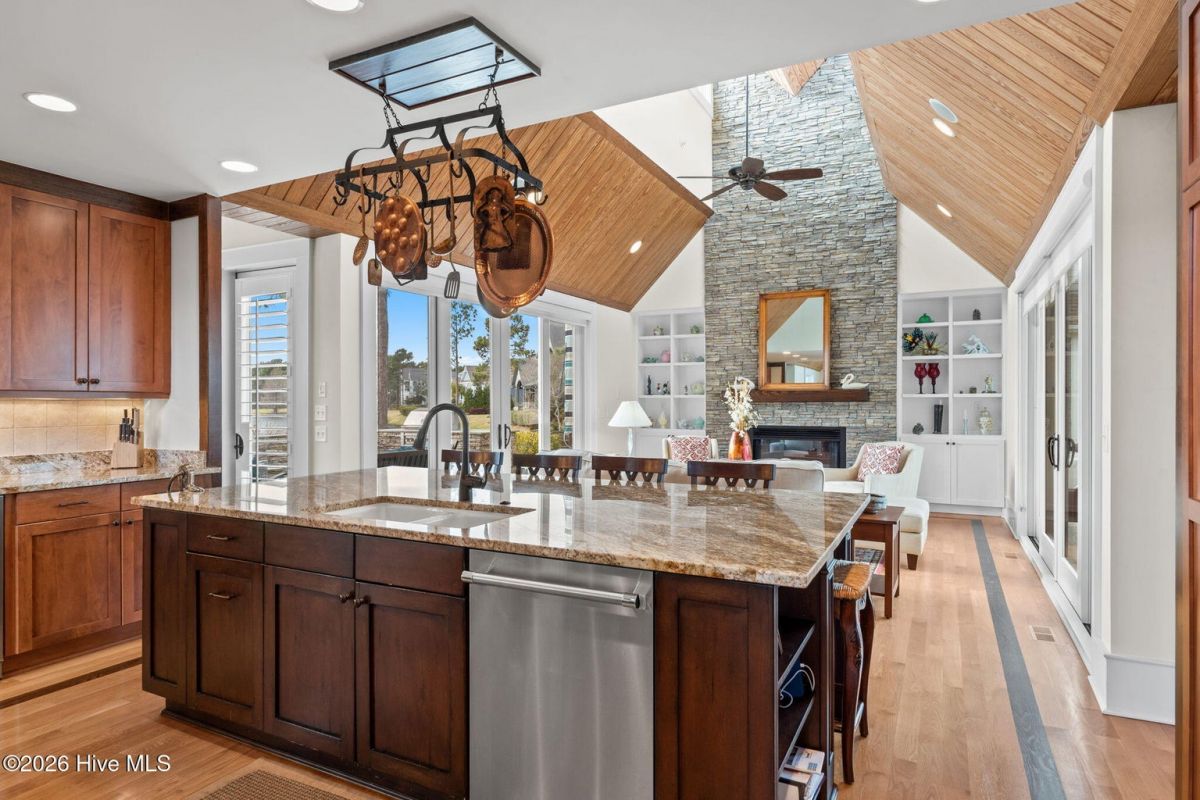 Set within one of the most coveted locations in the Reserve at St. James, this architecturally distinctive contemporary residence offers an exceptional blend of design, light, and livability. Spanning 3,765 square feet, the home was thoughtfully conceived with two primary goals: to capture natural light throughout the day and to provide a private, well-appointed living space for guests. From the moment you enter, the home's open, airy design is immediately apparent. Soaring ceilings and expansive windows flood the interiors with morning sunlight while framing serene, ever-changing sunset views. The positioning of the home takes full advantage of its surroundings, showcasing sweeping vistas of both water and golf--most notably the Nicklaus signature Hole #7 at The Reserve. The layout is as functional as it is striking. A dedicated guest living area ensures privacy and comfort, making it ideal for hosting family and friends. The main living spaces are equally impressive, featuring a warm and inviting den with a double sided fireplace, perfect for relaxed evenings. At the heart of the home is a gourmet kitchen designed for both everyday living and entertaining, complemented by seamless flow into indoor and outdoor gathering areas. The courtyard patio adds another dimension to the home, offering a tranquil, private space to unwind or entertain against a beautiful natural backdrop. With five bedrooms and four-and-a-half baths, this residence balances scale with thoughtful detail at every turn. Its one-of-a-kind character is defined not only by its premier setting, but by the intentional design choices that elevate both comfort and aesthetics. This is a rare opportunity to own a truly distinctive home in St. James--where architecture, light, and landscape come together in perfect harmony.
