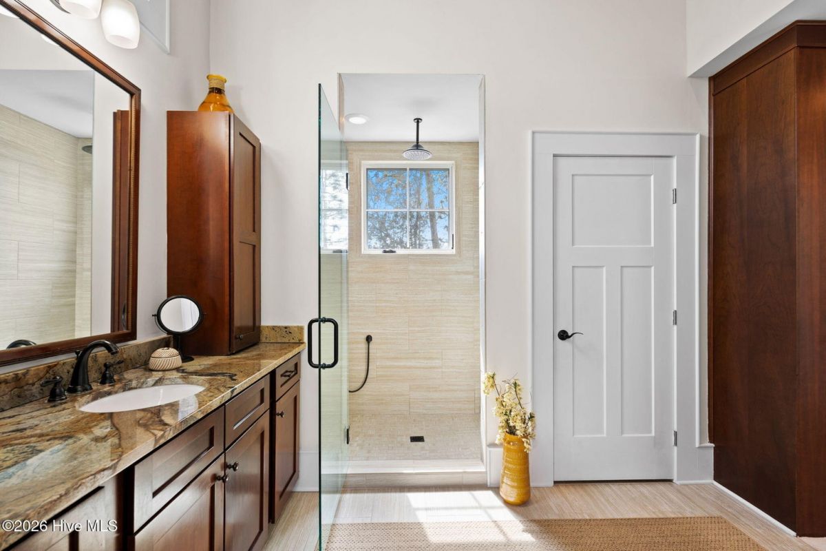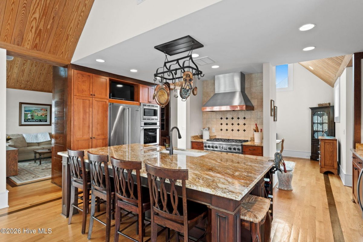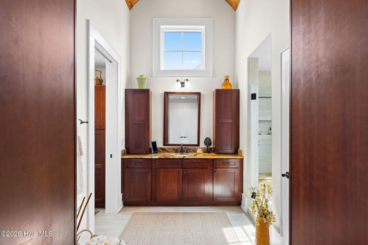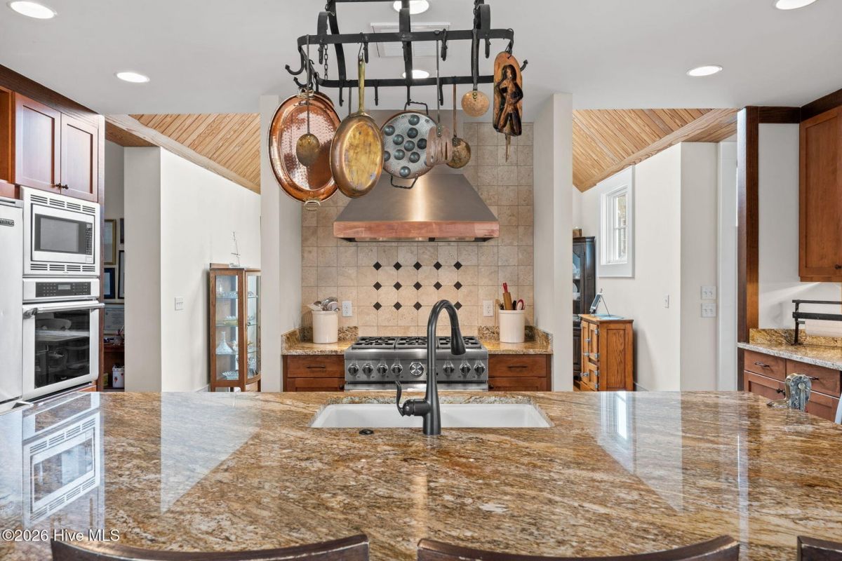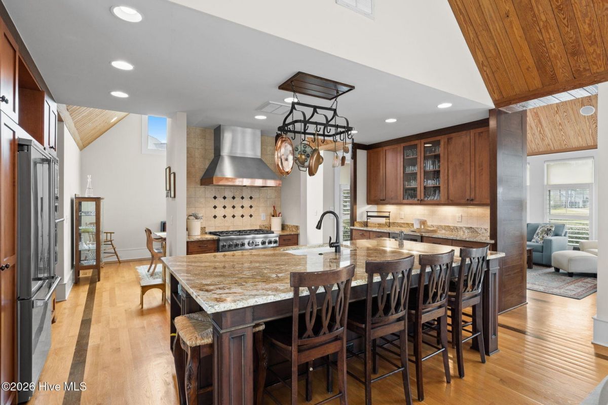 Set within one of the most coveted locations in the Reserve at St. James, this architecturally distinctive contemporary residence offers an exceptional blend of design, light, and livability. Spanning 3,765 square feet, the home was thoughtfully conceived with two primary goals: to capture natural light throughout the day and to provide a private, well-appointed living space for guests. From the moment you enter, the home's open, airy design is immediately apparent. Soaring ceilings and expansive windows flood the interiors with morning sunlight while framing serene, ever-changing sunset views. The positioning of the home takes full advantage of its surroundings, showcasing sweeping vistas of both water and golf--most notably the Nicklaus signature Hole #7 at The Reserve. The layout is as functional as it is striking. A dedicated guest living area ensures privacy and comfort, making it ideal for hosting family and friends. The main living spaces are equally impressive, featuring a warm and inviting den with a double sided fireplace, perfect for relaxed evenings. At the heart of the home is a gourmet kitchen designed for both everyday living and entertaining, complemented by seamless flow into indoor and outdoor gathering areas. The courtyard patio adds another dimension to the home, offering a tranquil, private space to unwind or entertain against a beautiful natural backdrop. With five bedrooms and four-and-a-half baths, this residence balances scale with thoughtful detail at every turn. Its one-of-a-kind character is defined not only by its premier setting, but by the intentional design choices that elevate both comfort and aesthetics. This is a rare opportunity to own a truly distinctive home in St. James--where architecture, light, and landscape come together in perfect harmony.