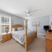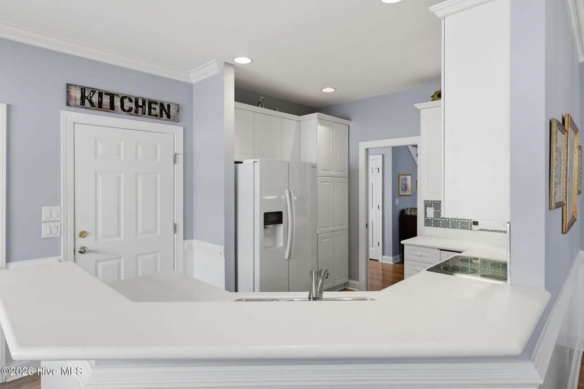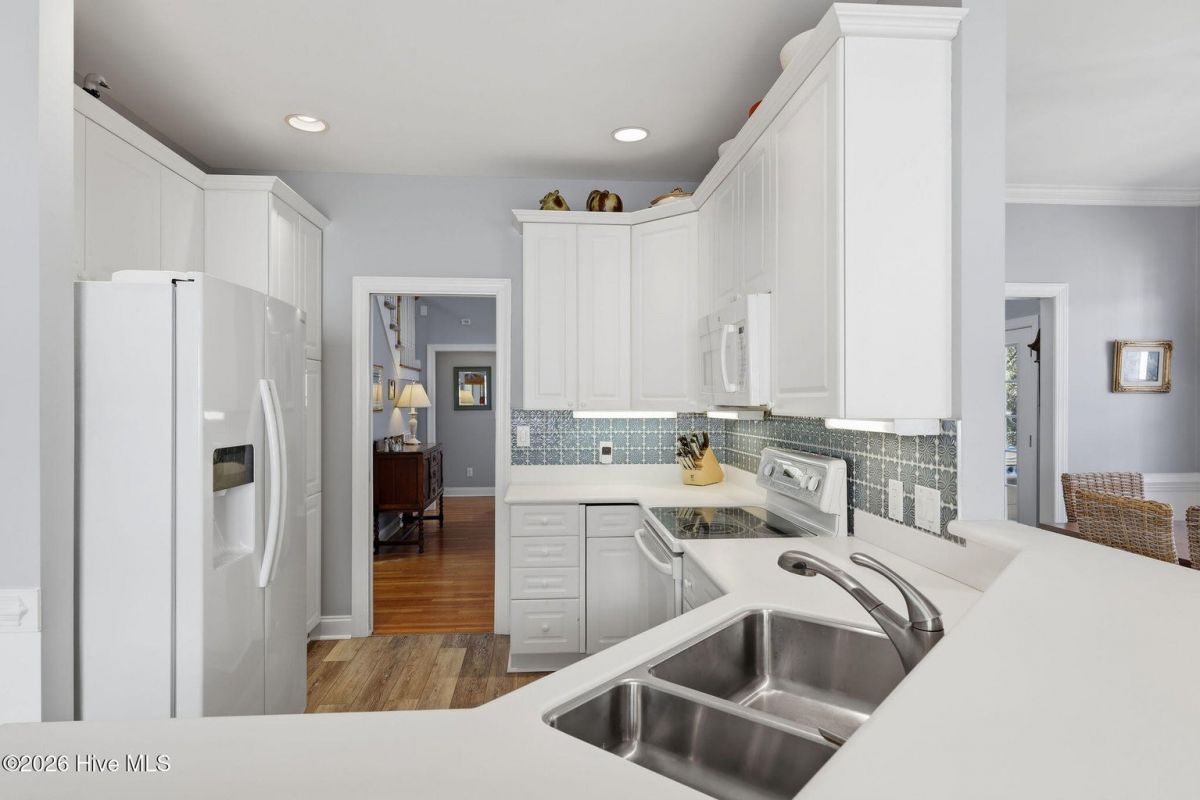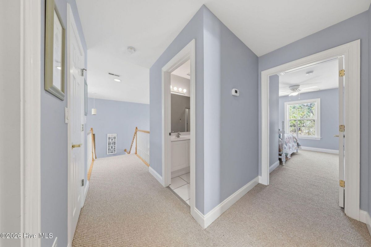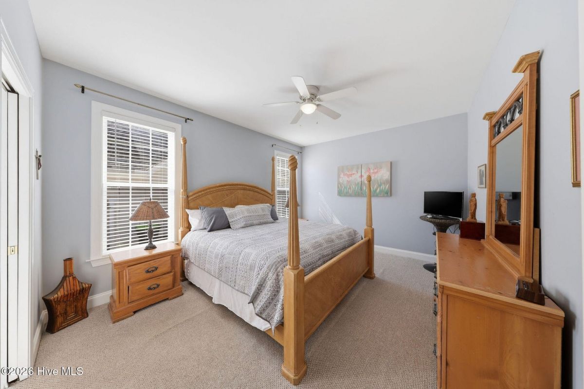 Quaint coastal charm meets comfortable living in this well-maintained home located in the highly desirable community of St. James Plantation. Set on a spacious .34-acre homesite with a natural wooded belt behind the property, the setting offers privacy while still being centrally located within the community. A cozy rocking chair front porch welcomes you inside to a warm and inviting floor plan. As you enter you are greeted by an impressive 2-story foyer and real ¾-inch oak hardwood flooring throughout the main living areas. The semi-open floor plan offers one story living with the primary bedroom downstairs and guest bedrooms upstairs. The great room features a soaring cathedral ceiling that enhances the sense of space and natural light with the focal point being an attractive corner propane gas fireplace. Just off the main living area, the heated/cooled sunroom provides peaceful views of the backyard. Enjoy the mild Carolina weather and expansive nature views from the open air attached deck. The semi-open kitchen is centrally positioned and gives you the privacy you need yet is open to the main living areas and offers solid surface countertops, plenty of cabinetry, counter space, stylish tile backsplash, and a functional layout. Entertain with ease in the eating area adjacent to the great room and for intimate family/friend gatherings the breakfast area is the perfect room. The first-floor primary suite includes a generous walk-in closet measuring nearly 12' x 8' ft., the bathroom features a comfortable soaking tub and walk-in shower with an updated sliding glass door. Upstairs are 2 guest bedrooms privately tucked away and serviced by a full bathroom. The large bonus room is the perfect flex space for additional guests or could easily be used as a hobby/media room. Additional features include a dedicated laundry room with sink, generous storage throughout the home, a crawlspace dehumidifier system, and a new roof installed in 2023. In St. James Plantation, residents enjoy an exceptional coastal lifestyle with access to championship golf, marinas, miles of walking and biking trails, fitness centers, restaurants, and a private oceanfront beach club.