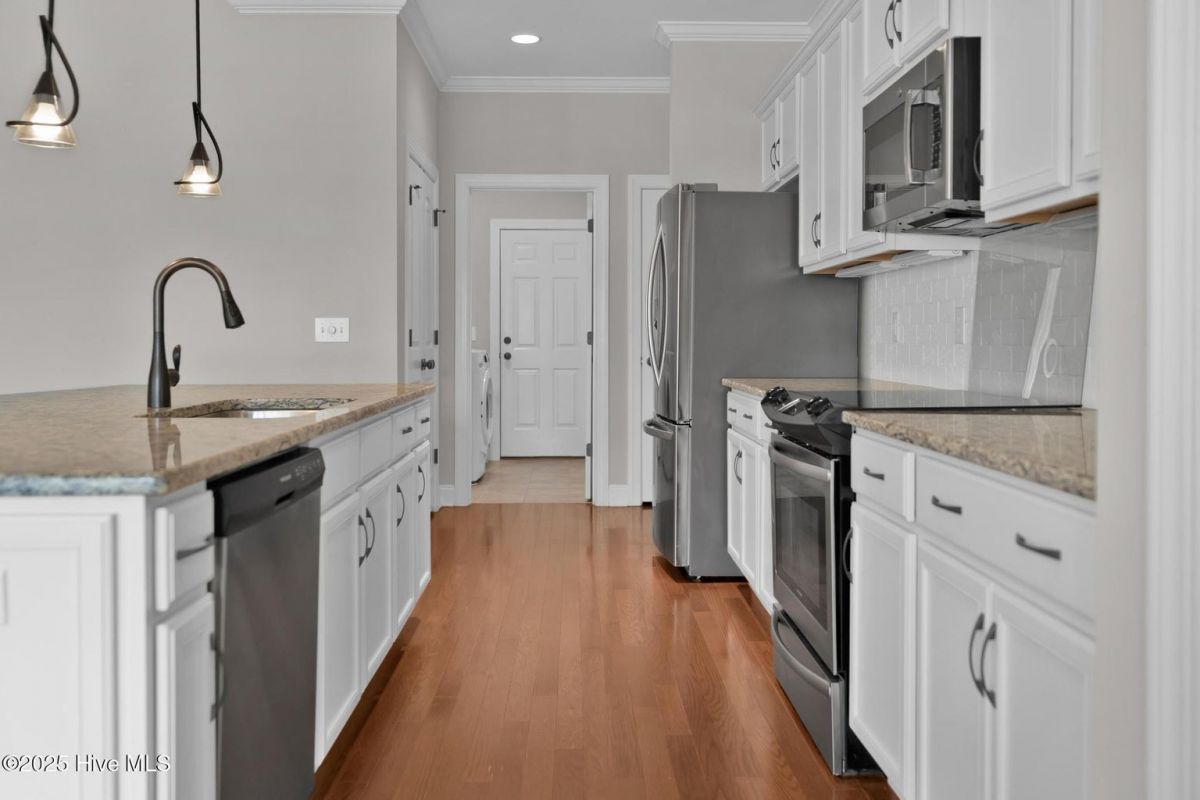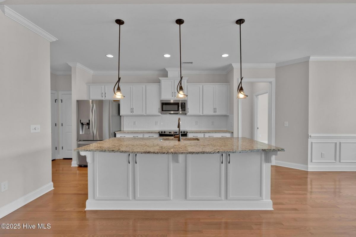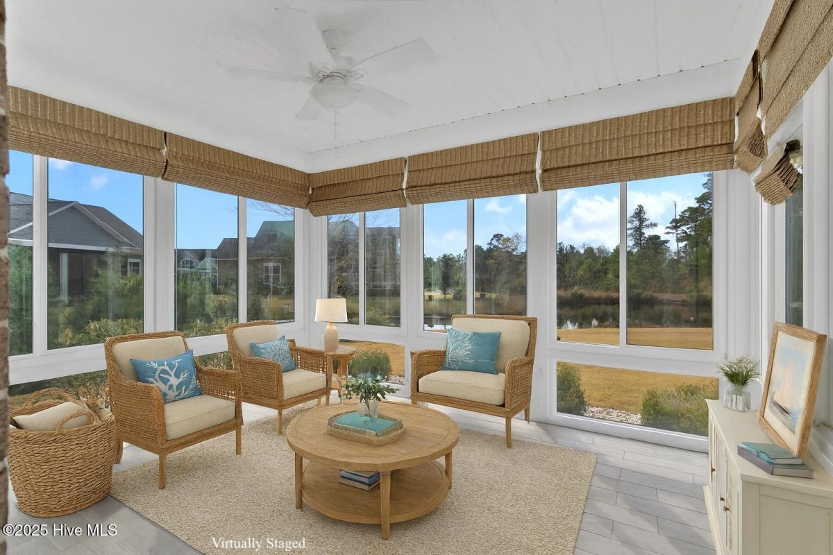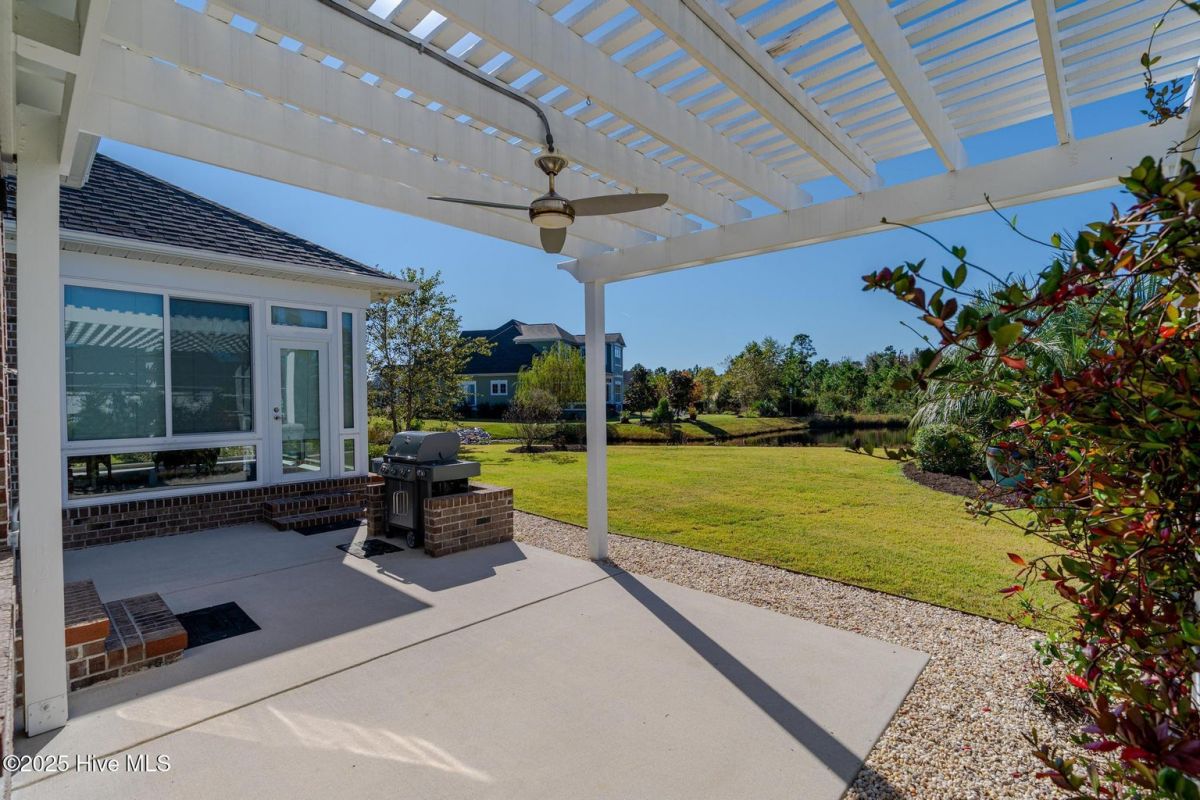 Don't miss this custom home that has been meticulously cared for with 1 owner. The open floor plan exudes sophistication with sleek solid surface counters & stainless-steel appliances, creating a modern ambiance. Spacious bedrooms welcome natural light through expansive windows with custom shutters for privacy. You will find many upgrades to include wainscoting, crown molding throughout beautiful engineered wood flooring, stainless appliances & a fireplace to snuggle in. The primary offers tray ceilings, spa like primary bath with walk in shower, double sinks & separate water closet. Off the primary enjoy a 4 seasons room to relax, enjoy your coffee while watching the turtles play. Step onto your private patio for tranquil views of the landscaped backyard to enjoy nature at it's best overlooking the large pond, an ideal retreat for relaxation or entertaining guests. St. James offers a plethora of recreational activities, including 81 holes of golf spread over 4 championship courses, tennis courts, fitness facilities, indoor/outdoor pools & more. Immerse yourself in vibrant community life, complete with an amphitheater & private beach club on Oak Island with pool & additional facilities. Many amenity memberships available. Southport's waterfront views are renowned, and the Cape Fear River is integral to the town's identity. Explore its charming streets and embrace opportunities to enjoy the river or intracoastal waterways, whether strolling along the waterfront promenade, dining with a view, or cruising on a boat. Do not miss this home located at 3235 Oceanic Bay Dr, Southport, NC. A peaceful, private setting that is part of a vibrant community!