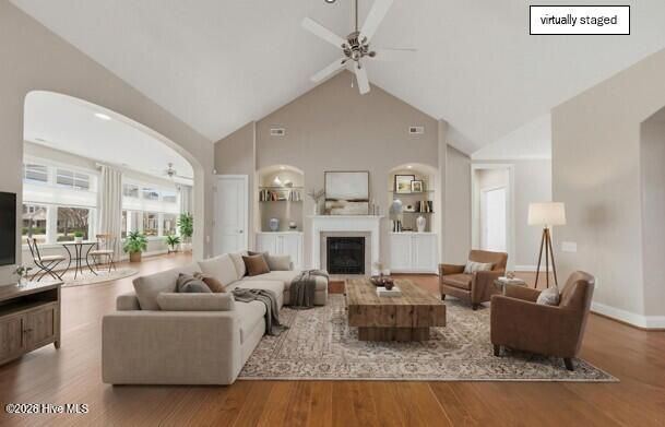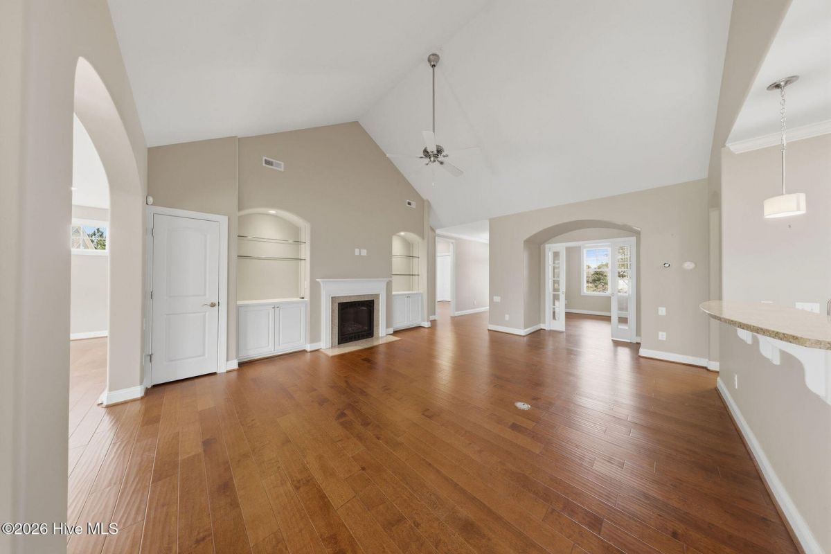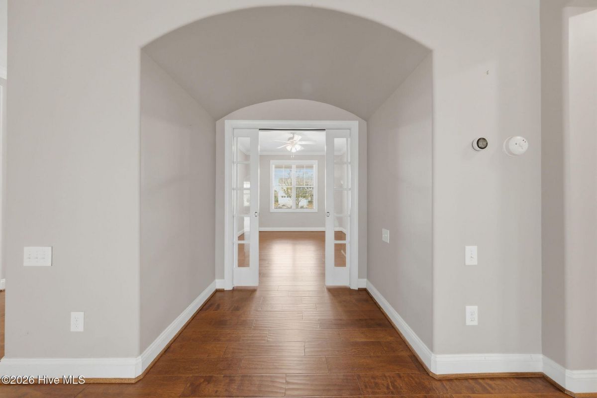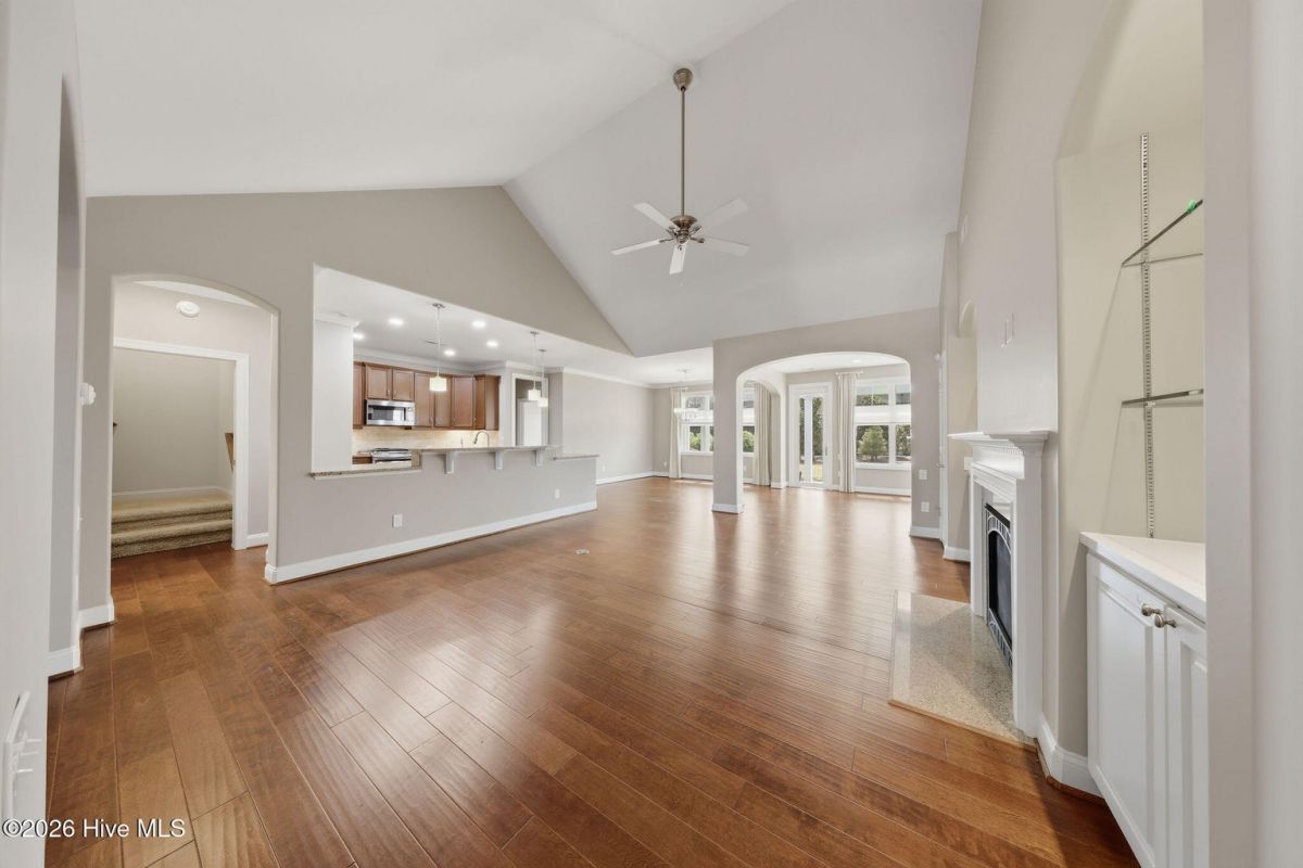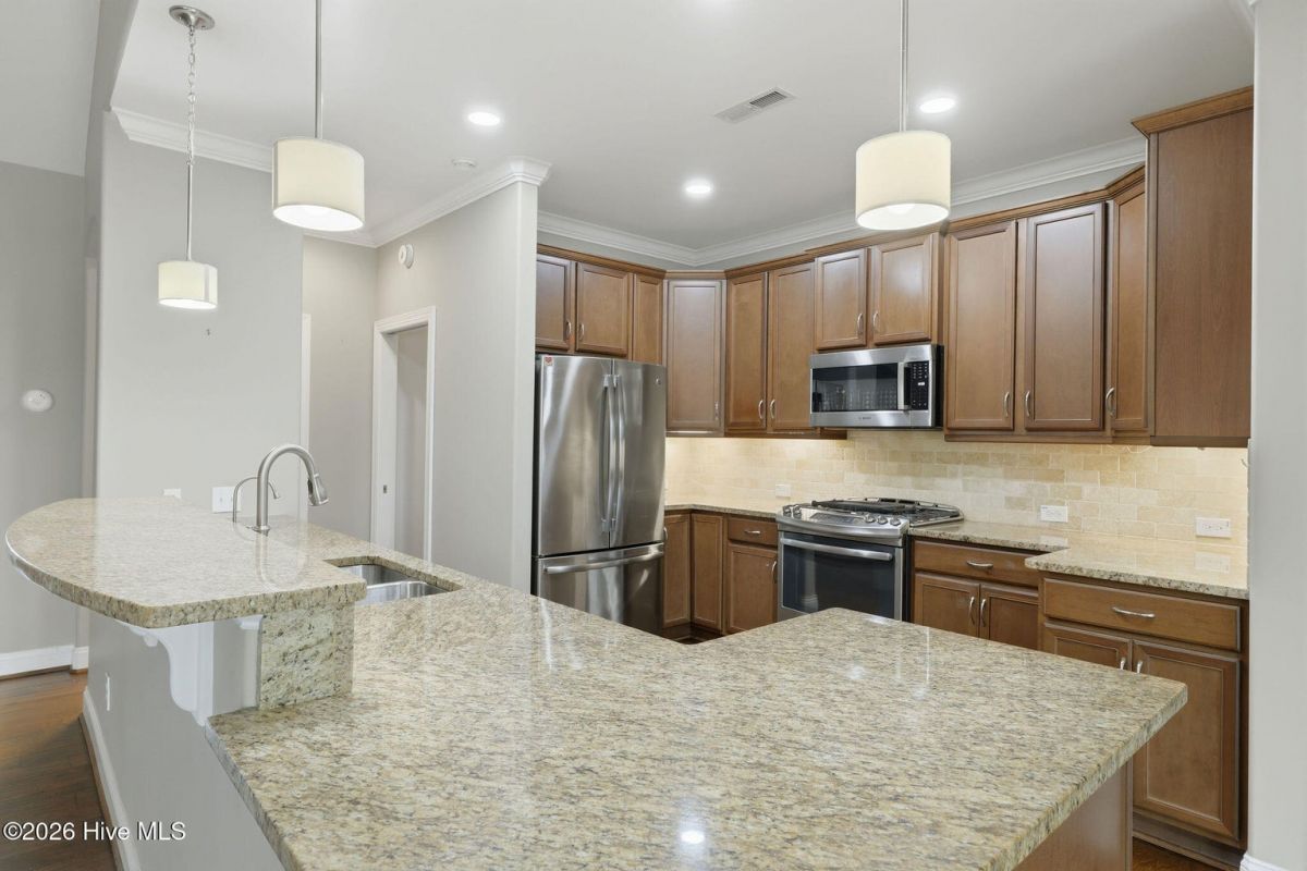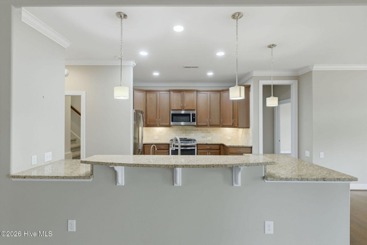 Welcome to 3346 Shell Isle Drive, a refreshing coastal cottage in St. James Plantation ideally positioned on a beautifully landscaped corner home-site with convenient access to the Seaside amenity center, gate, the sandy shores of Oak Island. The demands for energy efficiency are met with solar electricity and hot water on demand. This 2,774-square-foot home features 3 bedrooms and 3 bathrooms, blending comfort and style in every detail. A paver driveway leads to a spacious double garage and a charming walkway that guides you to the inviting front porch, highlighted by a metal roof accent and classic dormers. Step inside the welcoming entryway, where crown molding set an elegant tone that flows into the spacious great room. Here, a vaulted ceiling and gas fireplace flanked by custom built-ins nestled into arched niches create a cozy yet refined gathering space bathed in natural light from the surrounding sunroom, dining room, and home office. The handsome kitchen is seamlessly connected to the great room by an extended granite-topped bar with both raised and counter-height seating, perfect for casual dining or entertaining. Thoughtfully appointed, the kitchen features stainless steel appliances, a tiled backsplash, ample cabinetry, and stylish pendant lighting. The adjacent dining room, complete with a matching chandelier, comfortably hosts larger gatherings, while an arched opening leads to the cozy sunroom with access to the backyard retreat—featuring an exposed aggregate patio beneath a charming pergola. The spacious and private owner's suite offers a serene retreat, highlighted by a tray ceiling, rich bamboo flooring, and an abundance of natural light. The en-suite bathroom is thoughtfully designed with an extended granite-topped vanity featuring dual sinks and a dedicated makeup area, a beautifully tiled walk-in shower with an adjustable shower head, and direct access to an expansive walk-in closet. Family and friends will feel right at home in the comfortable guest bedrooms, which share a nicely appointed full bathroom, ensuring both style and convenience for all. Offering flexibility for overflow guests or multi-generational living, the bonus room features cozy carpeting, a full bathroom, a generous closet, and convenient attic access. Additional highlights of this thoughtfully maintained home include charming pocket doors, recently refreshed exterior paint, and solar panels that enhance both sustainability and savings. Every detail contributes to the comfort and functionality of this inviting coastal residence so come and visit St. James Plantation today!
