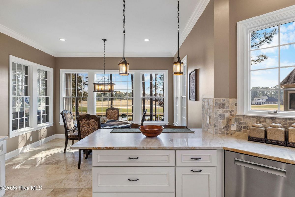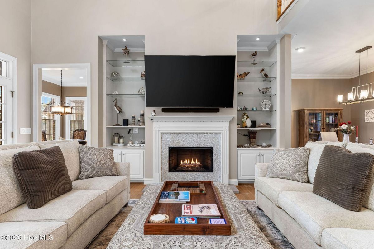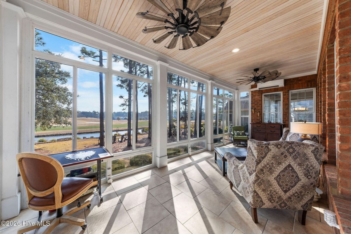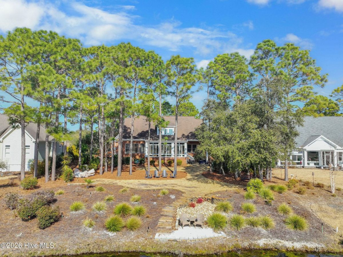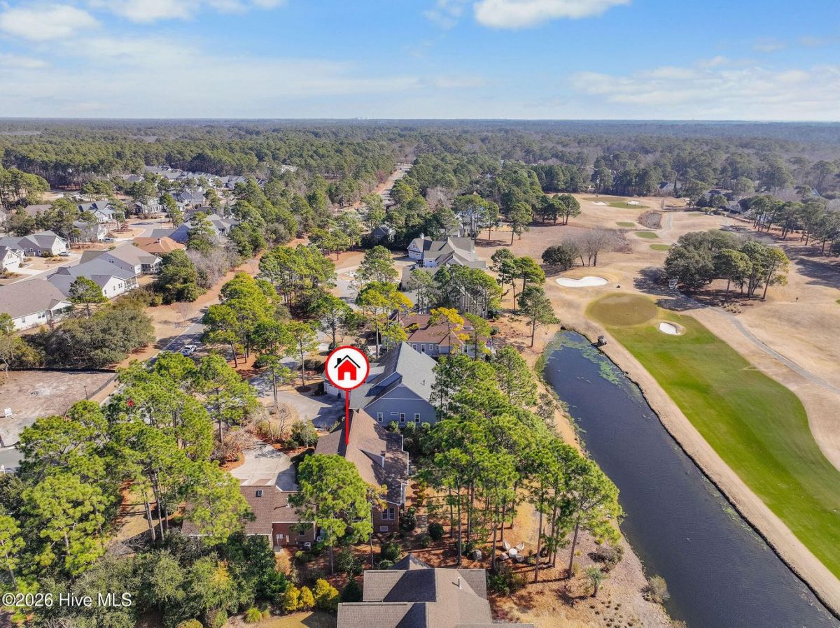 Located along the 4th hole of the Founders Club in St. James Plantation, this well-appointed home enjoys expansive golf course and pond views, a three-car garage, mature landscaping and long, open sightlines across the fairway. A quaint front porch welcomes you into the home and sets a relaxed coastal tone. Step through the front door into the foyer and be greeted by an abundance of natural light streaming through the wall of windows in the great room a clearly defined spaces designed for family and friend entertaining. The formal dining room, positioned just off the entry, offers a dedicated space for gatherings, comfortably sized for hosting holidays and larger dinner parties while remaining connected to the main living areas. The kitchen serves as the heart of the home and is thoughtfully designed with custom cabinetry, under-cabinet lighting, generous counter space, and substantial storage. A standout feature is the FORNO eight-burner gas range, paired with a custom hood, tile backsplash with pot filler, modern appliances, and a built-in ice machine—a layout that clearly supports both everyday cooking and entertaining. The adjacent breakfast area is positioned to capture pond and golf course views, offering a casual dining space with a direct visual connection to the outdoor setting. The great room is anchored by a gas fireplace that serves as a true focal point, framed by custom built in cabinets and glass shelving. A cathedral ceiling and ceiling fan with a modern yet rustic design draws the eye upward, adding architectural interest and scale, while expansive windows along the rear of the home frame sweeping views of the fairway and water beyond. Just off the great room, the true four-season sunroom is fully enclosed with glass, heated and cooled, and designed for year-round enjoyment. This space offers uninterrupted pond and golf course views and functions perfectly as a secondary sitting area or a quiet place to enjoy a cup of coffee while taking in the mild Carolina weather in every season. The primary suite is located on the main level and positioned at the rear of the home, offering privacy and direct views of the golf course and pond. The bedroom is generously sized and comfortably accommodates a king bed and additional furniture, with large windows that bring in natural light while maintaining a quiet, retreat-like feel. The primary bathroom is a standout feature of the home and reflects a thoughtful, well-executed design. It includes a large walk-in shower, soaking tub, upgraded vanities with ample storage, and well-chosen finishes that feel both current and timeless. Clearly designed to be used and enjoyed. Secondary bedrooms are located on the second level, along with a full bath and loft-style space, providing separation from the main living areas and flexibility for guests or family members. A separate bonus room with its own private staircase adds additional versatility and works well as a media room, guest suite, or home office. Additional features include a fully encapsulated crawlspace, contributing to long-term efficiency and durability, and a spacious three-car garage with ample room for vehicles, storage, and recreational equipment. If you've been searching for a well-maintained home with expansive golf and pond views, this property delivers both setting and layout. Schedule your private tour today and experience the relaxed, carefree lifestyle of St. James Plantation. Don't miss your chance to make this coastal retreat your own!