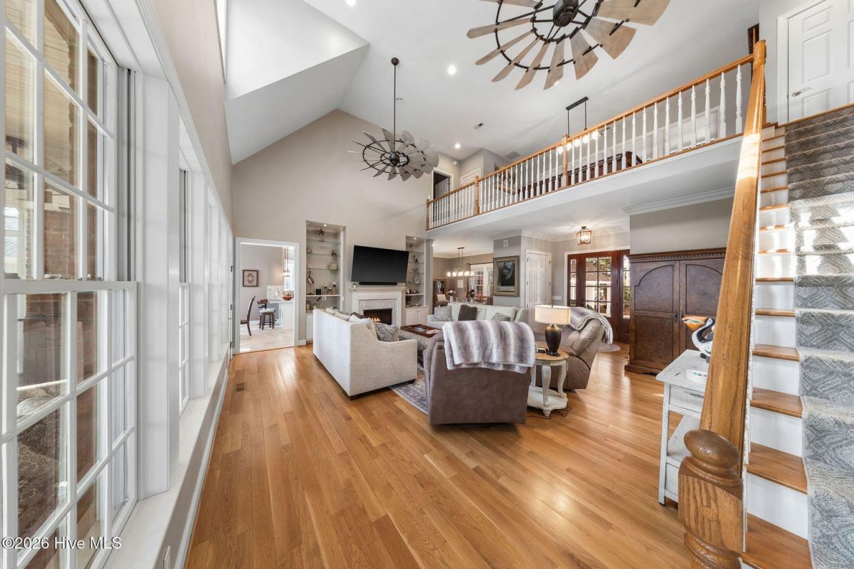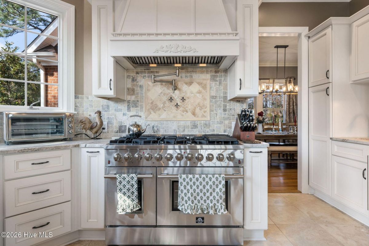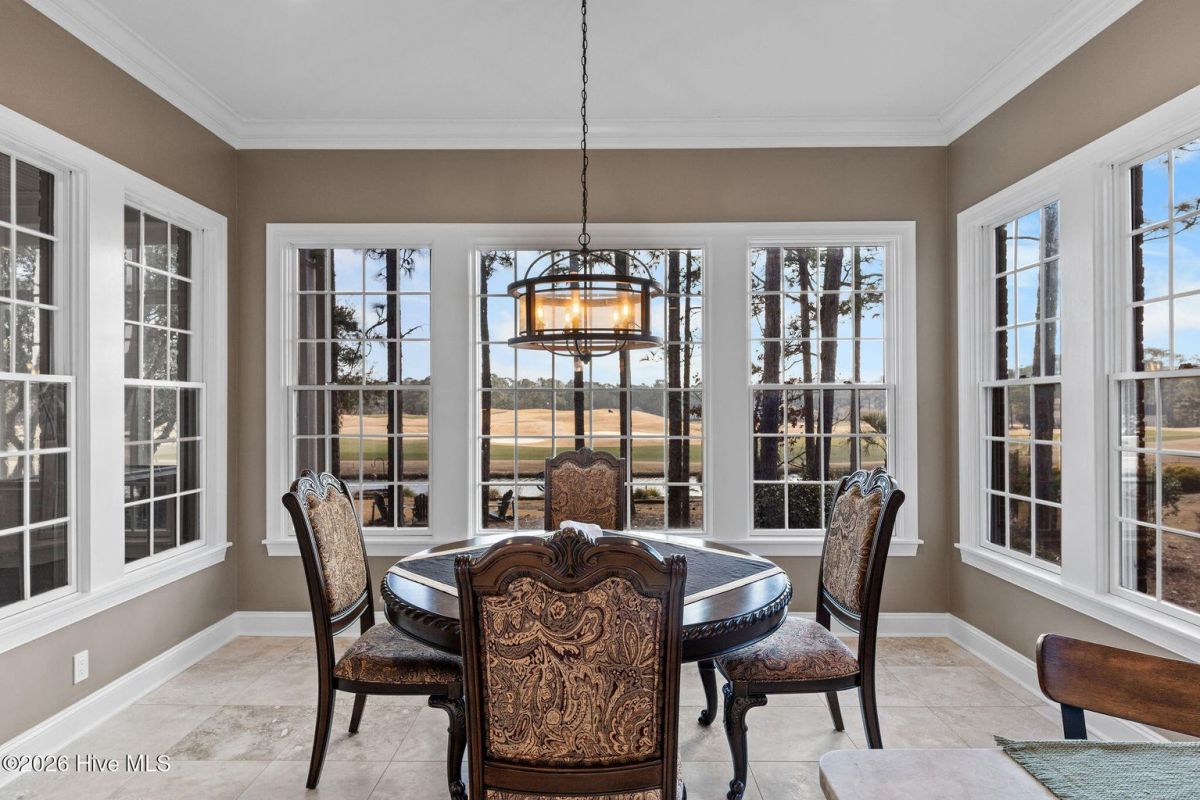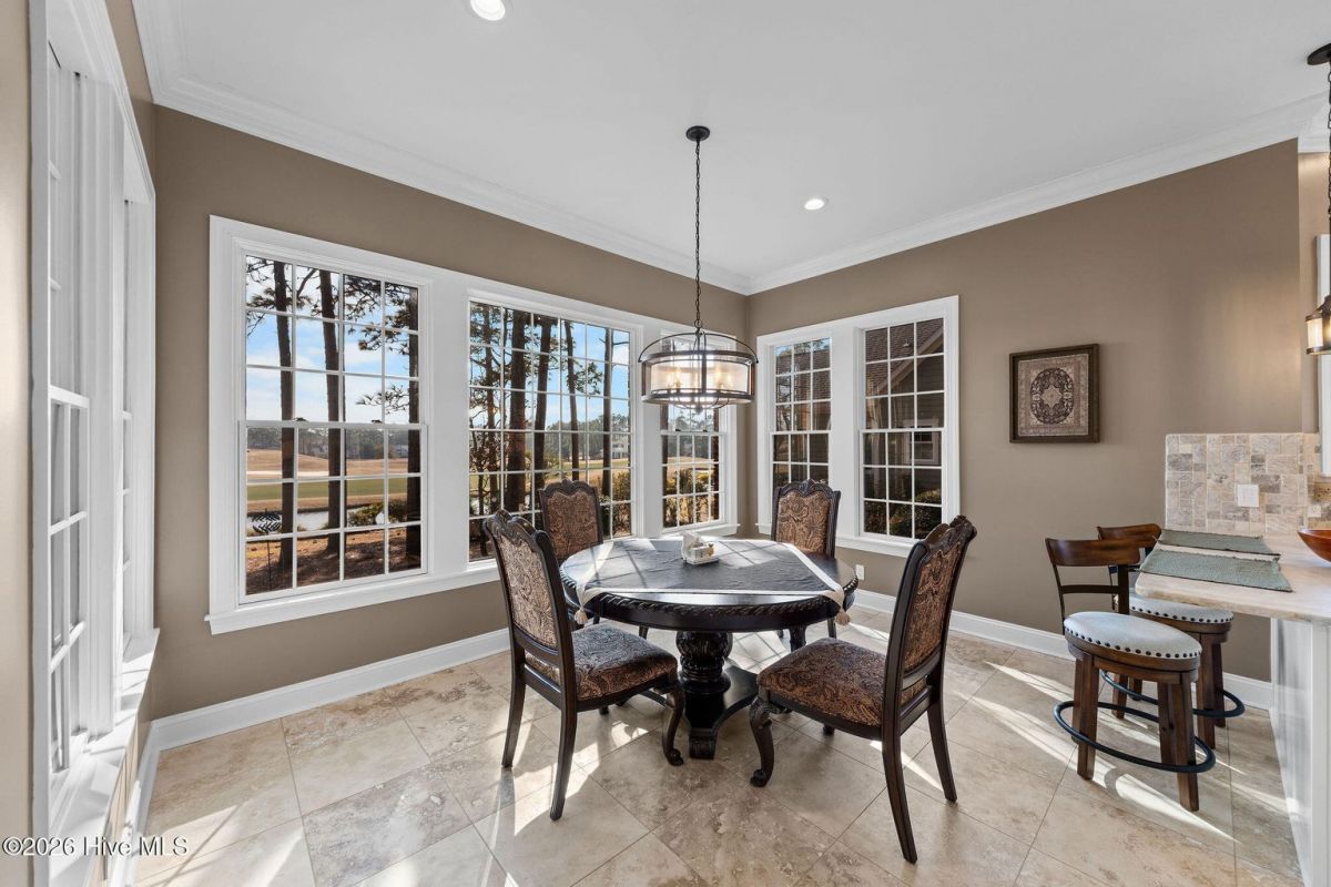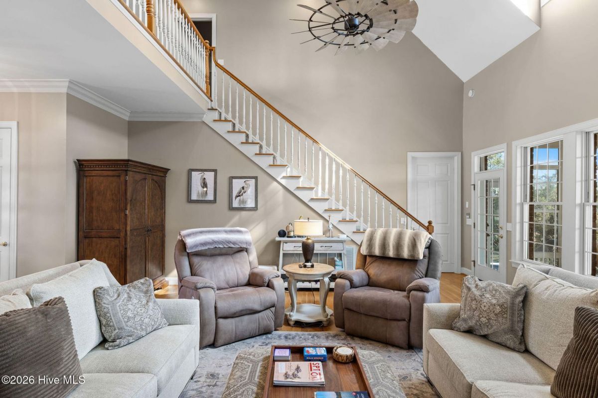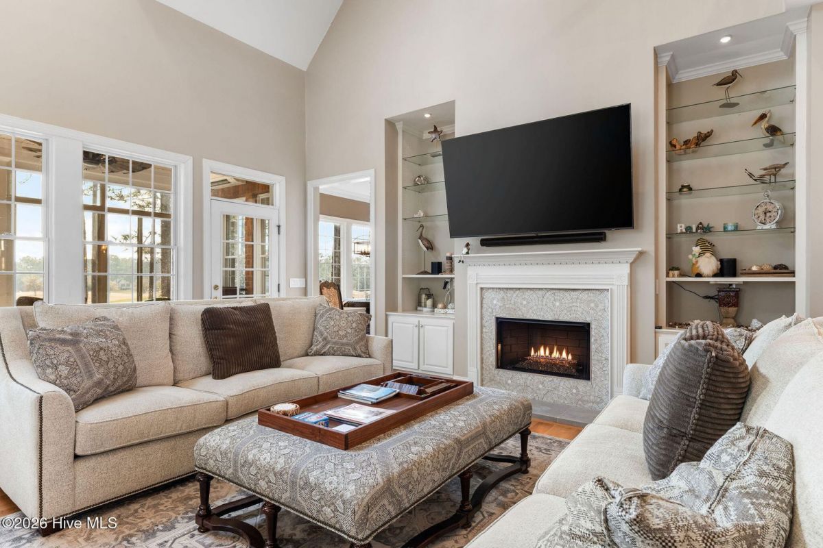 Located along the 4th hole of the Founders Club in St. James Plantation, this well-appointed home enjoys expansive golf course and pond views, a three-car garage, mature landscaping and long, open sightlines across the fairway. A quaint front porch welcomes you into the home and sets a relaxed coastal tone. Step through the front door into the foyer and be greeted by an abundance of natural light streaming through the wall of windows in the great room a clearly defined spaces designed for family and friend entertaining. The formal dining room, positioned just off the entry, offers a dedicated space for gatherings, comfortably sized for hosting holidays and larger dinner parties while remaining connected to the main living areas. The kitchen serves as the heart of the home and is thoughtfully designed with custom cabinetry, under-cabinet lighting, generous counter space, and substantial storage. A standout feature is the FORNO eight-burner gas range, paired with a custom hood, tile backsplash with pot filler, modern appliances, and a built-in ice machine—a layout that clearly supports both everyday cooking and entertaining. The adjacent breakfast area is positioned to capture pond and golf course views, offering a casual dining space with a direct visual connection to the outdoor setting. The great room is anchored by a gas fireplace that serves as a true focal point, framed by custom built in cabinets and glass shelving. A cathedral ceiling and ceiling fan with a modern yet rustic design draws the eye upward, adding architectural interest and scale, while expansive windows along the rear of the home frame sweeping views of the fairway and water beyond. Just off the great room, the true four-season sunroom is fully enclosed with glass, heated and cooled, and designed for year-round enjoyment. This space offers uninterrupted pond and golf course views and functions perfectly as a secondary sitting area or a quiet place to enjoy a cup of coffee while taking in the mild Carolina weather in every season. The primary suite is located on the main level and positioned at the rear of the home, offering privacy and direct views of the golf course and pond. The bedroom is generously sized and comfortably accommodates a king bed and additional furniture, with large windows that bring in natural light while maintaining a quiet, retreat-like feel. The primary bathroom is a standout feature of the home and reflects a thoughtful, well-executed design. It includes a large walk-in shower, soaking tub, upgraded vanities with ample storage, and well-chosen finishes that feel both current and timeless. Clearly designed to be used and enjoyed. Secondary bedrooms are located on the second level, along with a full bath and loft-style space, providing separation from the main living areas and flexibility for guests or family members. A separate bonus room with its own private staircase adds additional versatility and works well as a media room, guest suite, or home office. Additional features include a fully encapsulated crawlspace, contributing to long-term efficiency and durability, and a spacious three-car garage with ample room for vehicles, storage, and recreational equipment. If you've been searching for a well-maintained home with expansive golf and pond views, this property delivers both setting and layout. Schedule your private tour today and experience the relaxed, carefree lifestyle of St. James Plantation. Don't miss your chance to make this coastal retreat your own!