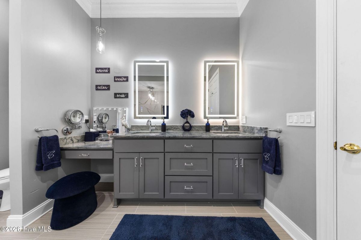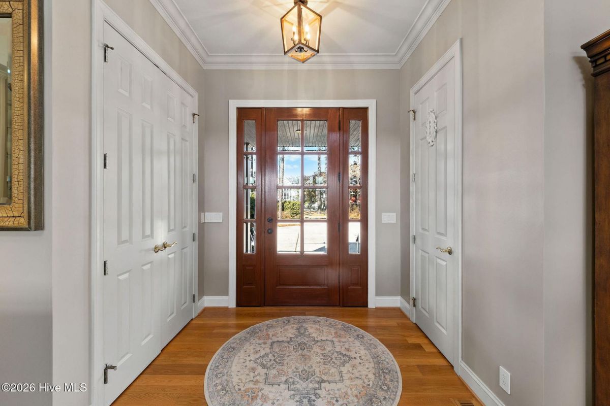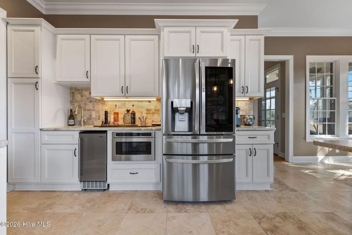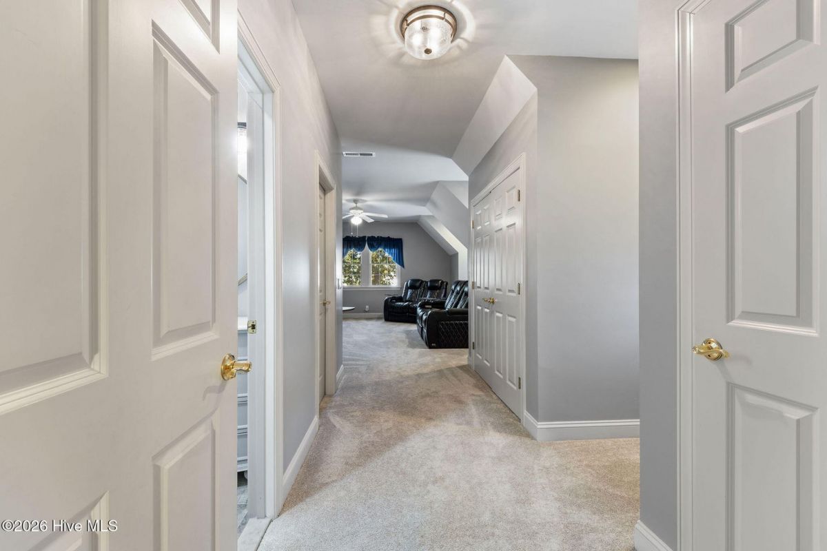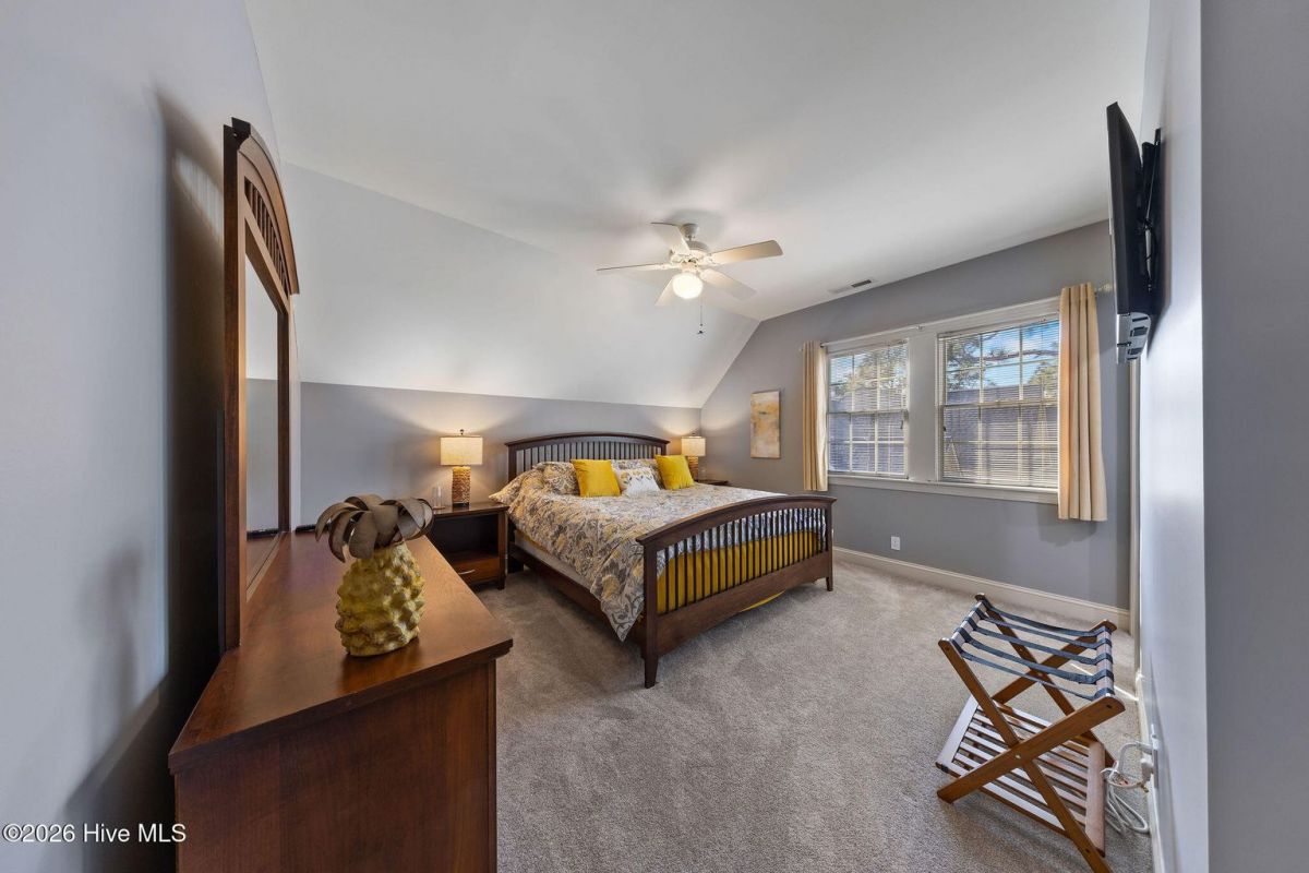 Located along the 4th hole of the Founders Club in St. James Plantation, this well-appointed home enjoys expansive golf course and pond views, a three-car garage, mature landscaping and long, open sightlines across the fairway. A quaint front porch welcomes you into the home and sets a relaxed coastal tone. Step through the front door into the foyer and be greeted by an abundance of natural light streaming through the wall of windows in the great room a clearly defined spaces designed for family and friend entertaining. The formal dining room, positioned just off the entry, offers a dedicated space for gatherings, comfortably sized for hosting holidays and larger dinner parties while remaining connected to the main living areas. The kitchen serves as the heart of the home and is thoughtfully designed with custom cabinetry, under-cabinet lighting, generous counter space, and substantial storage. A standout feature is the FORNO eight-burner gas range, paired with a custom hood, tile backsplash with pot filler, modern appliances, and a built-in ice machine—a layout that clearly supports both everyday cooking and entertaining. The adjacent breakfast area is positioned to capture pond and golf course views, offering a casual dining space with a direct visual connection to the outdoor setting. The great room is anchored by a gas fireplace that serves as a true focal point, framed by custom built in cabinets and glass shelving. A cathedral ceiling and ceiling fan with a modern yet rustic design draws the eye upward, adding architectural interest and scale, while expansive windows along the rear of the home frame sweeping views of the fairway and water beyond. Just off the great room, the true four-season sunroom is fully enclosed with glass, heated and cooled, and designed for year-round enjoyment. This space offers uninterrupted pond and golf course views and functions perfectly as a secondary sitting area or a quiet place to enjoy a cup of coffee while taking in the mild Carolina weather in every season. The primary suite is located on the main level and positioned at the rear of the home, offering privacy and direct views of the golf course and pond. The bedroom is generously sized and comfortably accommodates a king bed and additional furniture, with large windows that bring in natural light while maintaining a quiet, retreat-like feel. The primary bathroom is a standout feature of the home and reflects a thoughtful, well-executed design. It includes a large walk-in shower, soaking tub, upgraded vanities with ample storage, and well-chosen finishes that feel both current and timeless. Clearly designed to be used and enjoyed. Secondary bedrooms are located on the second level, along with a full bath and loft-style space, providing separation from the main living areas and flexibility for guests or family members. A separate bonus room with its own private staircase adds additional versatility and works well as a media room, guest suite, or home office. Additional features include a fully encapsulated crawlspace, contributing to long-term efficiency and durability, and a spacious three-car garage with ample room for vehicles, storage, and recreational equipment. If you've been searching for a well-maintained home with expansive golf and pond views, this property delivers both setting and layout. Schedule your private tour today and experience the relaxed, carefree lifestyle of St. James Plantation. Don't miss your chance to make this coastal retreat your own!