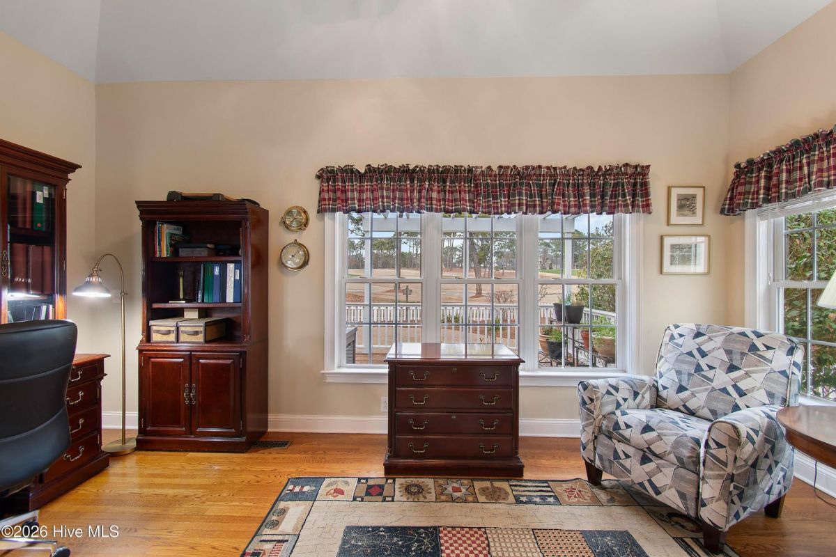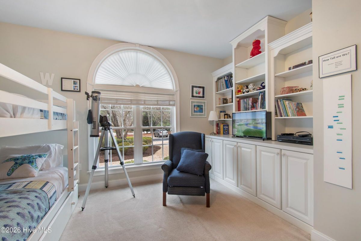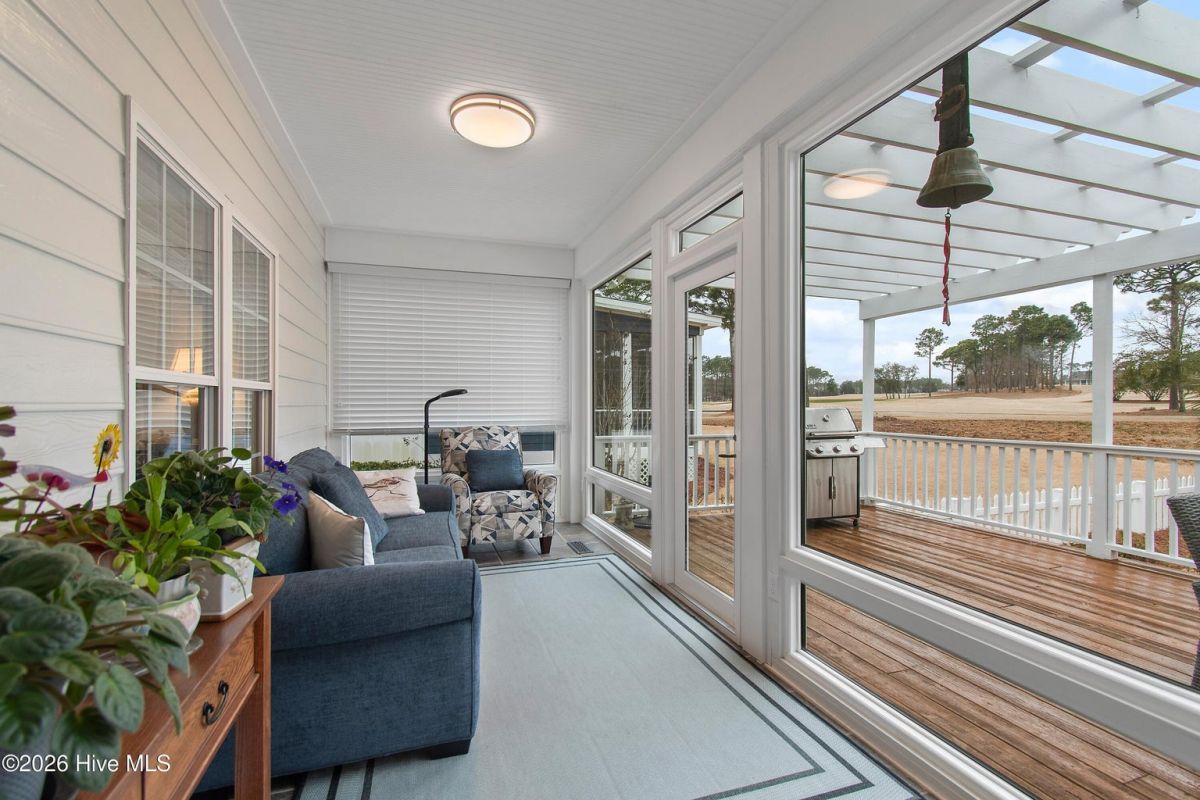 Located on a quiet eyebrow in the highly sought-after Members Club area of St James, this beautifully maintained 4-bedroom, 3 full bath home offers comfort, flexibility, and stunning golf course views. Three bedrooms are conveniently located on the first floor, while the spacious fourth room upstairs--with its own full bath--can serve as a guest suite, private office, bonus room, or additional living space. Step outside to a spectacular deck that spans the entire back of the home, complete with two pergolas, creating the perfect setting for entertaining, relaxing, and enjoying a front-row seat to the golf course. When the weather cools, the bright sunroom offers a cozy retreat with year-round views. Inside, the thoughtfully designed floor plan includes a dedicated office/den just off the main living area, a kitchen with abundant counter space, and a charming separate breakfast nook for casual dining. Storage is exceptional throughout, with built-ins in the garage and laundry room, attic space, and a separate conditioned room in the attic--ideal for hobbies, storage, or future expansion. This home combines location, layout, and lifestyle -- a rare opportunity in St James.