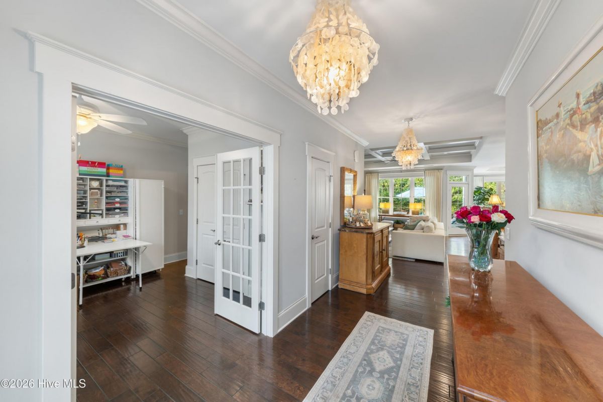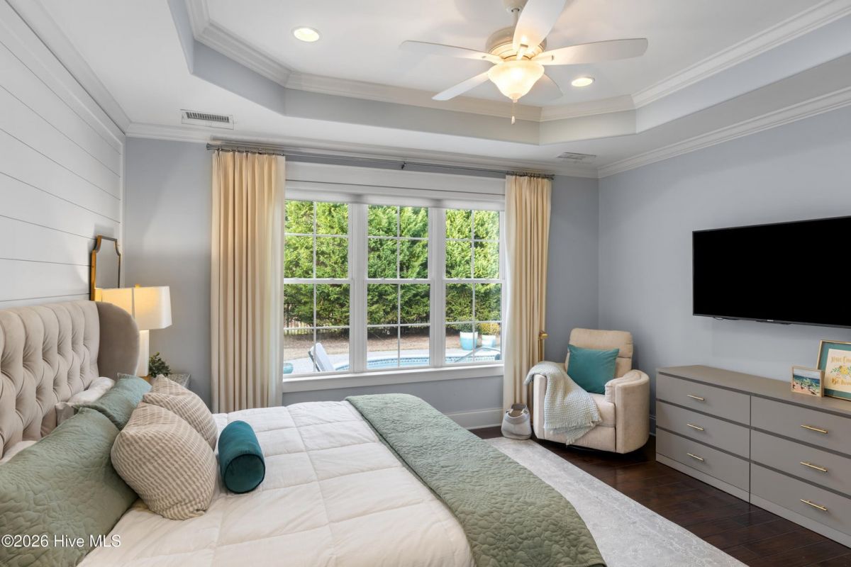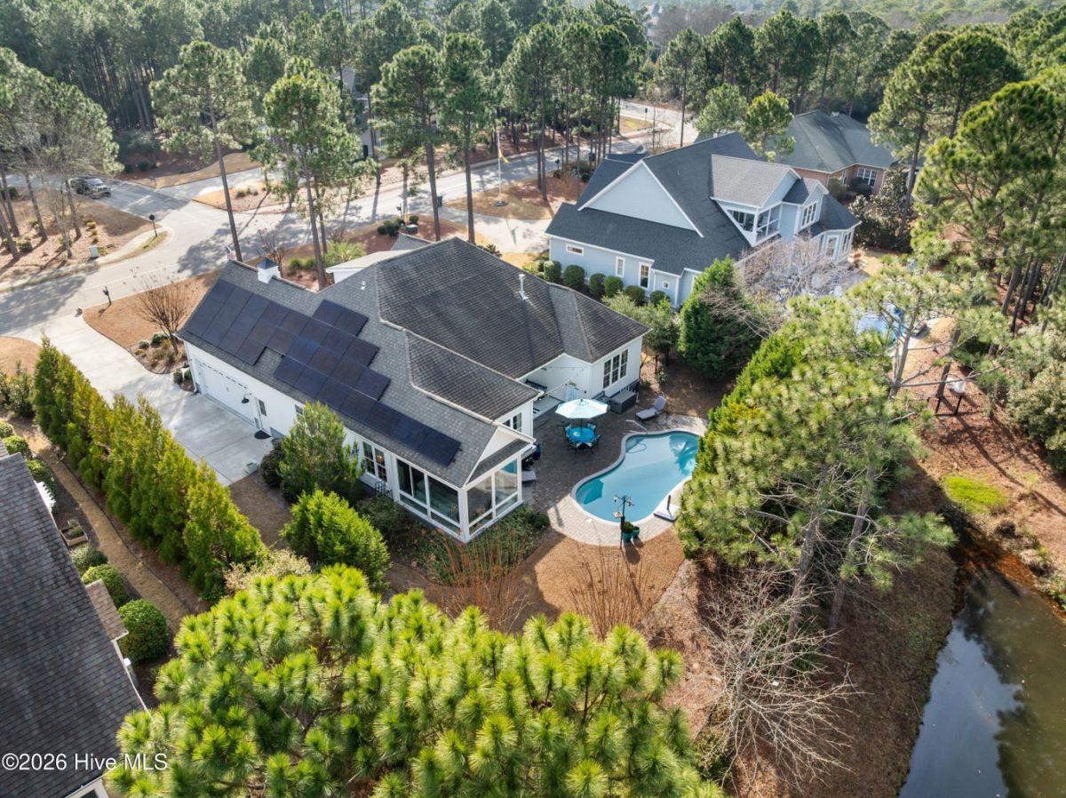 You truly can have it all with this one-of-a-kind custom coastal home, ideally located just steps from The Reserve Club in one of the most prestigious neighborhoods of The Reserve at St. James Plantation. Set on a serene pond-front lot, the home offers exceptional privacy, tranquil water views, and a private saltwater pool, creating a rare and highly desirable lifestyle opportunity. Designed for today's energy-conscious buyer, the home features a brand-new hybrid solar panel system with battery storage, resulting in little to no electric bill while supporting major appliances, pool operation, hot water, and providing peace of mind during power outages. Additional efficiency features include a tankless water heater, EV charger, and newer HVAC unit—reflecting a thoughtful, forward-thinking approach to ownership. Inside, refined elegance meets functional design. Rich hardwood floors, detailed millwork, quality craftsmanship, and an abundance of natural light define the interior. The expansive open-concept layout allows for seamless flow between the main living areas and outdoor spaces, enhancing both everyday living and entertaining. The impressive kitchen is both beautiful and practical, showcasing custom cabinetry, granite countertops, gas cooking, premium stainless-steel appliances, and a substantial island that anchors the sun-filled dining and living areas, all centered around a striking fireplace. The well-proportioned floor plan offers generous living spaces and exceptional flexibility. The first floor includes a private mother-in-law suite, ideal for guests or multigenerational living. The primary suite is a true retreat, featuring tray ceilings, abundant natural light, and a spa-inspired bath with dual vanities and an oversized walk-in shower. Additional guest rooms and flexible spaces provide comfort and privacy throughout the home. An expansive upstairs bonus room offers exceptional separation with its own door, full bath, and separate HVAC zone. Outdoor living is a defining feature of this property. The private saltwater pool is surrounded by seating areas overlooking the pond, creating an inviting setting for relaxation or entertaining. The pond is stocked with largemouth bass, adding a unique lifestyle element and reinforcing the home's connection to nature. Mature landscaping enhances privacy while maintaining open sightlines and a peaceful backdrop. A glass-enclosed porch and expansive patio further extend the living space outdoors, creating a true retreat-like atmosphere. Additional features include abundant walk-in attic storage, a utility sink, ample cabinetry, and an oversized two-car garage with a dedicated storage closet. Located within one of St. James Plantation's most desirable communities, The Reserve is known for its custom homes, established streetscapes, and proximity to premier amenities.