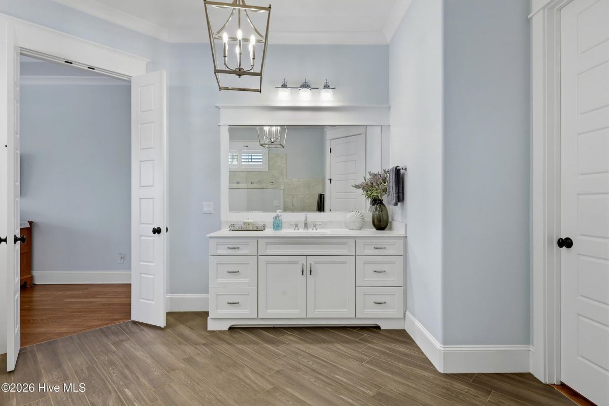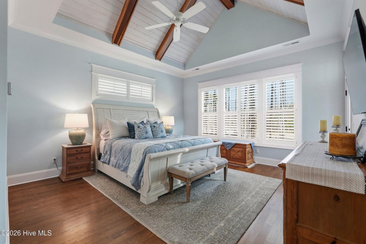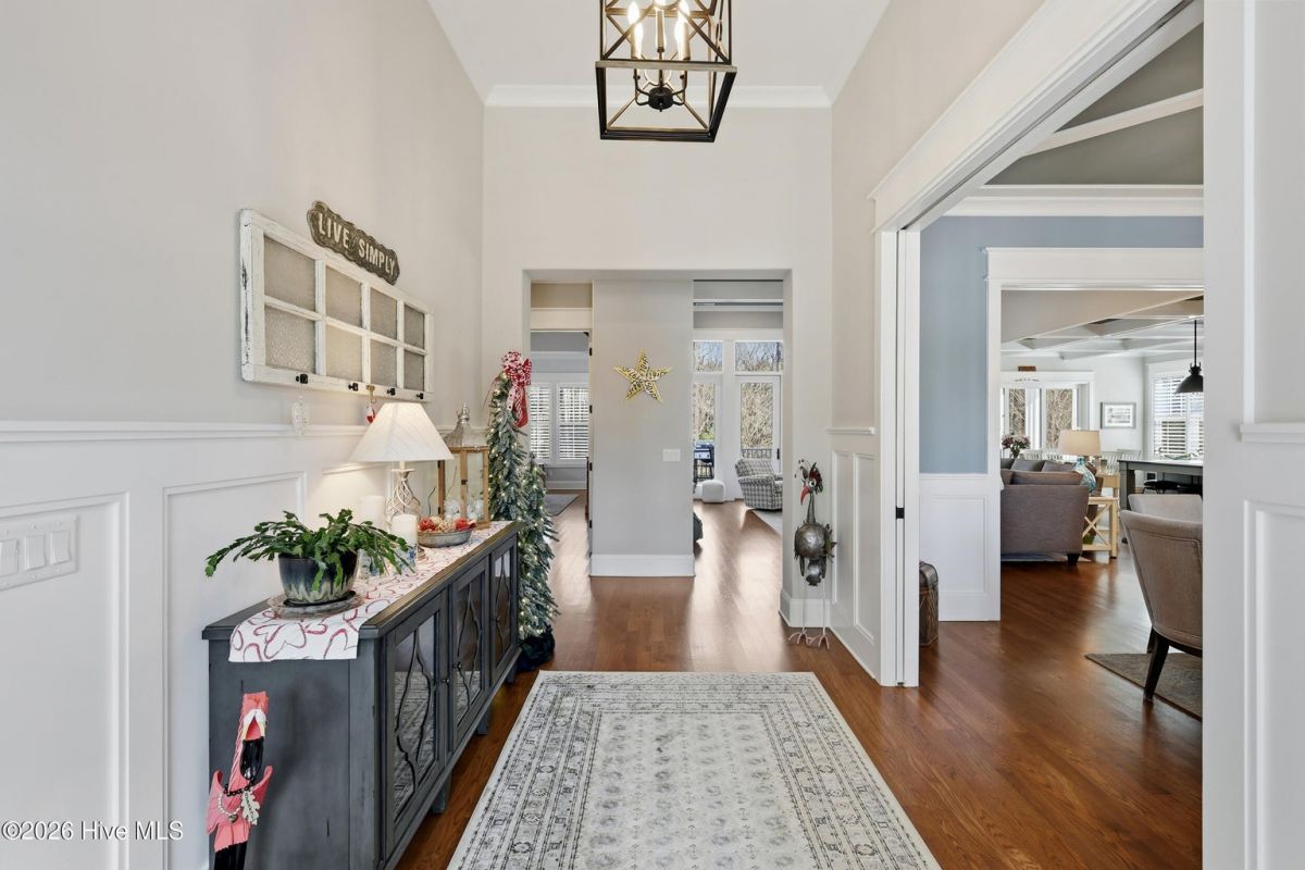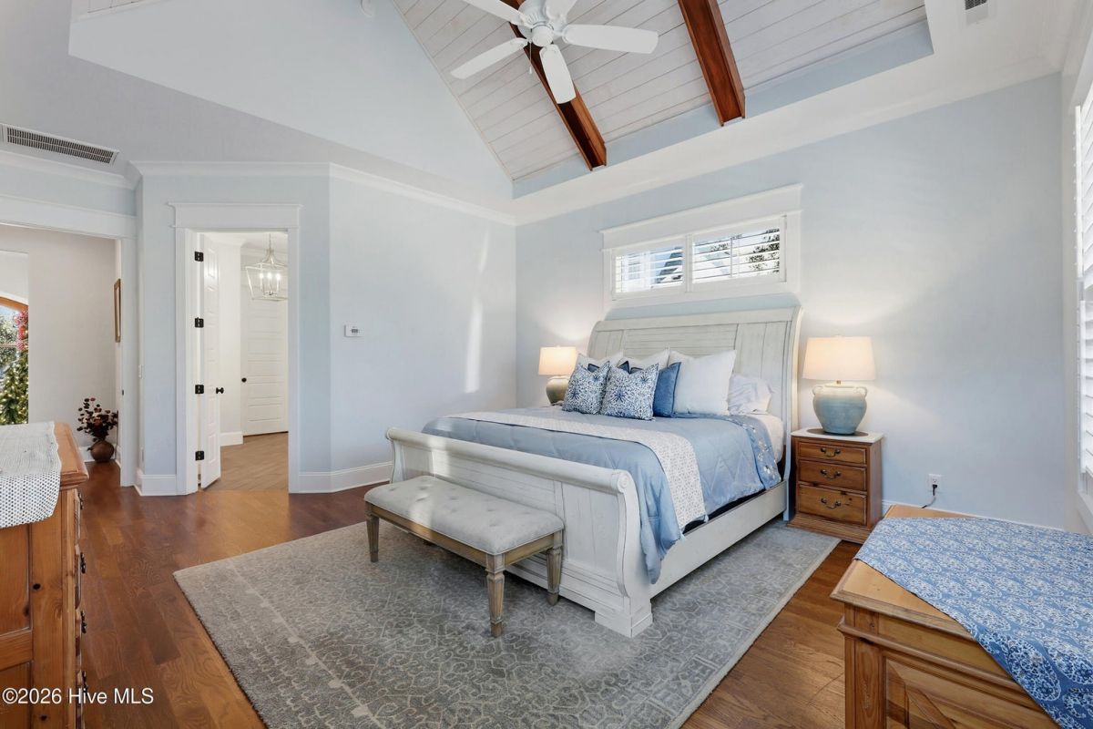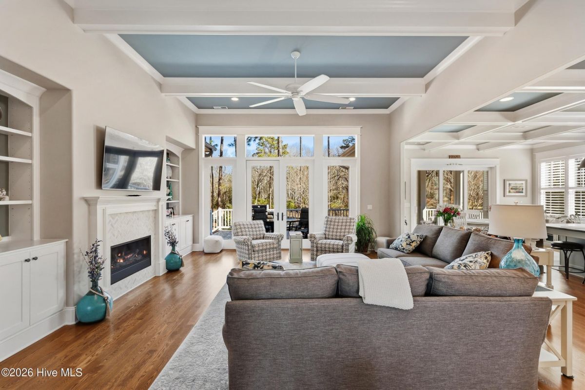 Welcome to 3784 Bancroft Place in St James. You will notice this is one of the loveliest streets in the Reserve. This customized Barker and Canady home backs up to the 18th hole on the prestigious Reserve signature golf course. Double glass mahogany wood doors lead you into the 12' foyer, flanked by the formal dining room with two sets of pocket doors. Coffered 10' ceilings, elegant crown moldings, hardwood floors, and built-ins along the fireplace all add to the elegance of this beautiful home. The chef's kitchen includes a large center island with leathered granite, Thermador range, refrigerator, dishwasher, wall oven, and combo microwave. A walk-in pantry and drop zone lead out to the three-plus car garage. The primary suite, located on the first floor, boasts a cathedral beamed ceiling with shiplap and a ceiling fan. A private door leads out to the raised patio and fenced backyard. Spa like bath include 2 vanities, walk in shower and generously sized walk in closet. The second floor includes a sitting area, full bath, bedroom, and an additional room which can be used as a bedroom or bonus room. A walk-in attic provides ample storage space. St. James is a gated community where residents enjoy a private oceanfront beach club with a pool and full facilities on Oak Island, a full-service marina with dry stack storage, the Beacon restaurant, and a Tiki bar. The community also features several walking and biking trails. Club membership includes 81 holes of championship golf, three fitness centers, four additional restaurants, three outdoor pools, one indoor pool, pickleball, tennis, and croquet.