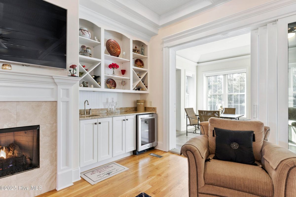 Best built hurricane house in St. James! Concrete hybrid construction, with superior insulation and hurricane resistant windows, doors and roof, earning it a Bronze fortified construction certification by the state of North Carolina. Very low utility bills (available to verify). Located walking distance to the Reserve Club and the Jack Nicklaus golf course. This spacious home has luxurious finishes, detailed woodwork, and tray and coffered ceilings. The chef's kitchen is light filled with fluted farm sink, high end appliances and an oversized island with granite countertops. There is an adjacent walk-in pantry with full size refrigerator. Also the keeping room has a fireplace. Large owners' suite has custom walk-in closet/dressing room, plus ensuite with jetted tub and super zero entry shower with multiple heads and a TV included! The game room and bonus suite have plenty of space for pool tables, theater, crafts, etc. There are large custom closets, plus abundant walk-in storage! Oversized three car garage and plenty of parking for visitors. Large window filled sunroom with 16 ft sliding doors. Situated on wooded lot with two pond views. This 6,120 sf, efficient-to-run home is truly one of a kind! For details, see the Feature Sheet attached under the document tab. St. James Plantation is an amenity rich gated community with private beach club, golf, marina, restaurants and much more. Don't miss this exceptional home!
