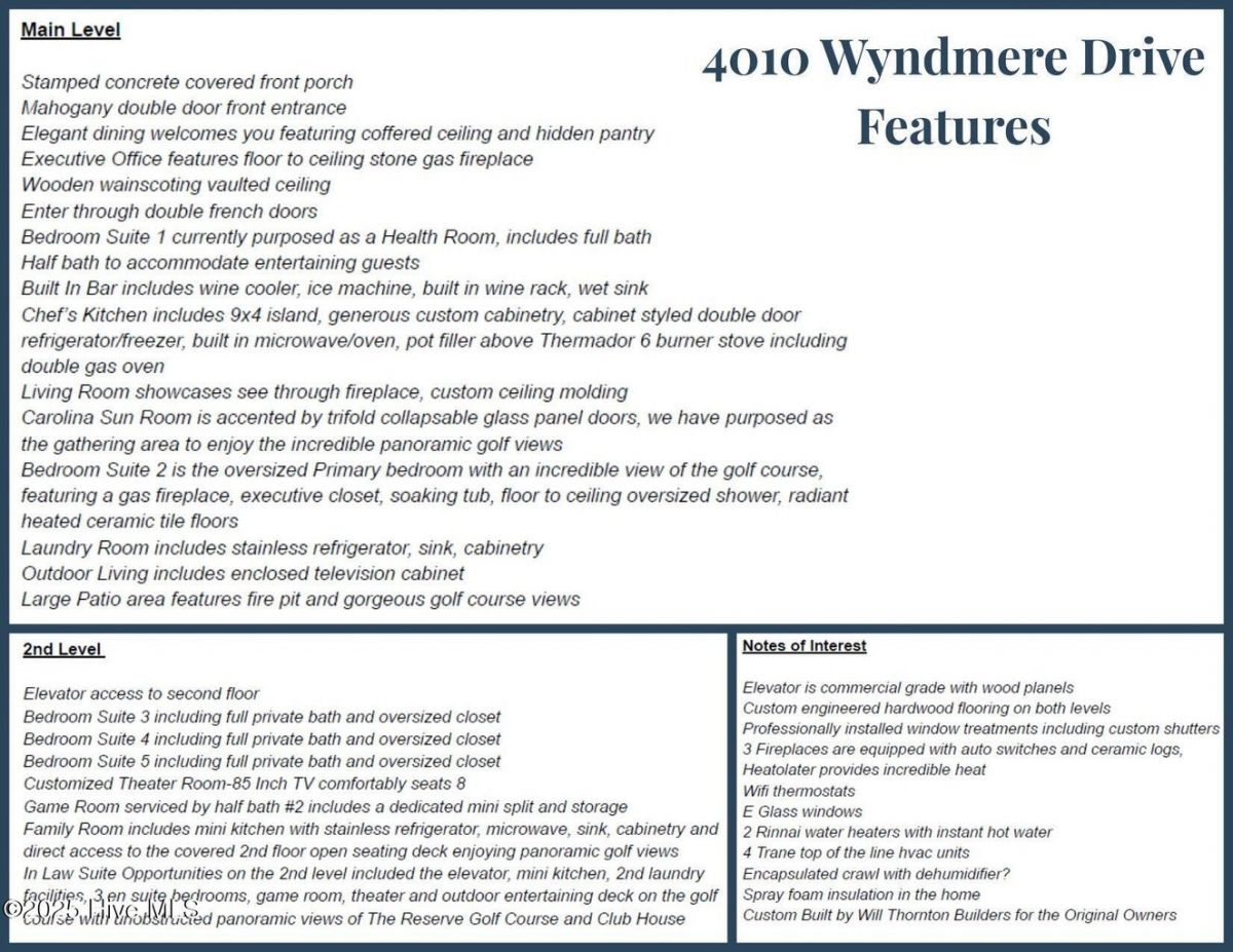 2nd Kitchen,Apt/Suite,Blinds/Shades,Bookcases,Ceiling Fan(s),Elevator,Entrance Foyer,Furnished,Gas Log,High Ceilings,Kitchen Island,Master Downstairs,Mud Room,Pantry,Sauna,Sound System,Tray Ceiling(s),Vaulted Ceiling(s),Walk-in Shower,Walk-In Closet(s),Wet Bar,Whirlpool