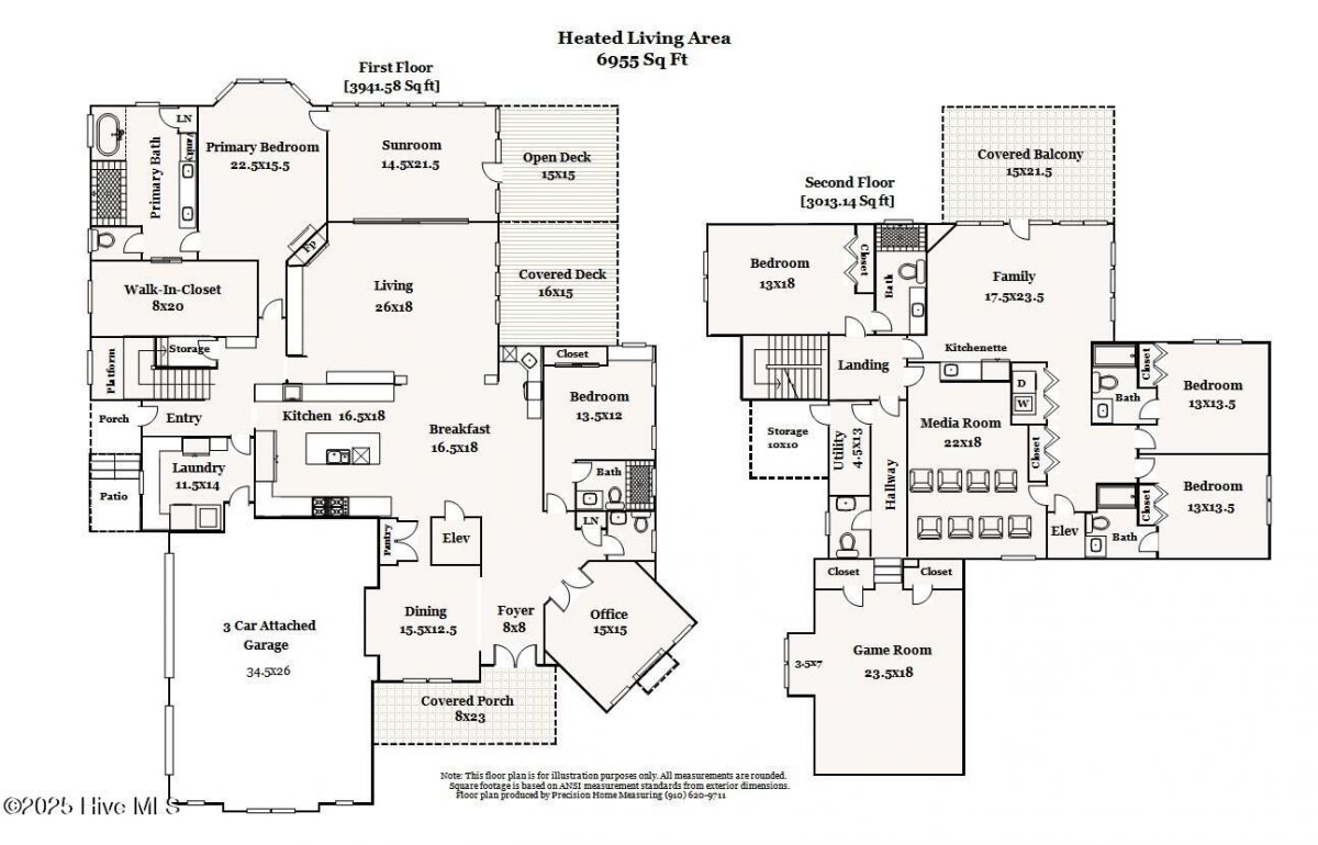 A Must See ! Custom Built Home on oversized lot offers an incredible value! Long views on Nicklaus designed golf course! Almost 7000 sqft of top quality fit & finish! 5 Bedroom, 5 full baths and 2 half baths. 2nd Floor ,private living area includes mini kitchen, private laundry, ensuites, theatre room, game room, great room and outdoor decking overlooking the The Reserve Club House, putting green, practice facility and 1st tee box | Elegance and Sophistication meet Custom Built Quality | Outstanding Value at $414/sqft! | Luxury Investment | Executive Quality built with vision and design | Enter the double mahogany doors and immediately impress your guests with the wow factor golf views | All the amenities in the home you would expect including Interior Elevator, Thermador double oven, w/pot filler, cabinet style fridge, 9 ft granite island, casual and formal dining options, engineered hardwoods, coffered ceilings, multiple fireplaces | 5 En Suites | Executive office w fireplace | Game room, 8 Seat Theatre | Heated floors in primary suite bath including oversized shower and elegant soaking tub | In-Law Suite on upper level with 2nd laundry, outdoor covered balcony, mini kitchen | Spray foam | 2 Tankless Rinnai water heaters, instant hot feature | 4 Trane | SMART Technology | Oversized 3 car garage | Multiple outdoor entertainment area's | Ultimate in outdoor living and location | Designed for the discerning client! | Membership is Active | All St James residents enjoy 4 security gates, gated private beach club with showers and a pool on the Atlantic Ocean. 475 Slip Marina including Restaurant and Tiki Bar, Apothecary, shopping. Being a resident offers the opportunity to join the private clubs. That includes 4 country clubs, 81 holes of golf, 4 more pools, 6 restaurants, 3 gyms, Har Tru State Championship tennis, pickleball, croquet. Enjoy the lifestyle today! Come see why St James has been the number 1 Coastal Community in the Carolinas for 20 years!