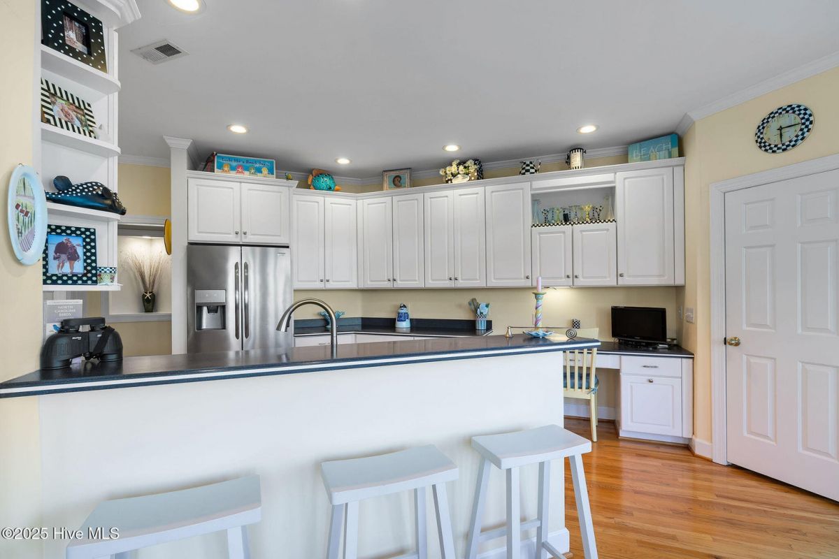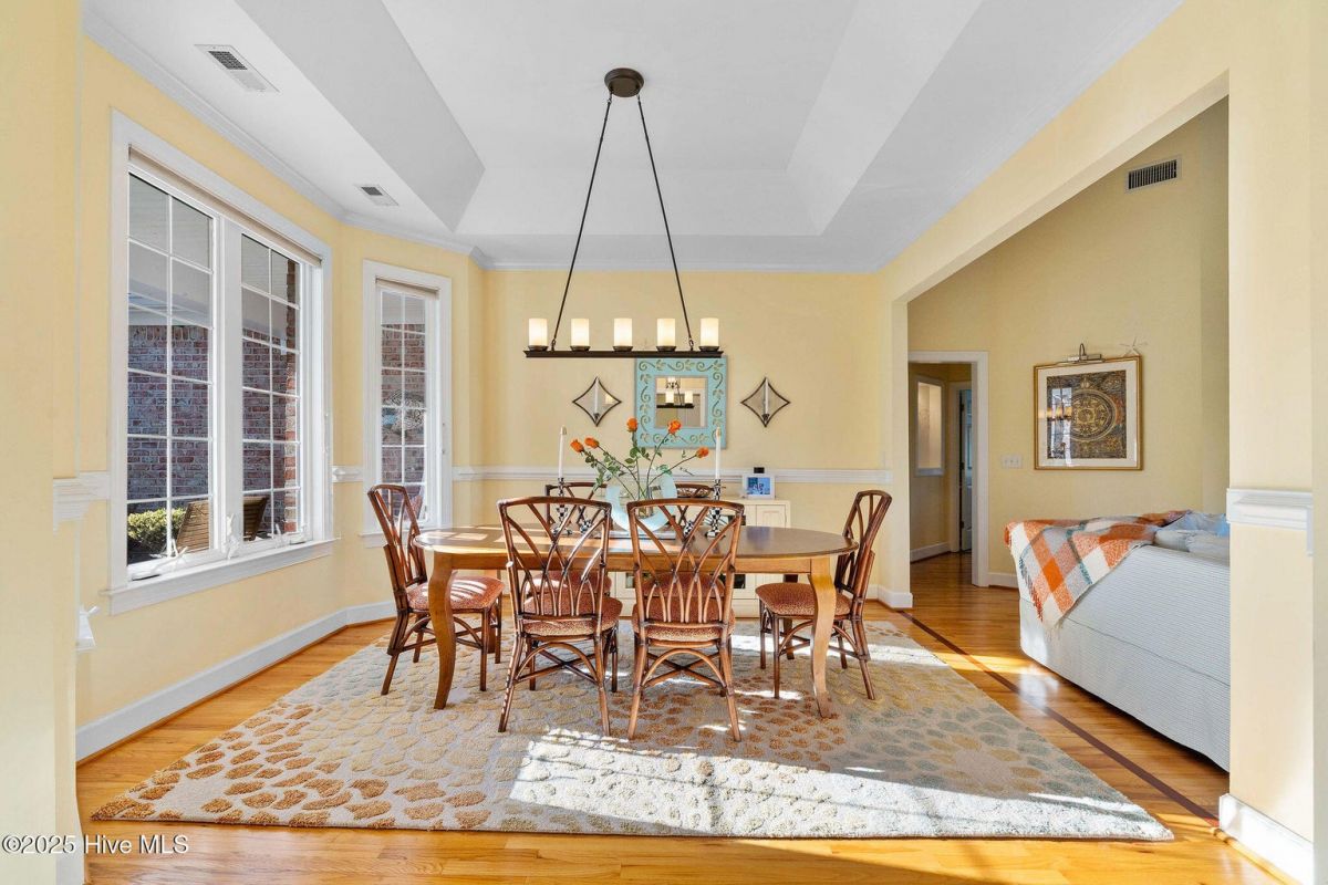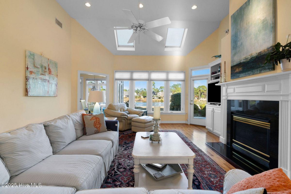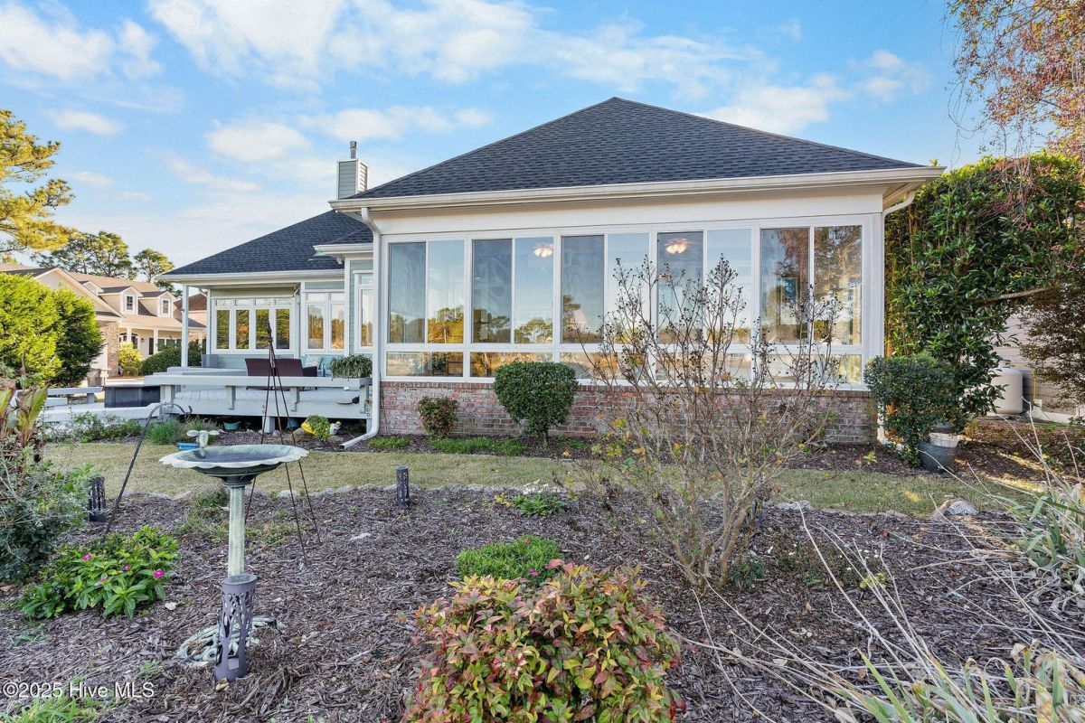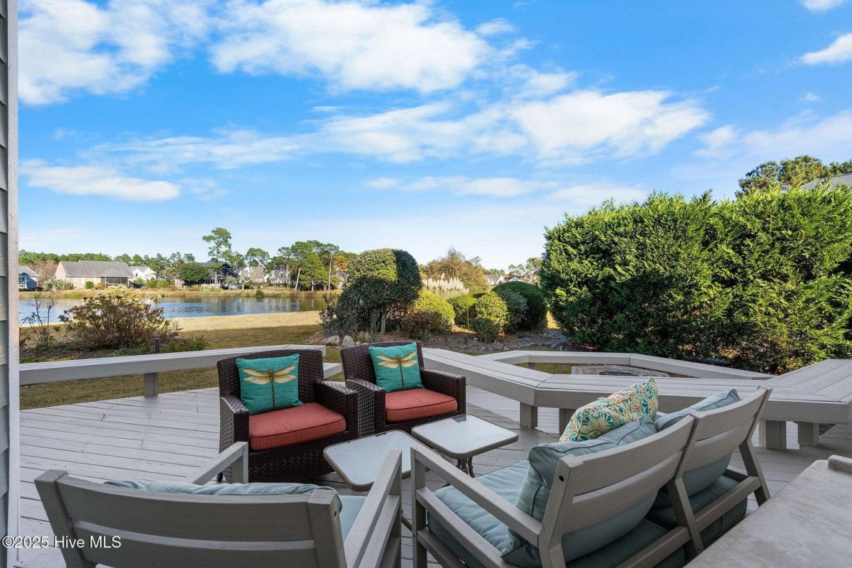 Welcome to this beautifully maintained home in the heart of St. James Plantation, offering long, tranquil pond views, abundant natural light, and an impressive indoor/outdoor lifestyle. Thoughtfully designed and recently refreshed, this residence blends timeless coastal charm with modern comfort and quality craftsmanship. Positioned at the end of a quiet street, the setting provides added privacy. Impeccably maintained updates include new roof, gutters and gutter guards (2020), sealed crawlspace with dehumidifier (2022), full exterior painting (2022), new garage door motor, and refreshed carpeting. An inviting rocking chair front porch welcomes you inside to a bright living area where vaulted ceilings, real three-quarter inch hardwood flooring, skylights, and custom built-ins frame the fireplace. The adjacent dining room features a tray ceiling and large windows overlooking the manicured front landscaping. Beautiful oak flooring runs through the main living areas, adding both warmth and durability. The kitchen includes stainless steel appliances, a pantry, abundant cabinetry, desk area, and a breakfast nook surrounded by windows capturing the water views. From there, step into the heated and cooled sunroom one of the home's most impressive features offering panoramic pond views, distant golf glimpses, and daily wildlife activity in a serene year-round setting. The primary suite is privately positioned and includes an impressive, vaulted ceiling, cedar-lined storage area, and well-designed closet including built-in jewelry organization. The beautifully renovated bathroom includes a coastal barn door entrance, tiled walk-in shower with a long bench, and dual vanities with quartz tops. Two main level guest bedrooms sit on the opposite side of the home. The rear guest bedroom is a large 11X16 ft. room and boasts beautiful water views. The other guest room is equally impressive standing at 13X13 ft. and overlooks the front yard. These bedrooms share an attractive renovated guest bathroom accessed by a sleek barn door with a tiled surround shower/tub and new vanity. Upstairs, the large bonus room works perfectly as a fourth bedroom, guest suite, office, or hobby space. It includes new carpet, a mini-split heated/cooling system for efficient comfort, its own full bathroom, and excellent walk-in attic storage. Outdoor living shines with the freshly painted deck offering multiple seating areas overlooking calm pond views for relaxing, entertaining, or enjoying coastal Carolina sunsets. Located within the gated resort-style community of St. James Plantation, residents enjoy access to multiple pools, golf courses, restaurants, marinas, walking trails, parks, and the private oceanfront beach club on Oak Island. This home offers the perfect combination of comfort, privacy, water views, and the exceptional coastal lifestyle St. James is known for.