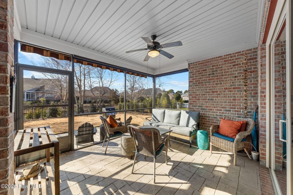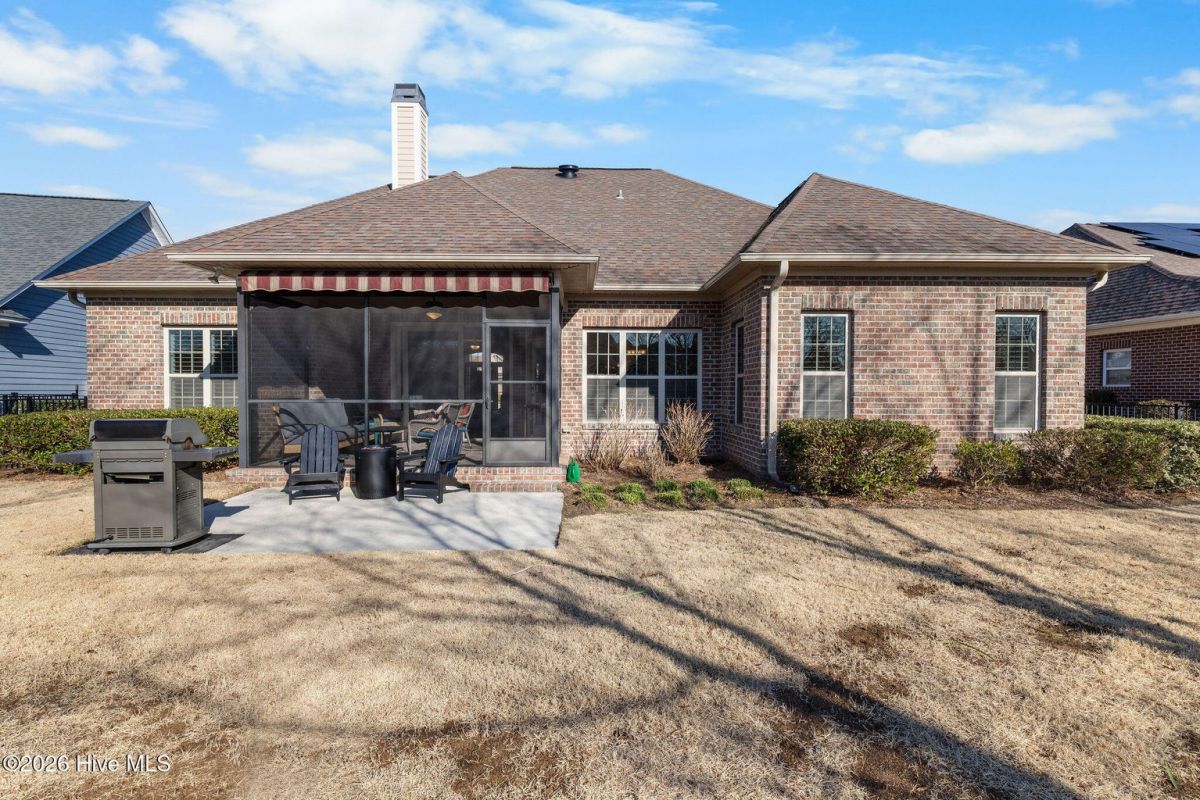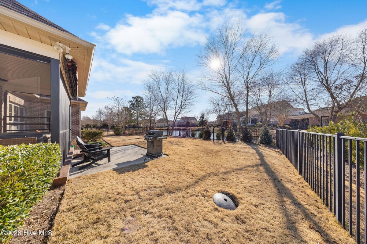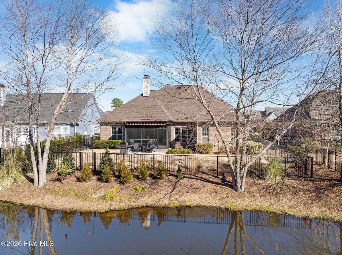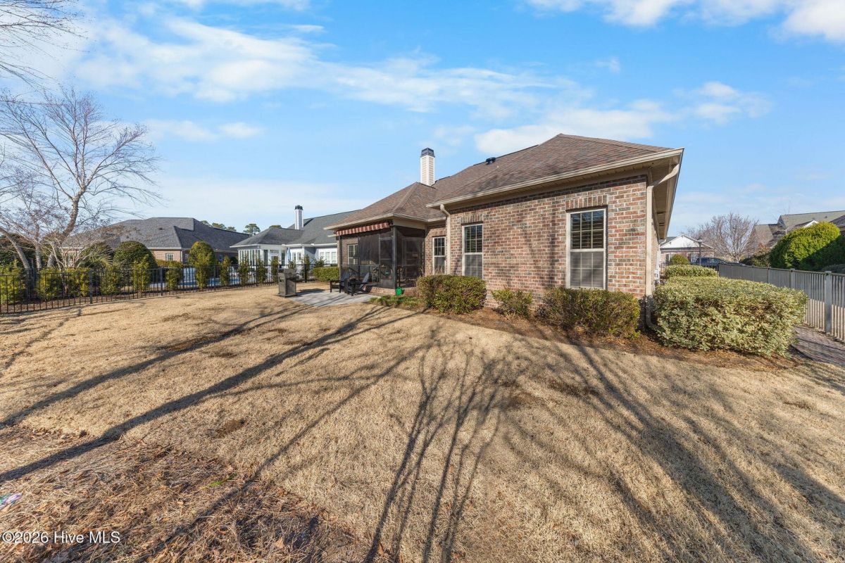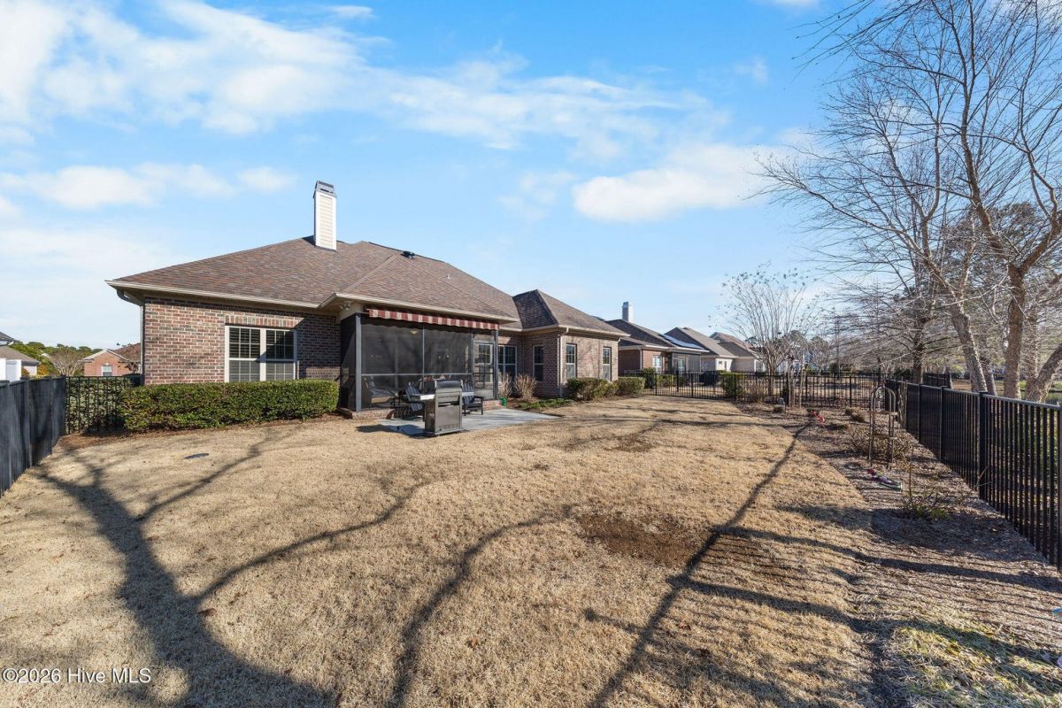 This all-brick home built in 2018 is in the highly desirable Regency Lakes neighborhood of St. James Plantation where yard maintenance is included. The setting is exceptional, overlooking a peaceful pond with a fenced backyard that allows you to enjoy both privacy and open water views. The outdoor living spaces are a highlight, with a screened porch featuring sunshades and a stamped concrete patio with motorized awning that extend the living area beyond the interior. Enjoying the mild Carolina weather and relaxed coastal feel is a breeze with long water views and a peaceful atmosphere. The welcoming front porch invites you into an open, easy living one story floor plan with durable engineered hardwood floors greeting you from the entrance that flow throughout the main living areas. As you enter to the left a formal dining room is the perfect space for entertaining family/friends, while the great room opens with a vaulted ceiling, crown molding, and the cozy fireplace is flanked by custom built-in cabinetry on either side. The room feels bright and connected to the outdoors, with natural light pulling your attention toward the backyard and pond. The kitchen has been designed with both function and detail in mind. It offers extensive soft close cabinetry, granite countertops, upgraded tile backsplash, under-cabinet lighting, and pull-out storage features. A gas cooktop, Bosch dishwasher, and properly vented hood complete the space, while the large pantry and generous counter area make it practical for daily use and entertaining alike. The breakfast area sits just off the kitchen and looks out over the backyard and pond beyond. The split bedroom floorplan offers privacy from guests with the primary bedroom located on one side of the home and guest bedrooms on the other. The primary suite is set up for comfort, featuring a tray ceiling with crown molding detail and two walk-in closets with wood shelving. The upscale bathroom offers a zero-entry tiled shower, comforting soaking tub, dual vanities with square sinks, framed mirrors, and a pocket door that adds separation and usability. The guest bedrooms are both spacious and sized with ample closet space and the front bedroom works well for an office or den. These rooms share a full bathroom with a granite top vanity and walk-in tiled shower surround. The laundry room has a sink, newer washer/dryer, and cabinet storage. Take the stairs up to the bonus room featuring hardwood flooring, a full bathroom, and a large closet, making it ideal for a hobby room, flex space, or additional guest quarters. Storage space is incredible! There is a walk-in attic, plenty of closets, and best of all a dedicated 9ft. by 7ft. closet in the garage for all sorts of gear and holiday storage. Additional features include plantation shutters, upgraded ceiling fans, the garage floor is finished with epoxy flooring and workbench area. The home also includes a whole house surge protector, radiant roof barrier for a cooler attic, zoned HVAC, and a whole house generator tied to a 500-gallon propane tank. Regency Lakes is a desirable neighborhood of St. James Plantation, offering a clean, maintained look with included yard care and access to the full range of community amenities and the convenience of an entry/exit just minutes away. If you are looking for a younger well-maintained home in St. James Plantation you have found it!