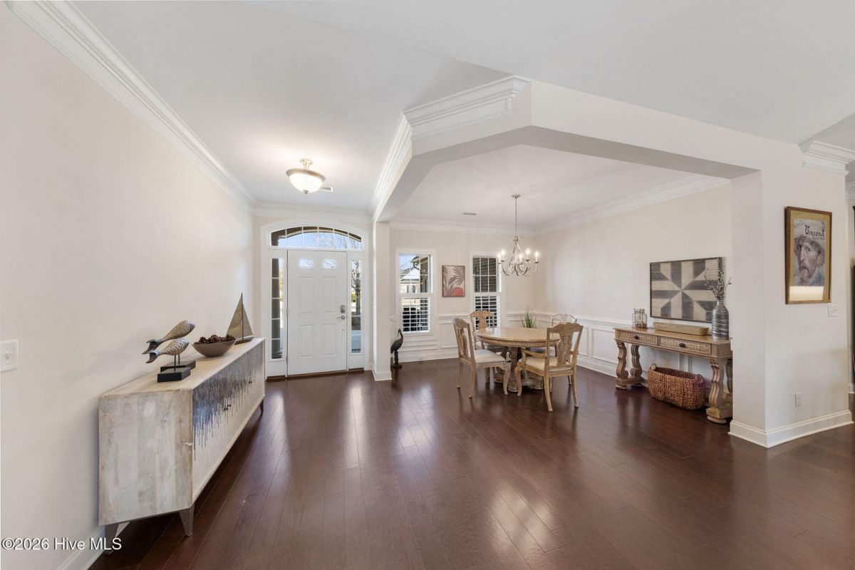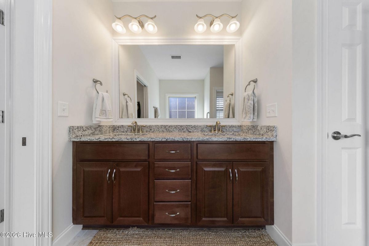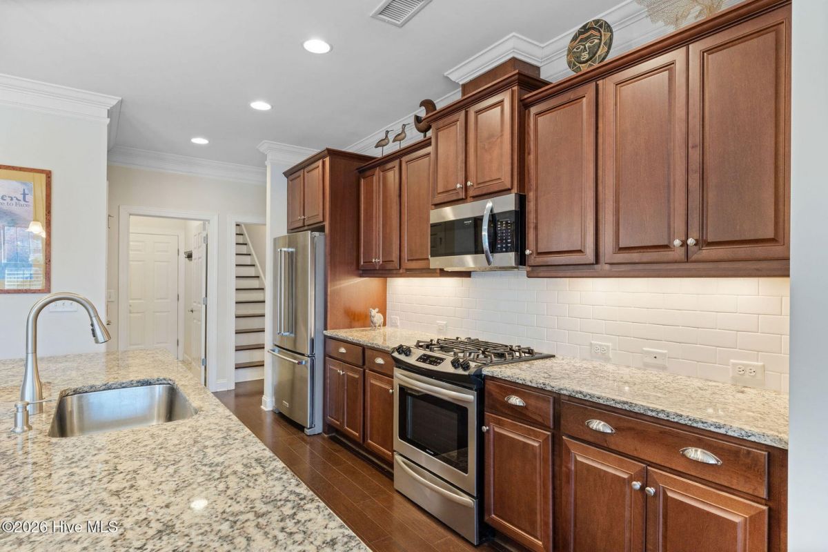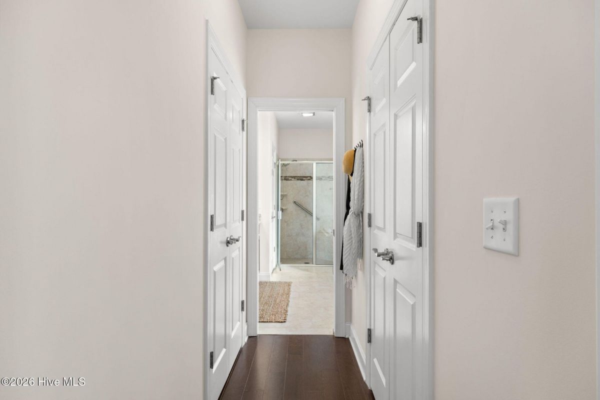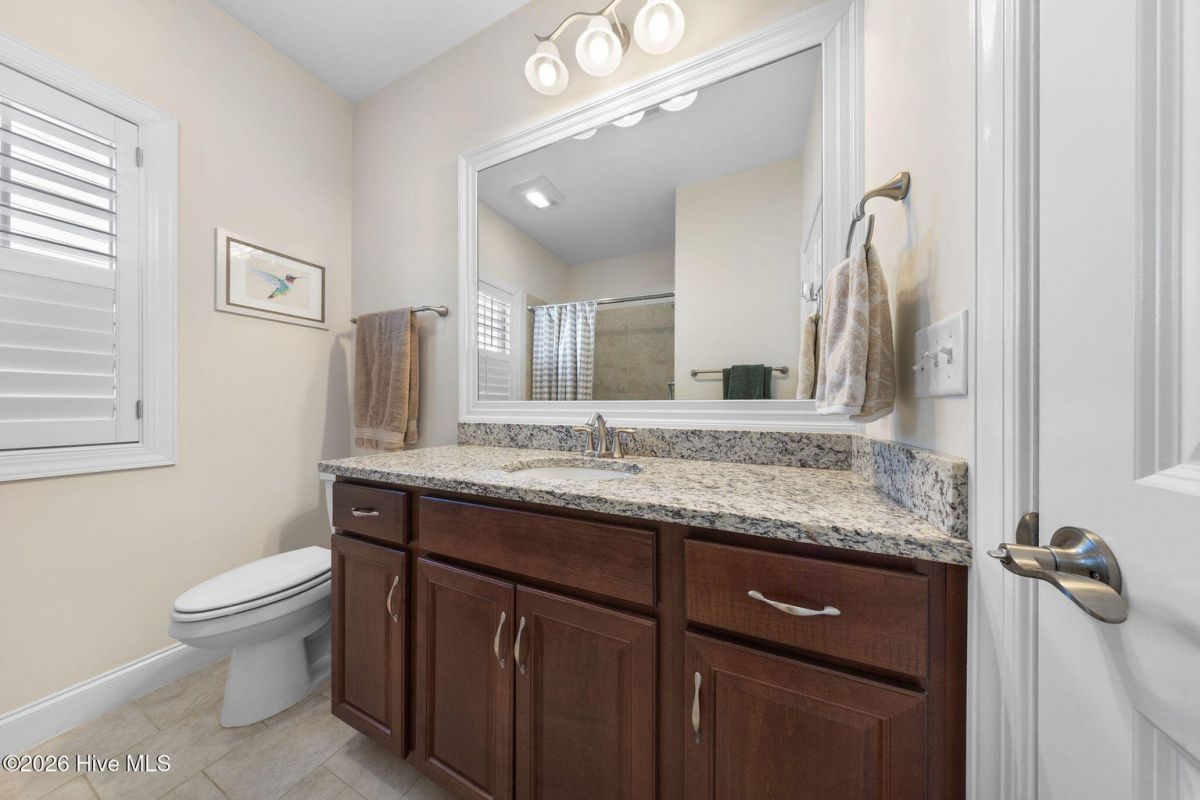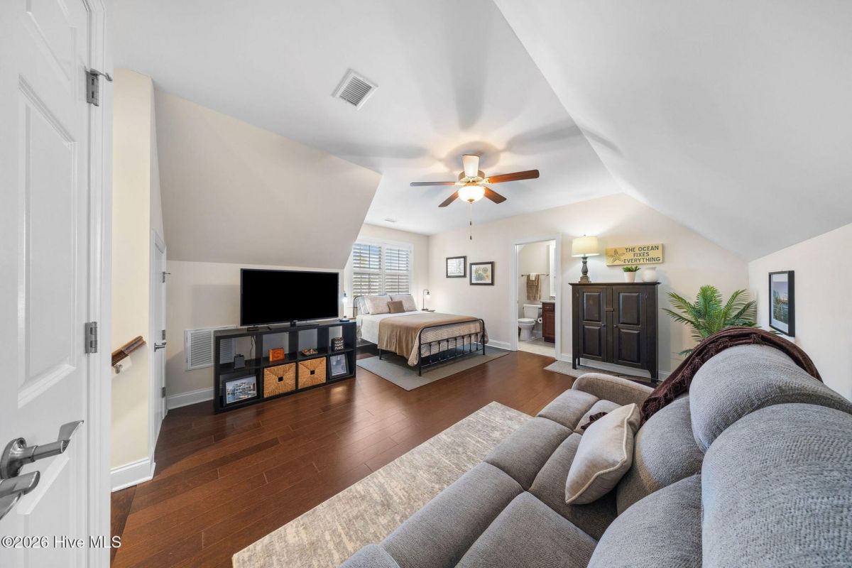 This all-brick home built in 2018 is in the highly desirable Regency Lakes neighborhood of St. James Plantation where yard maintenance is included. The setting is exceptional, overlooking a peaceful pond with a fenced backyard that allows you to enjoy both privacy and open water views. The outdoor living spaces are a highlight, with a screened porch featuring sunshades and a stamped concrete patio with motorized awning that extend the living area beyond the interior. Enjoying the mild Carolina weather and relaxed coastal feel is a breeze with long water views and a peaceful atmosphere. The welcoming front porch invites you into an open, easy living one story floor plan with durable engineered hardwood floors greeting you from the entrance that flow throughout the main living areas. As you enter to the left a formal dining room is the perfect space for entertaining family/friends, while the great room opens with a vaulted ceiling, crown molding, and the cozy fireplace is flanked by custom built-in cabinetry on either side. The room feels bright and connected to the outdoors, with natural light pulling your attention toward the backyard and pond. The kitchen has been designed with both function and detail in mind. It offers extensive soft close cabinetry, granite countertops, upgraded tile backsplash, under-cabinet lighting, and pull-out storage features. A gas cooktop, Bosch dishwasher, and properly vented hood complete the space, while the large pantry and generous counter area make it practical for daily use and entertaining alike. The breakfast area sits just off the kitchen and looks out over the backyard and pond beyond. The split bedroom floorplan offers privacy from guests with the primary bedroom located on one side of the home and guest bedrooms on the other. The primary suite is set up for comfort, featuring a tray ceiling with crown molding detail and two walk-in closets with wood shelving. The upscale bathroom offers a zero-entry tiled shower, comforting soaking tub, dual vanities with square sinks, framed mirrors, and a pocket door that adds separation and usability. The guest bedrooms are both spacious and sized with ample closet space and the front bedroom works well for an office or den. These rooms share a full bathroom with a granite top vanity and walk-in tiled shower surround. The laundry room has a sink, newer washer/dryer, and cabinet storage. Take the stairs up to the bonus room featuring hardwood flooring, a full bathroom, and a large closet, making it ideal for a hobby room, flex space, or additional guest quarters. Storage space is incredible! There is a walk-in attic, plenty of closets, and best of all a dedicated 9ft. by 7ft. closet in the garage for all sorts of gear and holiday storage. Additional features include plantation shutters, upgraded ceiling fans, the garage floor is finished with epoxy flooring and workbench area. The home also includes a whole house surge protector, radiant roof barrier for a cooler attic, zoned HVAC, and a whole house generator tied to a 500-gallon propane tank. Regency Lakes is a desirable neighborhood of St. James Plantation, offering a clean, maintained look with included yard care and access to the full range of community amenities and the convenience of an entry/exit just minutes away. If you are looking for a younger well-maintained home in St. James Plantation you have found it!