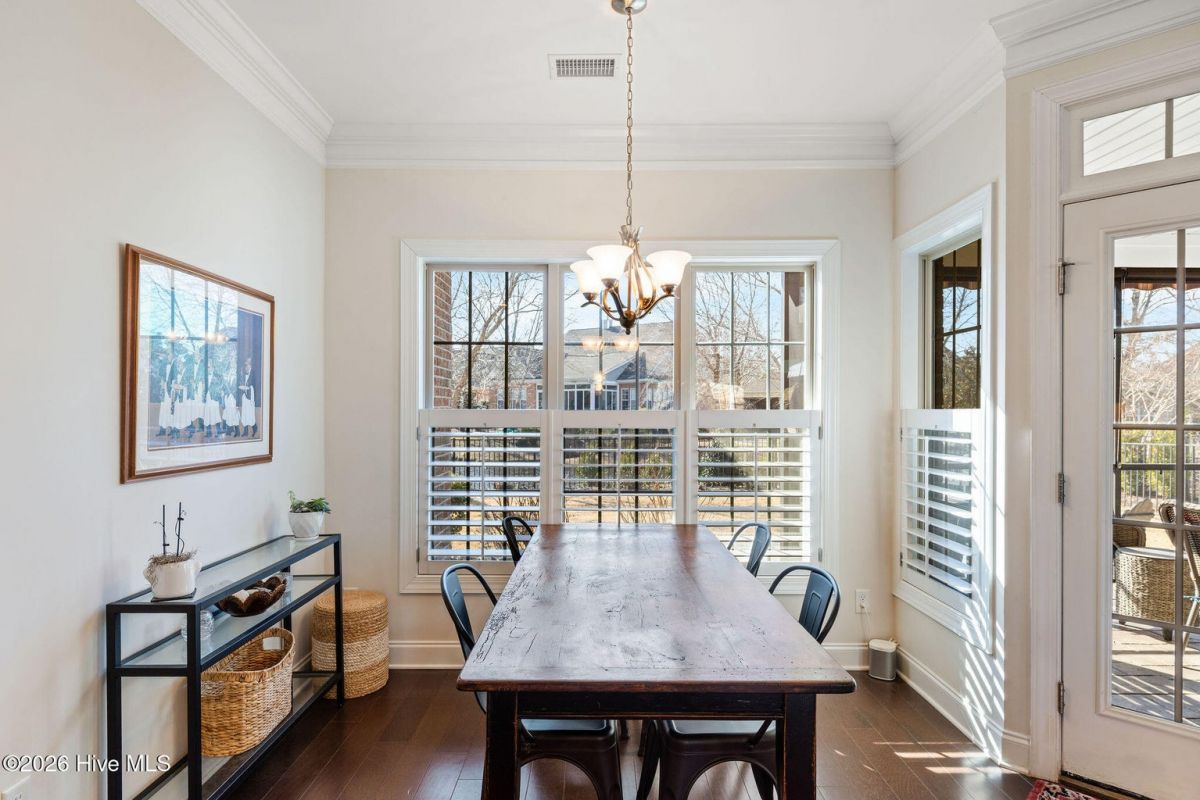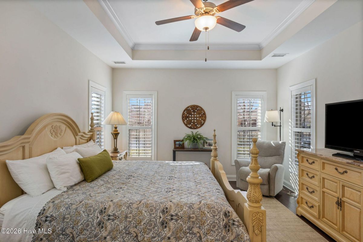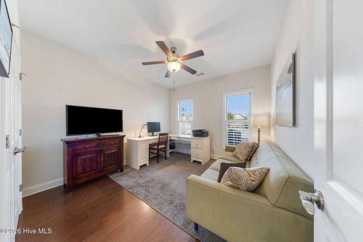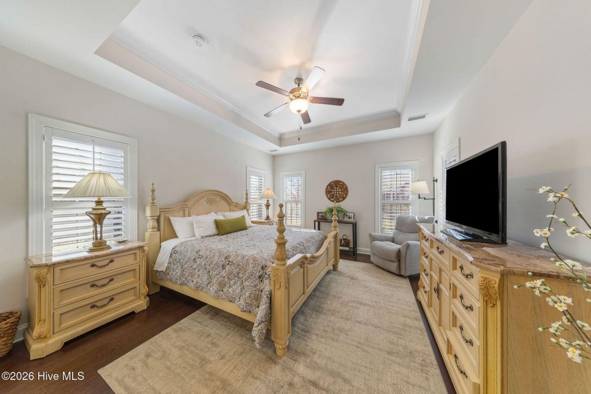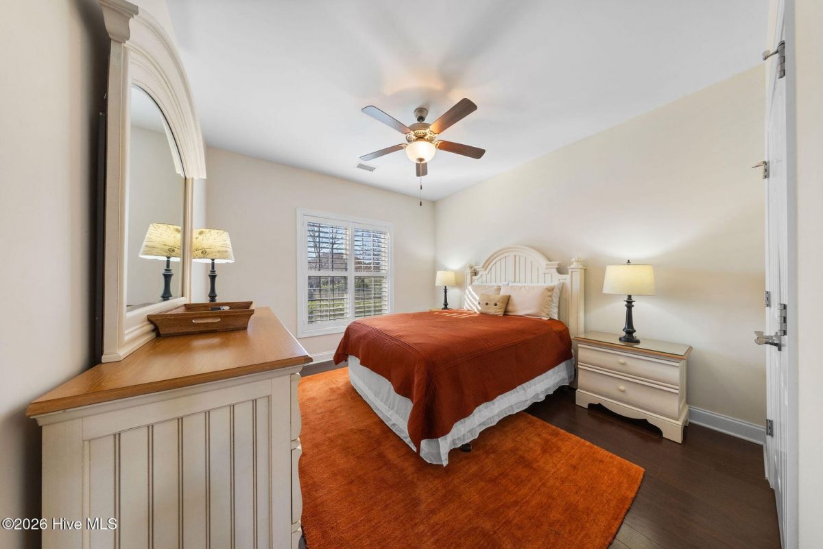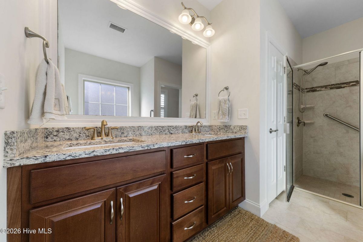 This all-brick home built in 2018 is in the highly desirable Regency Lakes neighborhood of St. James Plantation where yard maintenance is included. The setting is exceptional, overlooking a peaceful pond with a fenced backyard that allows you to enjoy both privacy and open water views. The outdoor living spaces are a highlight, with a screened porch featuring sunshades and a stamped concrete patio with motorized awning that extend the living area beyond the interior. Enjoying the mild Carolina weather and relaxed coastal feel is a breeze with long water views and a peaceful atmosphere. The welcoming front porch invites you into an open, easy living one story floor plan with durable engineered hardwood floors greeting you from the entrance that flow throughout the main living areas. As you enter to the left a formal dining room is the perfect space for entertaining family/friends, while the great room opens with a vaulted ceiling, crown molding, and the cozy fireplace is flanked by custom built-in cabinetry on either side. The room feels bright and connected to the outdoors, with natural light pulling your attention toward the backyard and pond. The kitchen has been designed with both function and detail in mind. It offers extensive soft close cabinetry, granite countertops, upgraded tile backsplash, under-cabinet lighting, and pull-out storage features. A gas cooktop, Bosch dishwasher, and properly vented hood complete the space, while the large pantry and generous counter area make it practical for daily use and entertaining alike. The breakfast area sits just off the kitchen and looks out over the backyard and pond beyond. The split bedroom floorplan offers privacy from guests with the primary bedroom located on one side of the home and guest bedrooms on the other. The primary suite is set up for comfort, featuring a tray ceiling with crown molding detail and two walk-in closets with wood shelving. The upscale bathroom offers a zero-entry tiled shower, comforting soaking tub, dual vanities with square sinks, framed mirrors, and a pocket door that adds separation and usability. The guest bedrooms are both spacious and sized with ample closet space and the front bedroom works well for an office or den. These rooms share a full bathroom with a granite top vanity and walk-in tiled shower surround. The laundry room has a sink, newer washer/dryer, and cabinet storage. Take the stairs up to the bonus room featuring hardwood flooring, a full bathroom, and a large closet, making it ideal for a hobby room, flex space, or additional guest quarters. Storage space is incredible! There is a walk-in attic, plenty of closets, and best of all a dedicated 9ft. by 7ft. closet in the garage for all sorts of gear and holiday storage. Additional features include plantation shutters, upgraded ceiling fans, the garage floor is finished with epoxy flooring and workbench area. The home also includes a whole house surge protector, radiant roof barrier for a cooler attic, zoned HVAC, and a whole house generator tied to a 500-gallon propane tank. Regency Lakes is a desirable neighborhood of St. James Plantation, offering a clean, maintained look with included yard care and access to the full range of community amenities and the convenience of an entry/exit just minutes away. If you are looking for a younger well-maintained home in St. James Plantation you have found it!