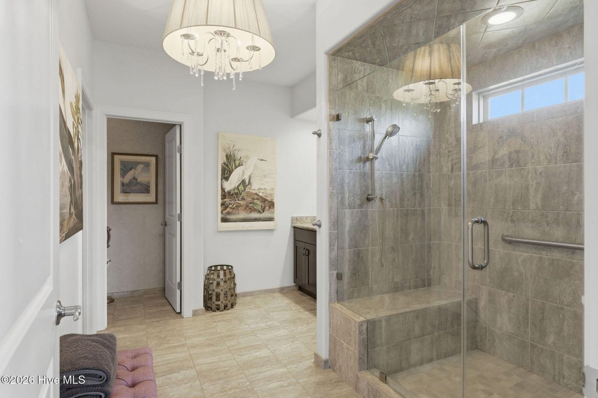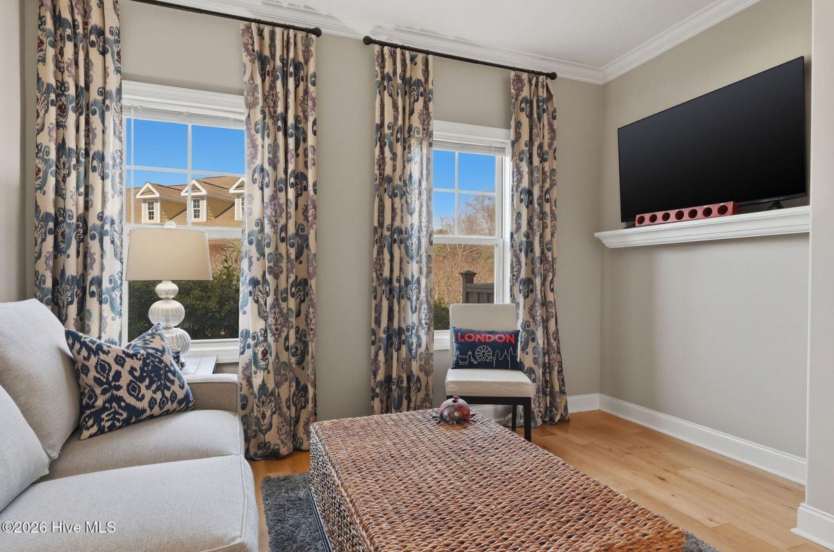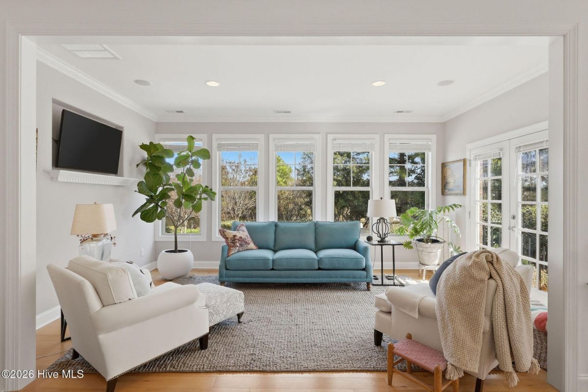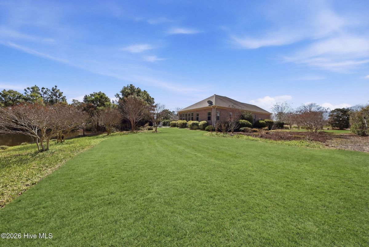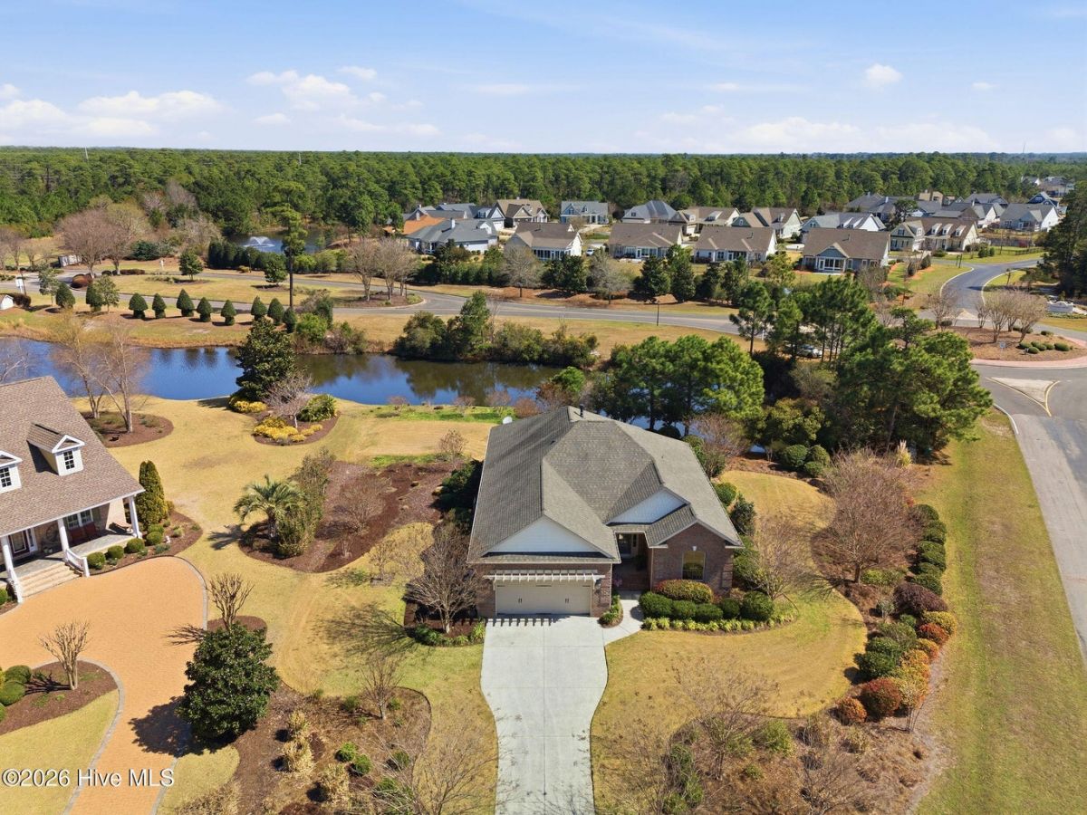 This all-brick home built in 2017 enjoys expansive pond views and is ideally located in the highly desirable Regency neighborhood of the Players Club in St. James Plantation! The convenient location offers easy access in and out of the community through the Regency Gate entry/exit, 5 minutes to the 18 hole Players Club Golf course and the Mangiare restaurant, and a short walk to the Players amenity Center offering a fitness center, outdoor pool, tennis courts, croquet, and pitch & putt. This home is positioned on a premium corner homesite with lush zoysia grass, and thoughtful landscaping creating privacy in the delightful backyard setting. As you enter this easy living one story open floor plan the home is filled with natural light and designed for comfortable everyday living and family/friend gatherings. The inviting foyer features a lit tray ceiling leading to the impressive great room, showcasing a coffered ceiling, stone and shiplap fireplace surround, integrated speakers that extend into the sunroom, and durable engineered hardwood floors run through the main living areas. The sunroom, truly a standout feature, offers panoramic water views along with a custom niche for a mounted television perfect for relaxing or enjoying a morning cup of coffee. Take in the mild Carolina weather from the secluded outdoor patio. The well-appointed kitchen offers KitchenAid appliances, soft-close cabinetry, an attractive tile backsplash and a layout that flows seamlessly into the main living and dining areas. A tray ceiling adds architectural detail to the dining space, enhancing the open feel. The spacious primary suite features an elegant lit tray ceiling, pond views, and a beautifully designed closet that you can directly access from the bathroom or the laundry room. The spa-like bathroom has dual vanities, a tiled walk-in shower, built-in bench, and tile surround throughout. A private guest bedroom is tucked away towards the front of the home with an upgraded guest bath with tiled shower/tub surround provides comfort for visitors. The third bedroom is the perfect place for additional guests or, as pictured, a cozy den/study. Additional features include pull down attic storage, crown moulding, upgraded lighting fixtures, and an epoxy-coated garage floor. If you are searching for a great location, a thoughtful one-story living open floor plan, and well-built beautifully maintained home in St. James Plantation you have found it.