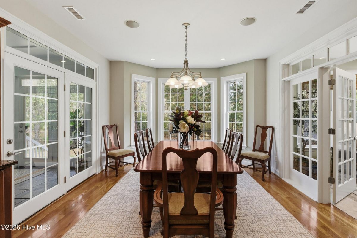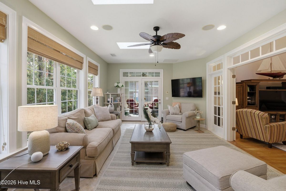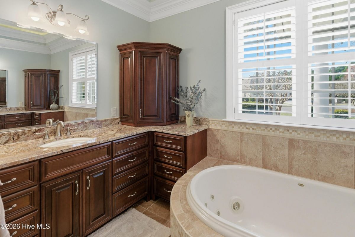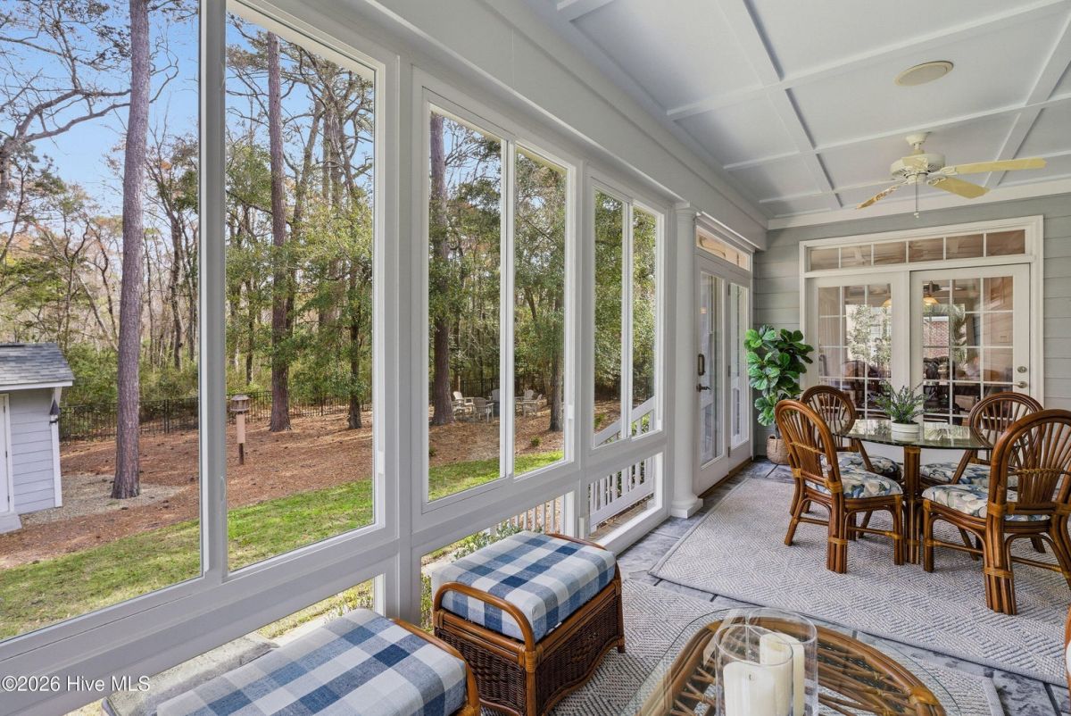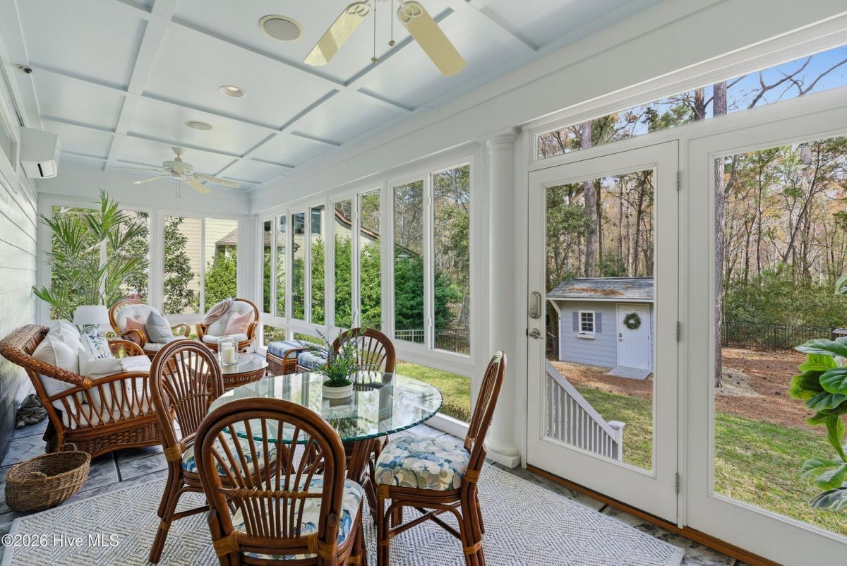 Discover refined, resort-inspired living in St. James Plantation, Southport NC, where every detail is chosen for comfort, ease, and gracious entertaining. This 5-bedroom, 5-bath home spans about 4,600 square feet and sits on a wooded lot with a private backyard and shed, offering tranquility just moments from the coast and the amenities that define this exceptional community. As you enter, you'll feel the effortless flow that makes daily life a pleasure and hosting a delight. The open floor plan centers on a generous great room and two sunlit Carolina rooms, with a dedicated library/office to accommodate quiet work or reading in style. Elegant hardwood floors run throughout, guiding you through spaces that blend timeless charm with modern practicality. The chef's kitchen is a true centerpiece, designed for both daily living and effortless entertaining. You'll find abundant counter space and a island with a sink, cherry cabinetry paired with granite countertops, stainless steel appliances including a six-burner Wolf cooktop, built-in Miele coffee station, wine cooler, and icemaker. A Butler's pantry and a breakfast bar that connects to the living areas complete the culinary hub. Two Carolina Rooms and one Sun Room brings in generous natural light, creating ideal spots for morning coffee, yoga, or winding down with a glass of wine as the day ends. Your primary suite is a true sanctuary that includes its own Carolina Room for private relaxation, a trey ceiling and transom windows that add architectural depth, and a spacious bath with a generous shower and a Jacuzzi tub. Hardwood floors preserve the warm, cohesive feel throughout. Upstairs, the layout continues to impress with a guest suite plus two additional bedrooms sharing a Jack-and-Jill bath, and a versatile bonus room with a full bath, perfect for guests, a media or hobby space. Thoughtful practicalities include a large laundry room with built-in storage, an oversized three-car garage, generator, and a Rinnai hot water heater for reliable comfort. The wooded lot offers a private backyard and a shed for extra storage or projects. Location and lifestyle advantages you'll appreciate: proximity to The Founders Club for golf, social events, and club amenities; nearby Waterway Park for peaceful walks, picnics, and outdoor enjoyment; and a marina nearby offering easy access to boating and waterfront leisure. This home blends luxury and livability in a quiet, private setting while keeping you connected to the refined vibrancy of St. James Plantation. With 5 bedrooms and 5 baths, plus two Carolina rooms, a library/office, and ample entertaining spaces, you have flexible options for work, hosting guests, and savoring downtime.