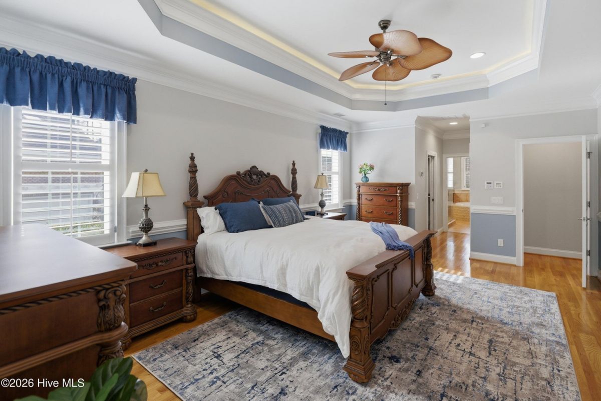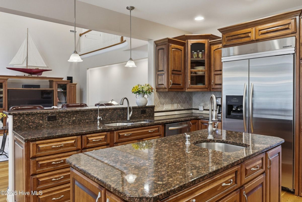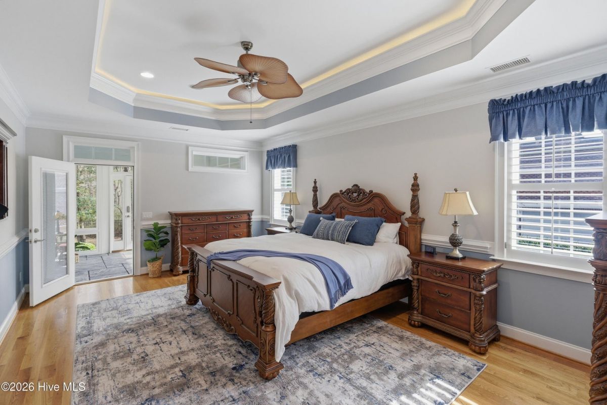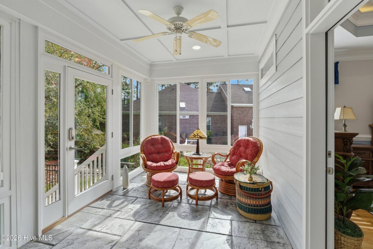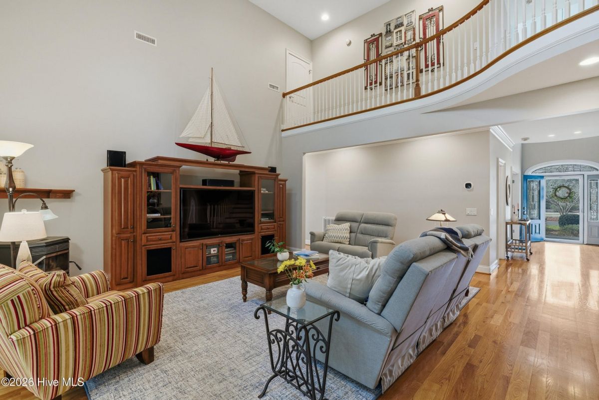 Discover refined, resort-inspired living in St. James Plantation, Southport NC, where every detail is chosen for comfort, ease, and gracious entertaining. This 5-bedroom, 5-bath home spans about 4,600 square feet and sits on a wooded lot with a private backyard and shed, offering tranquility just moments from the coast and the amenities that define this exceptional community. As you enter, you'll feel the effortless flow that makes daily life a pleasure and hosting a delight. The open floor plan centers on a generous great room and two sunlit Carolina rooms, with a dedicated library/office to accommodate quiet work or reading in style. Elegant hardwood floors run throughout, guiding you through spaces that blend timeless charm with modern practicality. The chef's kitchen is a true centerpiece, designed for both daily living and effortless entertaining. You'll find abundant counter space and a island with a sink, cherry cabinetry paired with granite countertops, stainless steel appliances including a six-burner Wolf cooktop, built-in Miele coffee station, wine cooler, and icemaker. A Butler's pantry and a breakfast bar that connects to the living areas complete the culinary hub. Two Carolina Rooms and one Sun Room brings in generous natural light, creating ideal spots for morning coffee, yoga, or winding down with a glass of wine as the day ends. Your primary suite is a true sanctuary that includes its own Carolina Room for private relaxation, a trey ceiling and transom windows that add architectural depth, and a spacious bath with a generous shower and a Jacuzzi tub. Hardwood floors preserve the warm, cohesive feel throughout. Upstairs, the layout continues to impress with a guest suite plus two additional bedrooms sharing a Jack-and-Jill bath, and a versatile bonus room with a full bath, perfect for guests, a media or hobby space. Thoughtful practicalities include a large laundry room with built-in storage, an oversized three-car garage, generator, and a Rinnai hot water heater for reliable comfort. The wooded lot offers a private backyard and a shed for extra storage or projects. Location and lifestyle advantages you'll appreciate: proximity to The Founders Club for golf, social events, and club amenities; nearby Waterway Park for peaceful walks, picnics, and outdoor enjoyment; and a marina nearby offering easy access to boating and waterfront leisure. This home blends luxury and livability in a quiet, private setting while keeping you connected to the refined vibrancy of St. James Plantation. With 5 bedrooms and 5 baths, plus two Carolina rooms, a library/office, and ample entertaining spaces, you have flexible options for work, hosting guests, and savoring downtime.