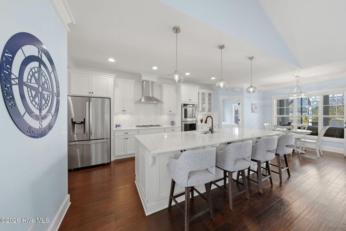 Tranquil pond views, luxurious upgrades, and quality construction are just the beginning of the offerings of this Craftsman style home located just inside the Regency Gate in the Cottages at Regency Lakes neighborhood of St. James Plantation. This 3 bedroom, 3 full bathroom, 2,464 sqft is the perfect blend of extravagance and ease. A courtyard style garage and dormer windows with metal roofing offer extra charm to the front facade. Relax on the covered rocking chair front porch before entering into the home which showcases modern features, upgraded lighting and calming coastal colors. It is hard to ignore the dazzling view of the cascading fountain in the rear pond as you are led into the home along the durable engineered hardwood flooring. The living room showcases a vaulted ceiling, ceiling fan and propane fireplace surrounded by built-in shelving. High ceilings, crown molding and wainscoting grace the formal dining room and the open kitchen with white cabinets, subway tile backsplash and lightly veined white quartz countertops is a chef's dream! Additional glass front white cabinets give opportunity for a coffee bar, dry bar or display area for glassware, dishes or decor. The Viking 6 burner propane cooktop, stainless-steel range hood and stainless steel appliances including Kitchen Aid Cafe double wall ovens, LG refrigerator, Bosch dishwasher and built-in drawer microwave are equal parts fabulous and functional. The 11' kitchen island with extra seat-side storage spaces, deep single sink & disposal provide the perfect spot for culinary creations or for friends & family to gather all illuminated by blown glass pendant lights. A cozy breakfast nook is perfect for casual meals and 2 pantry spaces give even more room for food, small kitchen appliances & cleaning supplies. The Carolina Room/porch is outfitted with a mini split allowing year round usage. It is the perfect setting for morning coffee, happy hour beverages or reading your favorite beach book all while listening to the babble of the pond fountain. The primary bedroom has double entry doors, trey ceiling, Minka Air ceiling fan, two clothes closets & a linen closet all featuring wood shelving, as well as an ensuite bathroom with zero entry tiled shower with glass door, dual sinks, private toilet room and large soaking tub. Two additional bedrooms give plenty of space for guests or a home office. A tiled full hall bathroom with tiled tub/shower service the additional bedrooms. An additional linen closet and laundry room with LG washer, LG gas dryer, laundry sink, quartz countertop & storage cabinets round out the main floor. Travel upstairs via the updated wooden stairs to the bonus space/FROG with new LVP flooring with extra padding. This space is perfect for a 4th bedroom, game room, craft/hobby room or fitness space. The tiled full bathroom is complete with single sink vanity, shower with glass door and storage shelves. A bonus room closet aids with storage as does a walk-in attic door which leads to the new Trane split heat pump 4 ton 16 seer rating HVAC system (2025) with Trane Air Effect whole home electronic air purifier (no more filters!) and added built in wooden shelving for holiday boxes. Outside you'll discover garden beds with thoughtful landscaping and irrigation and a rear patio with pergola and paver patio to the outdoor shower as well as the aforementioned exceptional pond front views. The extended, 2-car garage has a slip resistant polyaspartic garage floor and lower wall (4x better than epoxy!) by Hello Garage, Double tankless hot water heater for continuous hot water, whole house reverse osmosis water filtration system and additional storage. If you are looking for a zen-like retreat of St James you have found it!