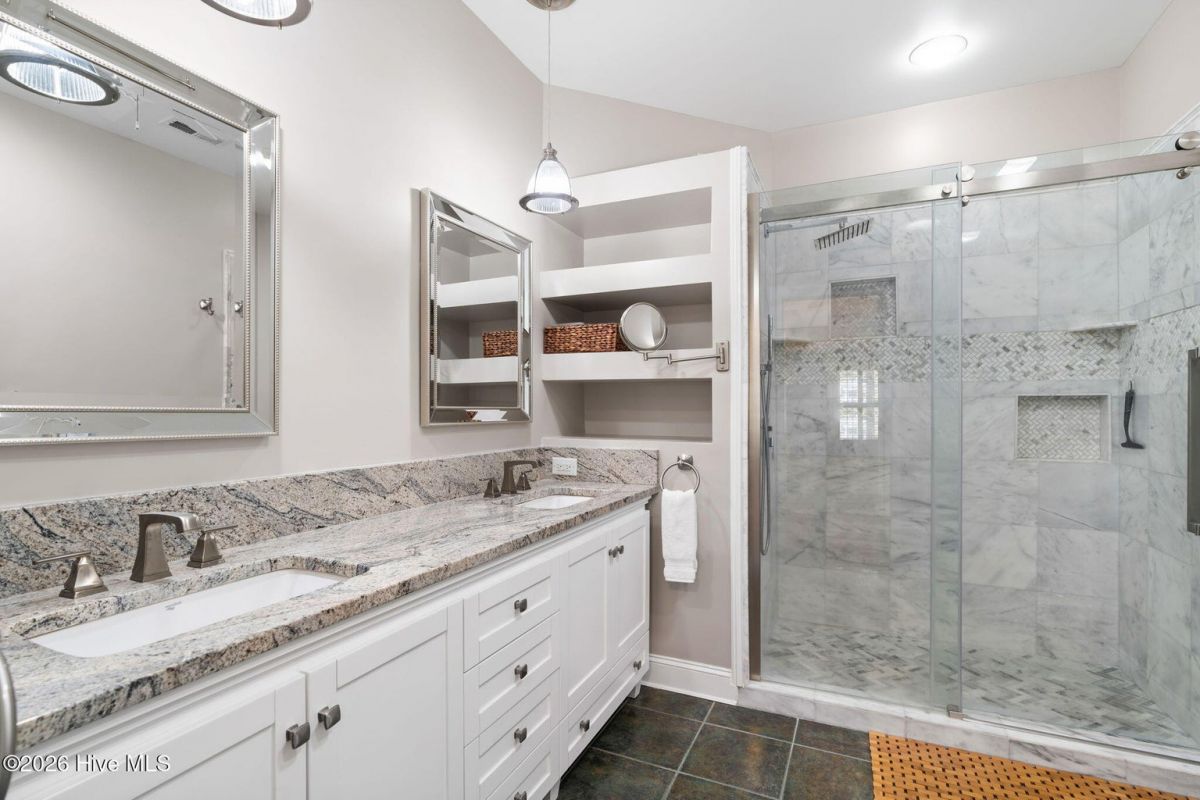 How would you like to unwind, relax, and create memories while overlooking the golf course? Sipping on your favorite drink, laughing, reading a book, doing what ever it is that makes you happy while enjoying life? This is all possible if you continue reading on. Welcome to 4379 Gauntlet Drive, a meticulously updated single-story residence overlooking the 11th hole of the Founders Club Golf Course. This home features three bedrooms, two baths, and an inviting landscaped yard on the golf course. As you enter your new home, you're greeted by a bright foyer adorned with luxury vinyl plank flooring and a stunning light. The captivating great room, featuring a cozy gas fireplace and soaring ceiling, is filled with natural light from expansive windows and French doors leading to spectacular golf course views. The contemporary kitchen is a chef's dream. New stainless-steel appliances, and abundant cabinetry. Enjoy meals in the adjoining casual dining area or unwind in the climate-controlled sunroom. The owner's suite provides picturesque views, plantation shutters, and a beautifully updated en suite bathroom featuring a dual sink vanity and a luxurious walk-in shower. Two guest bedrooms share a stylish hall bathroom that reflects the home's allure. A versatile bonus room on the second floor adds extra living space, while a convenient laundry/mudroom with garage access enhances functionality. Outside, the Trex decking creates a low-maintenance haven for relaxation and entertaining. This delightful home seamlessly blends comfort, elegance, and scenic surroundings, making it an extraordinary find in St. James. Are you worried about leaves or pine straw getting in your gutters? No worries with this home, because a leaf blocking system has already been installed. Low maintenance are words best used to describes this home. Make this home your home today!