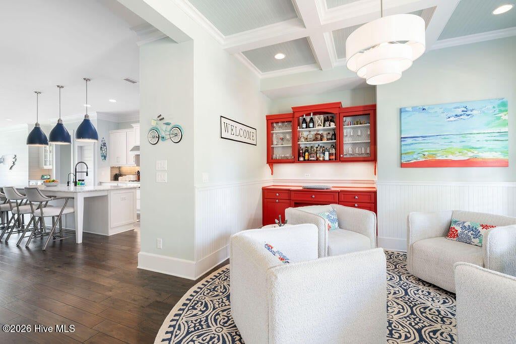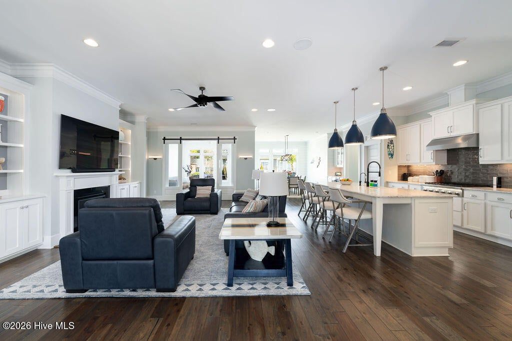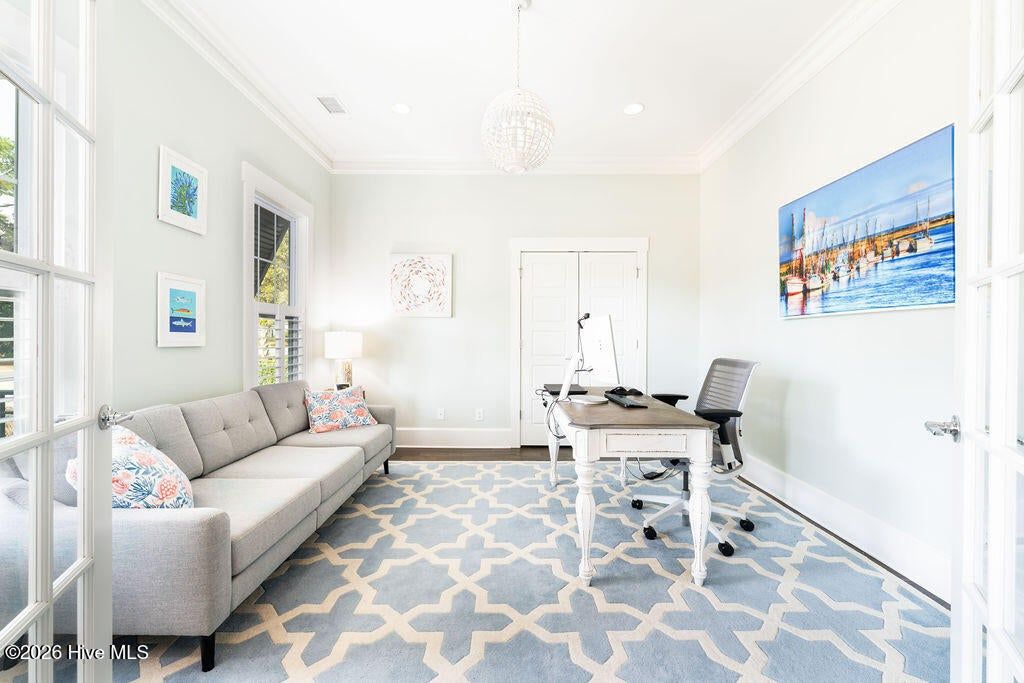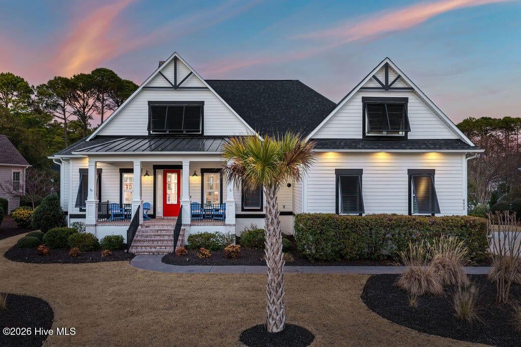Blending classic Southern architecture with a fresh, modern feel, this home offers a level of finish and attention to detail that truly sets it apart. From the inviting rocking chair front porch to the thoughtfully designed interior, the home strikes a perfect balance between charm and sophistication. Inside, you'll find 10-foot ceilings, wide-plank hardwood floors, and detailed millwork throughout, including coffered ceilings, shiplap accents, and custom built-ins. The main living area is warm and inviting, centered around a fireplace with built-in cabinetry and open to a well-appointed kitchen designed for both everyday living and entertaining. Features include a large island with farmhouse sink, Thermador gas cooktop, and a walk-in pantry, This home offers versatile living spaces to suit a variety of needs, including a dedicated office, cocktail or coffee nook, additional sitting room and a spacious bonus room over the garage (currently being used as a bedroom) ideal for guests, hobbies, or a private retreat. Step outside to a fully fenced yard, offering a comfortable and functional outdoor space - perfect for pets or play. The epoxied garage is equipped with a Tesla battery system for current or future hybrid battery needs. Throughout the home, quality craftsmanship is evident in details like tiled showers, custom closet systems, and thoughtfully selected finishes. Located just minutes from the Founders Club, Marina, Intracoastal Waterway, and Waterway Park, this home offers easy access to some of the best amenities St. James has to offer. This is a standout opportunity for buyers who appreciate classic design and flexible living spaces in a home that feels a step above the rest.