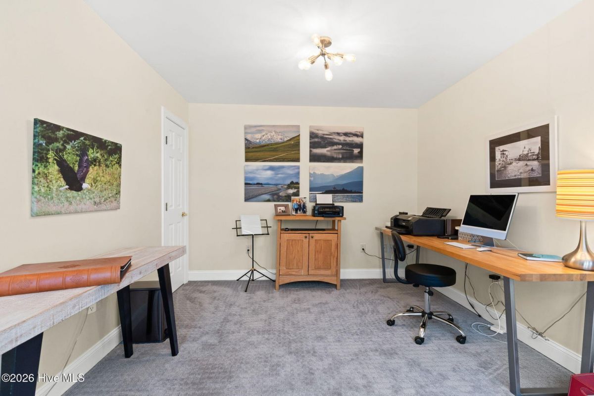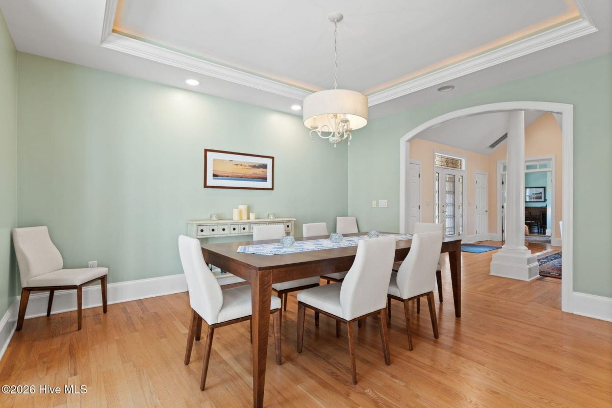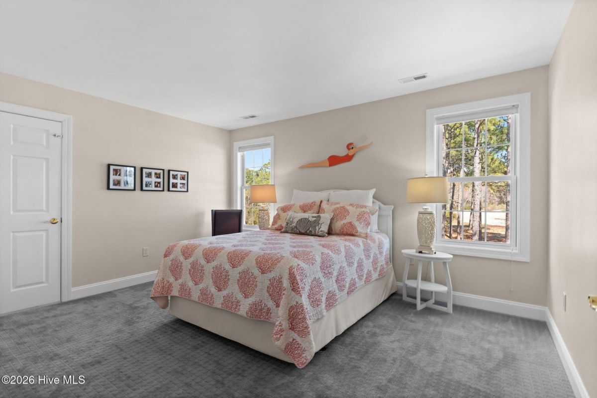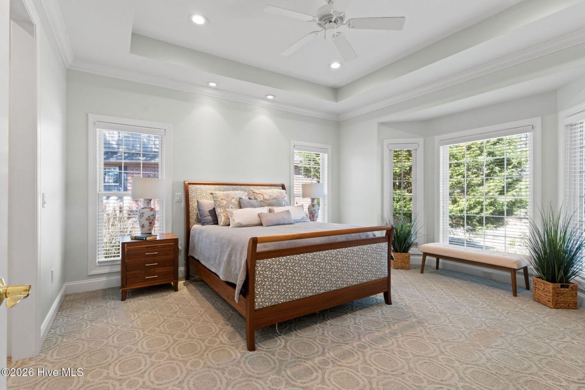 Perfectly poised along the 4th green of The Players Club, this distinguished executive residence captures sweeping, unobstructed golf course views and timeless elegance. Designed for the discerning buyer, the home blends refined craftsmanship with gracious indoor-outdoor living. Upon entry, expansive windows frame breathtaking fairway vistas, flooding the open floor plan with natural light. Soaring ceilings, curated architectural accents, and solid oak hardwood floors defined by a striking double maple inlay create a warm yet sophisticated aesthetic. Living area is anchored by a custom fireplace with inlaid Carrara marble, flanked by bespoke cabinetry. Library offers tranquil garden views filtered through a Japanese maple, while the formal dining room impresses with glass-front custom cabinetry, illuminated shelving, a granite sideboard. The butler's pantry elegantly appointed with granite countertops, glass cabinetry, under-cabinet lighting, and a wine fridge connecting to the chef's kitchen. Kitchen features abundant custom storage, pull-out cabinetry, double ovens, built-in wall oven and microwave, GE Profile silent dishwasher, reverse osmosis system, breakfast nook with built-in window seating overlooking a master gardener-designed English garden. The main-level primary suite is a private sanctuary with a bay window, expansive custom walk-in closet, and a spa-inspired bath adorned with chandelier lighting, leaded glass window, soaking tub, and multi-head walk-in shower. A discreetly enclosed laundry area enhances convenience. Upstairs, flexible living spaces include an office/project room, spacious guest bedroom, and an additional large suite w/ 2 built in bunks, room for seating and an additional king bed. Huge sunroom surrounded by windows and incredible views of the golf course and wooded area. Large deck is perfect for entertaining with hot tub. Garage with new mini split, high ceilings, work bench and room for 2 large cars. Recently reduced. One of the best deals in St James.