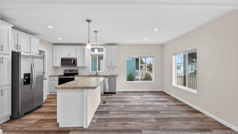Gorgeous 2023 brand-new home has a large front porch to greet you when you come home! This 2023, 3 bedroom and 2 bathroom home features a bright open concept living space with beautiful kitchen with white cabinets and a large kitchen island with storage and room for seating! This spacious kitchen has stainless steel appliances including a dishwasher and built-in microwave and tons of cabinet space. The master bedroom has a nice walk-in closet and a bathroom with a large walk-in shower. Outside the home you have a carport and storage shed. To see this home, contact the community manager Ronda. Sundial MHP is a beautiful 55+ community in the heart of the Willamette Valley. The community is pet-friendly and boasts a calendar of activities, a neighborhood atmosphere and an impressive lineup of social amenities such as a club house, indoor pool/spa, library & billiard room.