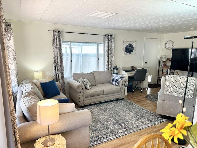 This mobile home in Citrus Gardens, Mesa, AZ offers 2 bedrooms and 2 bathrooms in a compact yet comfortable space. The home features an open concept living and dining area, perfect for entertaining guests or relaxing after a long day. The kitchen is equipped with modern appliances and plenty of cabinet space for storage. The bedrooms are spacious and offer ample closet space for all your belongings. The master suite includes a private bathroom with a walk-in shower. The home also includes a covered patio area, perfect for enjoying the warm Arizona weather. Citrus Gardens is a welcoming community in Mesa, AZ with a range of amenities for residents to enjoy. The community features a clubhouse for social gatherings and events, as well as a swimming pool for residents to cool off during the hot summer months. There are also walking paths throughout the community, perfect for a leisurely stroll or morning jog. Residents can also take advantage of the community's convenient location, with easy access to shopping, dining, and entertainment options in the Mesa area. With its friendly atmosphere and variety of amenities, Citrus Gardens is the perfect place to call home.