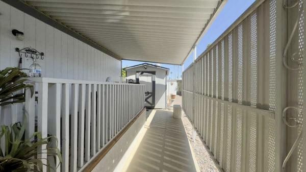 This charming 840 square foot manufactured home, built in 1983 by Flamingo, offers a comfortable and functional living space featuring 2 bedrooms and 1.5 bathrooms. Inside, you’ll find a spacious living room and dining room that provide an open and inviting atmosphere, perfect for relaxing or entertaining guests. The kitchen is equipped with essential appliances including an oven, fridge, and microwave, making meal preparation convenient and enjoyable. Additional interior amenities include a washer, dryer, hot water heater, and central air conditioning to ensure year-round comfort. Located in the welcoming Citrus Gardens community in Mesa, AZ, this home benefits from a peaceful and friendly neighborhood setting. Residents enjoy access to well-maintained outdoor spaces, including a private deck and patio ideal for outdoor gatherings or quiet relaxation. The property also features a carport and a shed, offering ample storage and parking options. Citrus Gardens is known for its community spirit and convenient location, providing easy access to local shopping, dining, and recreational opportunities in the vibrant Mesa area.