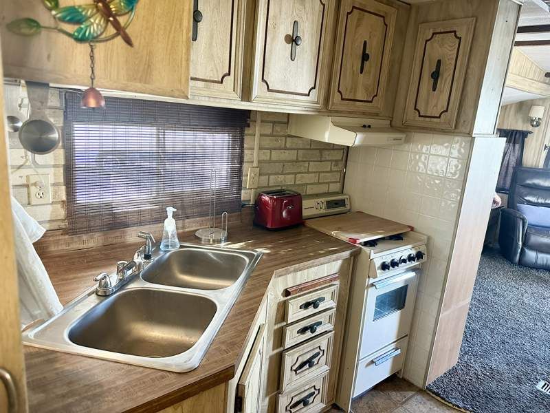 This charming park model offers cozy, well-maintained, move-in ready living space—the perfect blend of comfort, simplicity, and value. With excellent storage throughout and thoughtful updates, this home stands out from the rest. Instead of the standard small tub commonly found in park models, this home features a newer, spacious step-in shower. The bedroom comfortably fits a queen-sized bed with room to spare, and the slide-outs create additional living space, making the home feel open and inviting. Enjoy your own beautiful cactus garden, a covered carport, and a huge storage shed for all your extras. The home is partially furnished, adding tremendous value. This is truly a rare find—perfect for a minimalist looking to enjoy the luxuries of a resort-style 55+ community with low rent and everything you need already in place. Opportunities like this don’t last long!