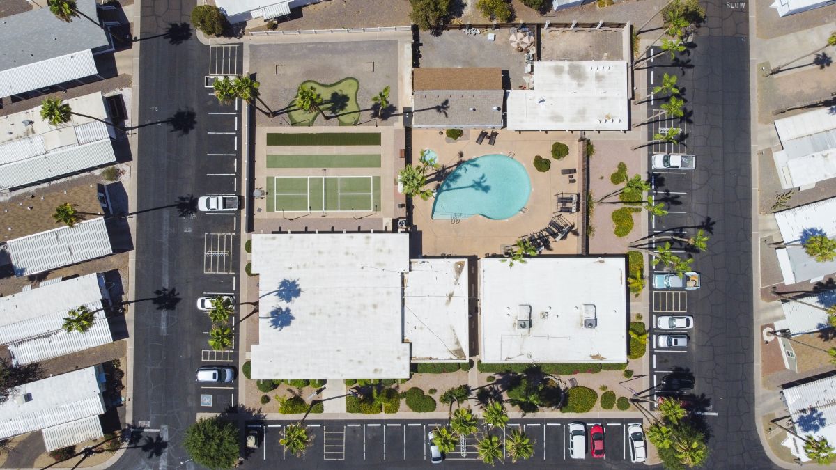 This charming manufactured home in the Desertscape community of Phoenix, AZ offers a cozy and inviting space with 2 bedrooms and 2 bathrooms. Built in 1973 by Silvercrest, this home features a spacious living room, separate dining area, a master bedroom with an en suite bathroom, a kitchen with newer Kenmore appliances, new garbage disposal, beautiful cabinets, fantastic island, and a convenient laundry room with Maytag washer and dryer. The interior of this fabulous, single level living, home also features new energy efficient easy open windows and plantation shutters. The exterior of the home boasts a carport for covered parking, 2 sheds for additional storage, a deck with new Trex flooring perfect for outdoor entertaining, a patio for relaxing in the sun, an open porch for enjoying the desert scenery, and durable aluminum siding. This community is within walking distance to the light rail and public transportation. Also located near shopping for any and everything, restaurants and entertainment. Desertscape is a welcoming community in the heart of Phoenix, offering residents a peaceful and tranquil environment to call home. With amenities such as a clubhouse, swimming pool, and fitness center, residents can enjoy an active and social lifestyle. The community is conveniently located near dining, shopping, and entertainment options, making it easy to explore all that Phoenix has to offer. Plus, the beautiful desert landscapes surrounding the community provide the perfect backdrop for outdoor activities and relaxation.