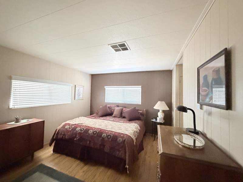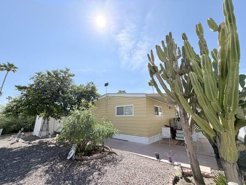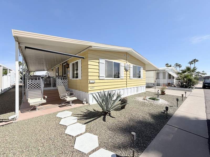 Welcome to this well-maintained Golden West Sunnybrook home offering 1,344 sq. ft. of comfortable living space in the highly desirable Dorado Canyon 55+ resort community in Mesa, AZ. From the moment you arrive, you’ll appreciate the inviting curb appeal, covered carport, and easy-care desert landscaping that set the tone for relaxed Arizona living. Inside, the home features a bright, functional layout filled with natural light. The spacious living room flows effortlessly into the dining area, creating an ideal setting for both everyday living and entertaining. Large windows enhance the open feel, making the space light, airy, and welcoming. The kitchen offers abundant cabinetry, generous counter space, and a clean, well-kept design—perfect for cooking, hosting, or simply enjoying your day-to-day routine. Just off the kitchen, you’ll find a convenient laundry area with additional storage for added functionality. Both bedrooms are comfortably sized, with the primary suite featuring its own private bathroom. The guest bathroom includes a walk-in shower, offering ease and accessibility. This home has been thoughtfully cared for and offers solid bones—move in as-is or update to match your personal style over time. Additional highlights include: Covered carport parking Private outdoor space to enjoy Arizona’s beautiful weather Dedicated laundry area with extra storage Functional, light-filled floor plan Located in Dorado Canyon, residents enjoy a gated, resort-style lifestyle with amenities including a clubhouse, heated pool and spa, fitness center, pickleball courts, walking paths, and a vibrant calendar of community events. Conveniently close to shopping, dining, golf, and medical facilities, everything you need is just minutes away. This is your opportunity to own an affordable, well-kept home in one of Mesa’s most welcoming 55+ communities—come experience the lifestyle for yourself.