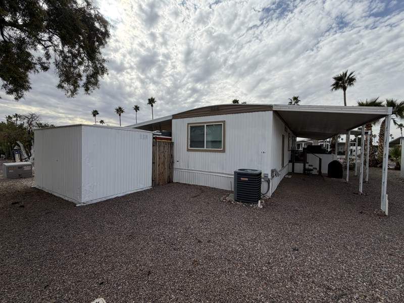 This beautifully refreshed 840 sq. ft. manufactured home is located in the desirable Dorado Canyon community in Mesa, Arizona and offers a rare combination of thoughtful upgrades, tasteful finishes, and true move-in readiness. This home has been carefully maintained and recently improved to meet the expectations of even the most discerning buyer. Double pane windows for better efficiency and insulation. The interior features a bright, spacious living room with neutral tones and updated flooring that flows seamlessly into the dining area, creating a comfortable and functional layout. The upgraded kitchen is both stylish and practical, equipped with new appliances featuring Wi-Fi and Bluetooth capabilities, including a modern stove with a built-in air fryer, making everyday cooking both convenient and efficient. This home offers two well-proportioned bedrooms and one updated bathroom, providing comfortable living without wasted space. Recent improvements include brand-new carpet, fresh interior paint, new electrical receptacles throughout, a new hot water heater, and a recently serviced central A/C system that works exceptionally well. Additional highlights include washer and dryer, a covered carport, private storage shed, and inviting outdoor living areas ideal for relaxing or entertaining. The home’s clean presentation and thoughtful updates make it a standout option within the community. Dorado Canyon is a vibrant, well-maintained community offering residents access to a clubhouse, swimming pool, fitness center, and beautifully landscaped common areas. Conveniently located near shopping, dining, and entertainment, this community provides both comfort and lifestyle. This is a turn-key opportunity for a buyer who values quality, condition, and modern conveniences in a well-established 55+ community.
