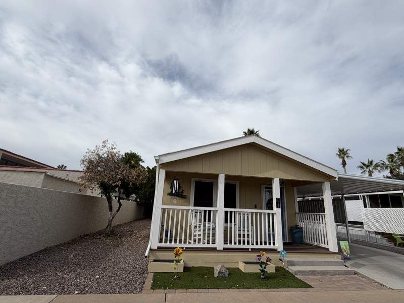 Here we have a wonderful, spacious 2 bed, 2 bathroom home located in the beautiful Dorado Canyon 55+ Community in Mesa, AZ. Enjoy relaxing and taking in the Arizona weather on your front porch, overlooking the main stretch where all the action is. This home has been thoughtfully upgraded with numerous improvements, including new lighting throughout, a brand-new Nest thermostat, and window sunshades for added comfort and efficiency. The major master bathroom remodel features a stunning floor-to-ceiling tile shower, and an additional closet was created in the master bedroom for extra storage. The large kitchen offers solid surface countertops, stainless steel appliances, and a six-person breakfast bar. Bathrooms are equipped with raised vanities and commodes along with solid surface countertops. Additional upgrades include aluminum screens in the carport and back patio, a carport side keypad door lock, a security screen door on the carport side, and an invisible screen door at the front entrance. The home also features a commercial-grade gas water heater installed in 2024, and in August 2025 the roof was treated with Roof Guard and comes with a 10-year warranty for added peace of mind. Being just next door to the clubhouse, you’ll be steps away from billiards, swimming, the community gym, yoga, bingo, cards, the community library, horseshoes, shuffleboard, and so much more. Don’t miss out on this one!