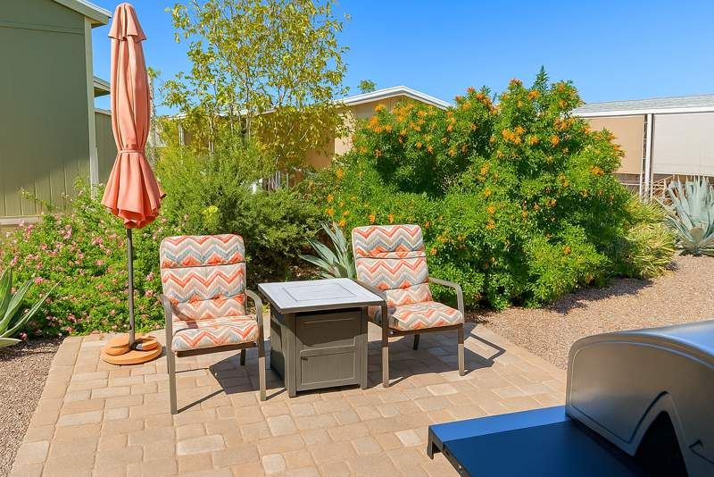 Welcome to this impeccably maintained 3-bedroom, 2-bathroom Cavco home, built in 2020 and located in the sought-after Dorado Canyon community of Mesa, AZ. Spanning 1,456 square feet, this residence offers a perfect blend of style, functionality, and comfort. Step inside to an open-concept layout featuring a sleek, modern kitchen with stainless steel appliances, ample cabinetry, and a spacious island that’s perfect for meal prep and casual dining. The bright and airy living room showcases large windows, recessed lighting, and plenty of space to relax or entertain. Just off the kitchen, a separate dining area is surrounded by floor-to-ceiling windows, flooding the space with natural light. The primary suite is a true retreat with an oversized bedroom, walk-in closet, and en-suite bathroom complete with dual sinks and a walk-in shower. Two additional bedrooms offer flexibility for guests, hobbies, or a home office, and both bathrooms include stylish finishes and modern fixtures. Additional features include a dedicated laundry room with built-in shelving, a cozy screened-in patio ideal for lounging or watching TV outdoors, a custom paver patio with seating and mature landscaping, and a fully enclosed shed for extra storage. Located in the vibrant 55+ Dorado Canyon community, residents enjoy amenities such as a clubhouse, pool, fitness center, and a variety of social activities. With convenient access to shopping, dining, and entertainment in Mesa, this move-in-ready home offers an exceptional lifestyle in a friendly, well-kept neighborhood. Come experience the comfort, quality, and charm this beautifully appointed home has to offer!