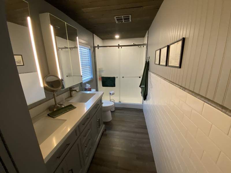 This 1,056 sq. ft. home offers a comfortable layout with 2 bedrooms and 2 bathrooms. The cozy living room flows into a spacious kitchen with plenty of storage and a dining area perfect for gatherings. The primary suite features an ensuite bath, while the second bedroom works well for guests or a home office. With updated flooring and modern fixtures throughout, this home is move-in ready. Dorado Canyon is a welcoming 55+ community in Mesa with resort-style amenities including a clubhouse, heated pool and hot tub, fitness center, outdoor firepits, a large BBQ area, billiards, bocce ball, pickleball, and shuffleboard. Regular social events and well-kept grounds make it easy to connect with neighbors and enjoy an active lifestyle, all while being close to shopping, dining, and recreation.