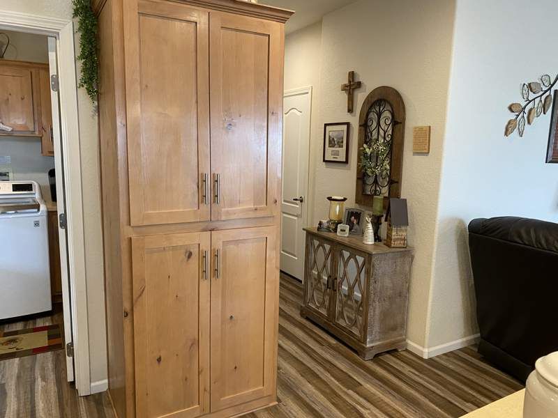 Move-in ready and priced to sell! This stunning 3-bedroom, 2-bath, 1,456 sq. ft. manufactured home, built in 2021 by Champion, is located in the sought-after Dorado Canyon community in Mesa, AZ. Designed for both comfort and functionality, this home features elegant crown molding, warm inviting colors, and abundant storage throughout. The spacious kitchen is a chef’s dream, boasting stainless steel appliances, a large countertop, and an extra-large island—perfect for meal prep and entertaining. The laundry room offers even more convenience with a wrap-around countertop, ideal for folding or additional storage. The open-concept living and dining areas create a welcoming atmosphere, while the bright breakfast nook provides a cozy spot to start your day. The master suite is a private retreat, complete with a walk-in closet and an en suite bathroom featuring double sinks and lighted vanity mirrors. Additional highlights include a dedicated laundry room with washer/dryer hookups, a hot water heater, and ample storage throughout. Outside, enjoy a shaded carport, a beautifully manicured front yard, and a spacious storage shed with electricity. A private patio offers the perfect space to relax or entertain. Located in the vibrant Dorado Canyon community, residents enjoy access to top-tier amenities, including a clubhouse, swimming pool, fitness center, and scenic walking paths. With easy access to shopping, dining, and entertainment, this home offers the perfect blend of comfort, convenience, and style in Mesa!
