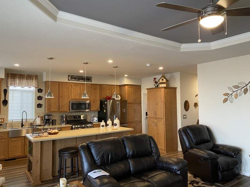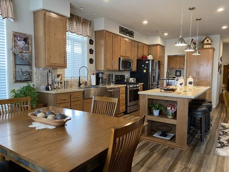 Move-in ready and priced to sell! This stunning 3-bedroom, 2-bath, 1,456 sq. ft. manufactured home, built in 2021 by Champion, is located in the sought-after Dorado Canyon community in Mesa, AZ. Designed for both comfort and functionality, this home features elegant crown molding, warm inviting colors, and abundant storage throughout. The spacious kitchen is a chef’s dream, boasting stainless steel appliances, a large countertop, and an extra-large island—perfect for meal prep and entertaining. The laundry room offers even more convenience with a wrap-around countertop, ideal for folding or additional storage. The open-concept living and dining areas create a welcoming atmosphere, while the bright breakfast nook provides a cozy spot to start your day. The master suite is a private retreat, complete with a walk-in closet and an en suite bathroom featuring double sinks and lighted vanity mirrors. Additional highlights include a dedicated laundry room with washer/dryer hookups, a hot water heater, and ample storage throughout. Outside, enjoy a shaded carport, a beautifully manicured front yard, and a spacious storage shed with electricity. A private patio offers the perfect space to relax or entertain. Located in the vibrant Dorado Canyon community, residents enjoy access to top-tier amenities, including a clubhouse, swimming pool, fitness center, and scenic walking paths. With easy access to shopping, dining, and entertainment, this home offers the perfect blend of comfort, convenience, and style in Mesa!