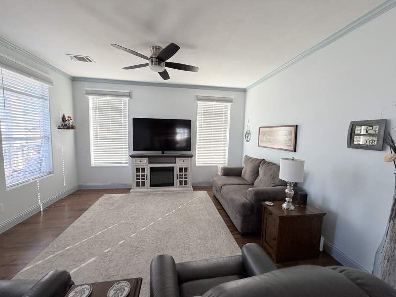 Wonderful 2 bed 2 bath in the beautiful 55+ community, Dorado Canyon! Enjoy our spa, heated pool, dog park, shuffleboard, pickleball, billiards, firepit, daily activities and more in this wonderful, spacious home. From the front porch to the stunning natural wood cabinets this home has it all. Every room in this home is exceptionally spacious and inviting. CALLING ALL CHEFS, the kitchen has a tons of solid surface countertops and upgraded stainless appliances (including a French door refrigerator). We didn't forget the bathrooms, the bathrooms feature the same solid surface countertops and raised vanities and commodes PLUS a floor to ceiling tile shower in the master bath. Call to schedule a tour today!