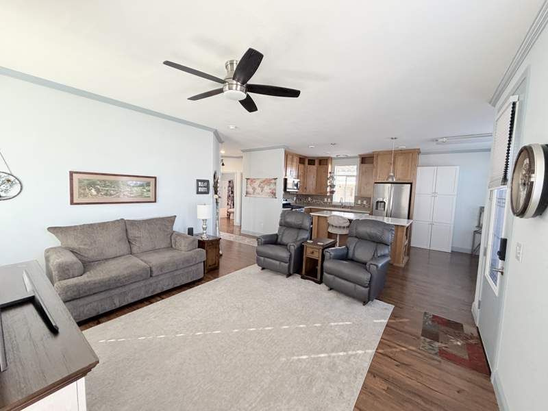 Wonderful 2 bed 2 bath in the beautiful 55+ community, Dorado Canyon! Enjoy our spa, heated pool, dog park, shuffleboard, pickleball, billiards, firepit, daily activities and more in this wonderful, spacious home. From the front porch to the stunning natural wood cabinets this home has it all. Every room in this home is exceptionally spacious and inviting. CALLING ALL CHEFS, the kitchen has a tons of solid surface countertops and upgraded stainless appliances (including a French door refrigerator). We didn't forget the bathrooms, the bathrooms feature the same solid surface countertops and raised vanities and commodes PLUS a floor to ceiling tile shower in the master bath. Call to schedule a tour today!