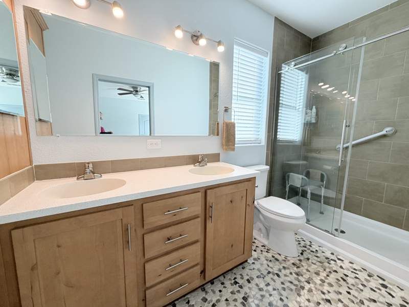 Wonderful 2 bed 2 bath in the beautiful 55+ community, Dorado Canyon! Enjoy our spa, heated pool, dog park, shuffleboard, pickleball, billiards, firepit, daily activities and more in this wonderful, spacious home. From the front porch to the stunning natural wood cabinets this home has it all. Every room in this home is exceptionally spacious and inviting. CALLING ALL CHEFS, the kitchen has a tons of solid surface countertops and upgraded stainless appliances (including a French door refrigerator). We didn't forget the bathrooms, the bathrooms feature the same solid surface countertops and raised vanities and commodes PLUS a floor to ceiling tile shower in the master bath. Call to schedule a tour today!