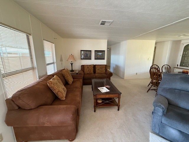 This 1536 square foot manufactured home built in 1983 by Palm Harbor offers 3 bedrooms and 2 bathrooms. The spacious floor plan includes a den, dining room, family room, living room, master bedroom, kitchen, and laundry room. Enjoy the convenience of the carport, shed, patio, and sprinkler system in the exterior of the home. Inside, the home boasts modern appliances such as an oven, fridge, dishwasher, dryer, hot water heater, microwave, washer, and garbage disposal, as well as central A/C to keep you cool in the Arizona heat. Located in Mesa, AZ, Mesa Shadows is a welcoming community that offers a range of amenities for residents to enjoy. From a clubhouse to swimming pool, residents can relax and socialize with neighbors. The community also features fitness facilities, a library, and organized activities, providing a sense of community and camaraderie among residents. With easy access to nearby shopping, dining, and entertainment options, Mesa Shadows offers the perfect balance of comfort and convenience for homeowners.