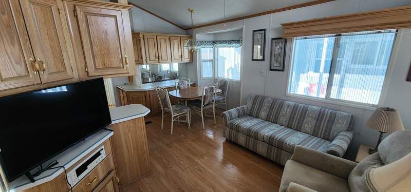 The 396 square feet Park Model home at Mosaic Sun in Apache Junction, AZ is a cozy and inviting space featuring 1 bedroom and 1 bathroom. Built in 1996 by Skyline, this charming home boasts a spacious living room and dining room, perfect for entertaining guests or relaxing with loved ones. The home also includes a carport, providing convenient covered parking for residents. Mosaic Sun is a vibrant and close-knit community located in the heart of Apache Junction, offering residents a variety of amenities and activities to enjoy. From community events to recreational facilities, there is always something to do at Mosaic Sun. Residents can take advantage of the beautiful Arizona weather by spending time outdoors in the community park or taking a dip in the swimming pool. With a friendly and welcoming atmosphere, Mosaic Sun is the perfect place to call home for those looking for a peaceful and active community in Apache Junction.