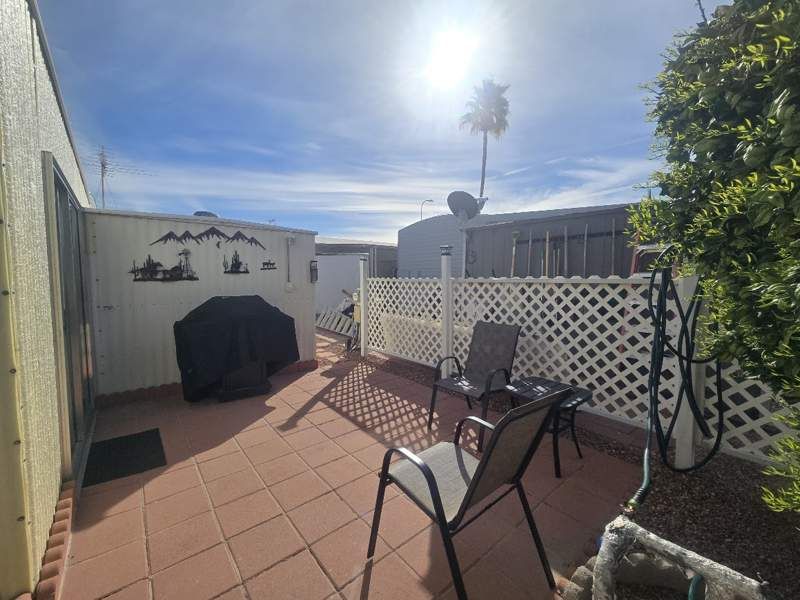 This charming 458 square foot home built in 1990 by Redman offers 1 bedroom and 1 bathroom in the Mosaic Sun community located in Apache Junction, AZ. The interior of the home features a spacious living room, kitchen, and laundry room. The kitchen comes equipped with stainless steel appliances including an oven, fridge, and microwave. Other interior features include a washer, dryer, hot water heater, and central A/C for added comfort. The home also includes a shed and patio for outdoor storage and relaxation. Mosaic Sun is a beautiful community in Apache Junction known for its tranquil atmosphere and picturesque views. Residents of the community enjoy access to various amenities such as a clubhouse, swimming pool, and fitness center. The community also hosts regular social events and activities, providing an opportunity for residents to connect and build lasting relationships. With its convenient location near shopping, dining, and outdoor recreational opportunities, Mosaic Sun offers residents a comfortable and enjoyable lifestyle.