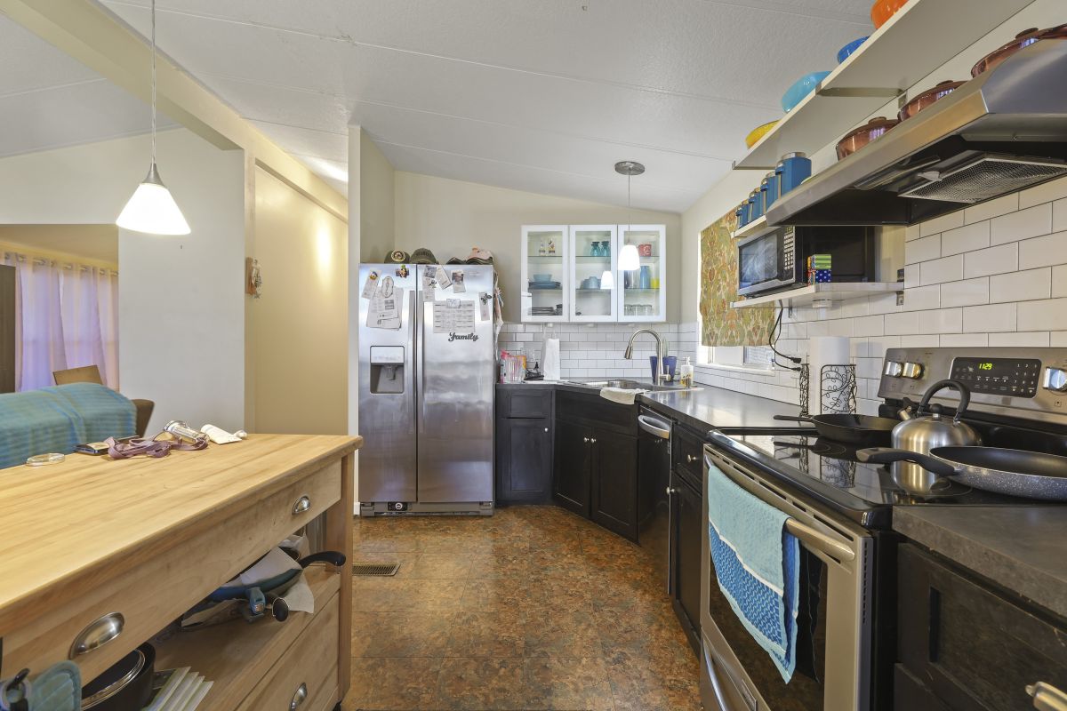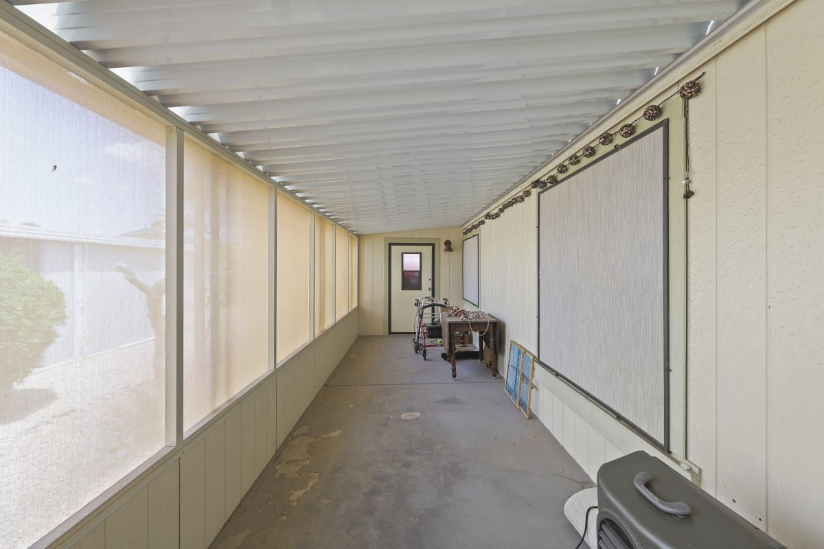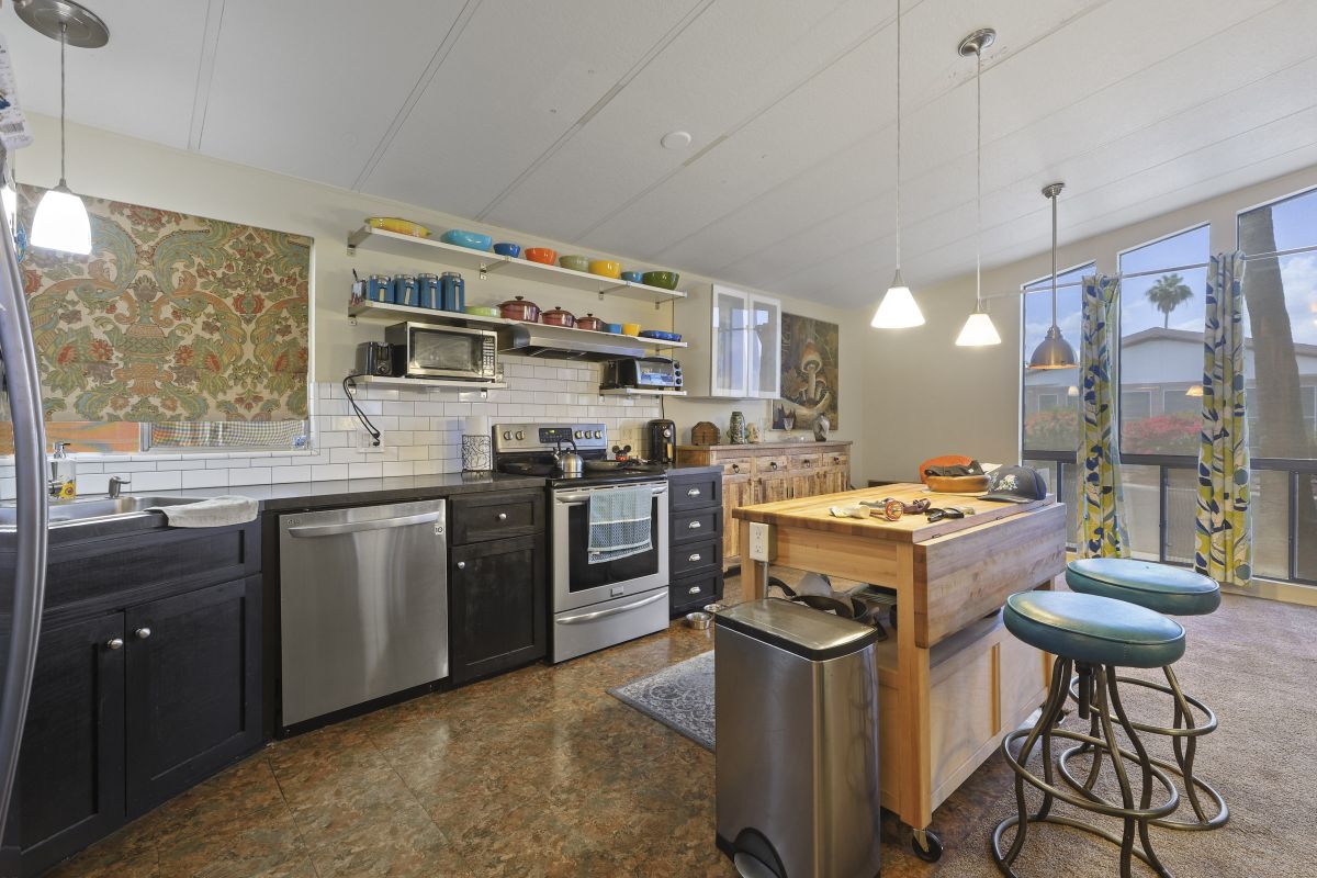 Remodeled 2 bedroom, 2 bath home plus a den, featuring a screened-in Arizona room and many modern updates. The kitchen boasts stainless steel appliances, a smooth top stove, subway tile backsplash, floating shelves, a movable island with pendant lighting, and a range hood. Some walls have been upgraded with tape and texture for a fresh look. Both bathrooms include tub/shower combos, new floating vanities, and comfort-height toilets. The home also offers a laundry room with washer and dryer, two storage sheds, and sunscreens. Major improvements include a roof, A/C, and furnace all less than five years old. Call to schedule your personal tour today! (480) 325-1161